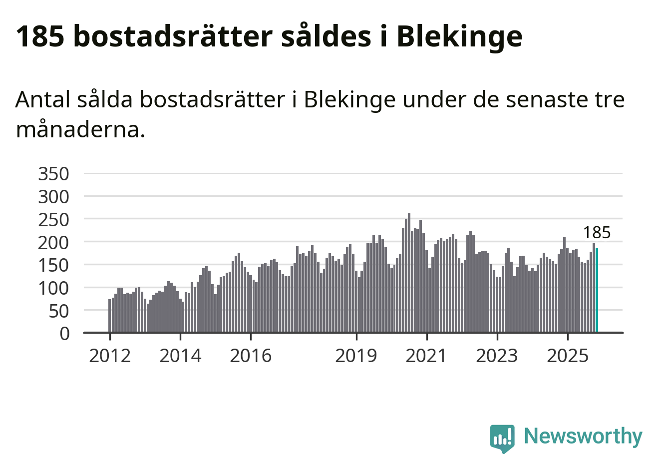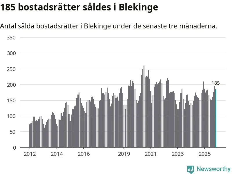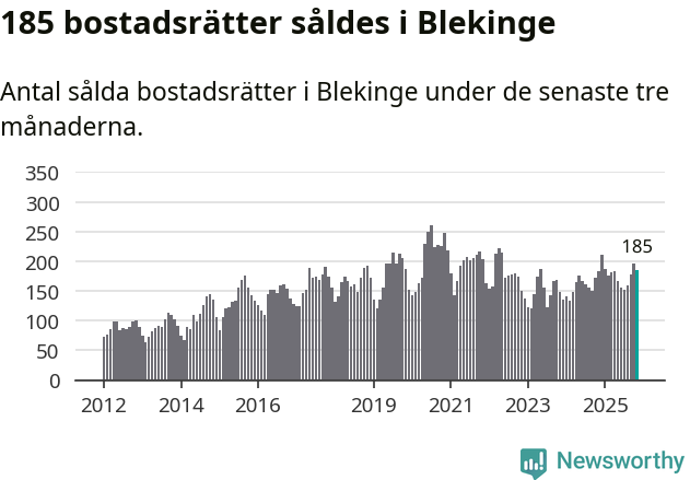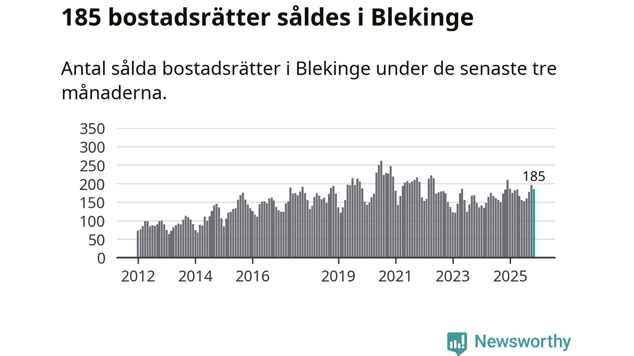 Sammanlagt såldes 185 bostadsrätter i Blekinge län mellan september och november till ett genomsnittligt pris på 1,6 miljoner kronor. I fjol gjordes 184 affärer vid den här tiden på året.