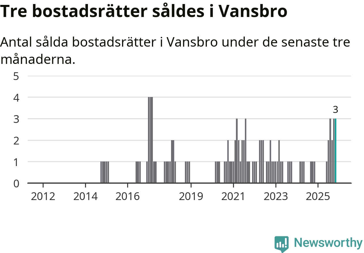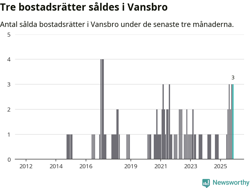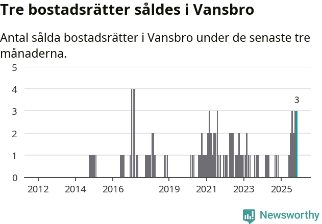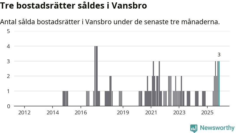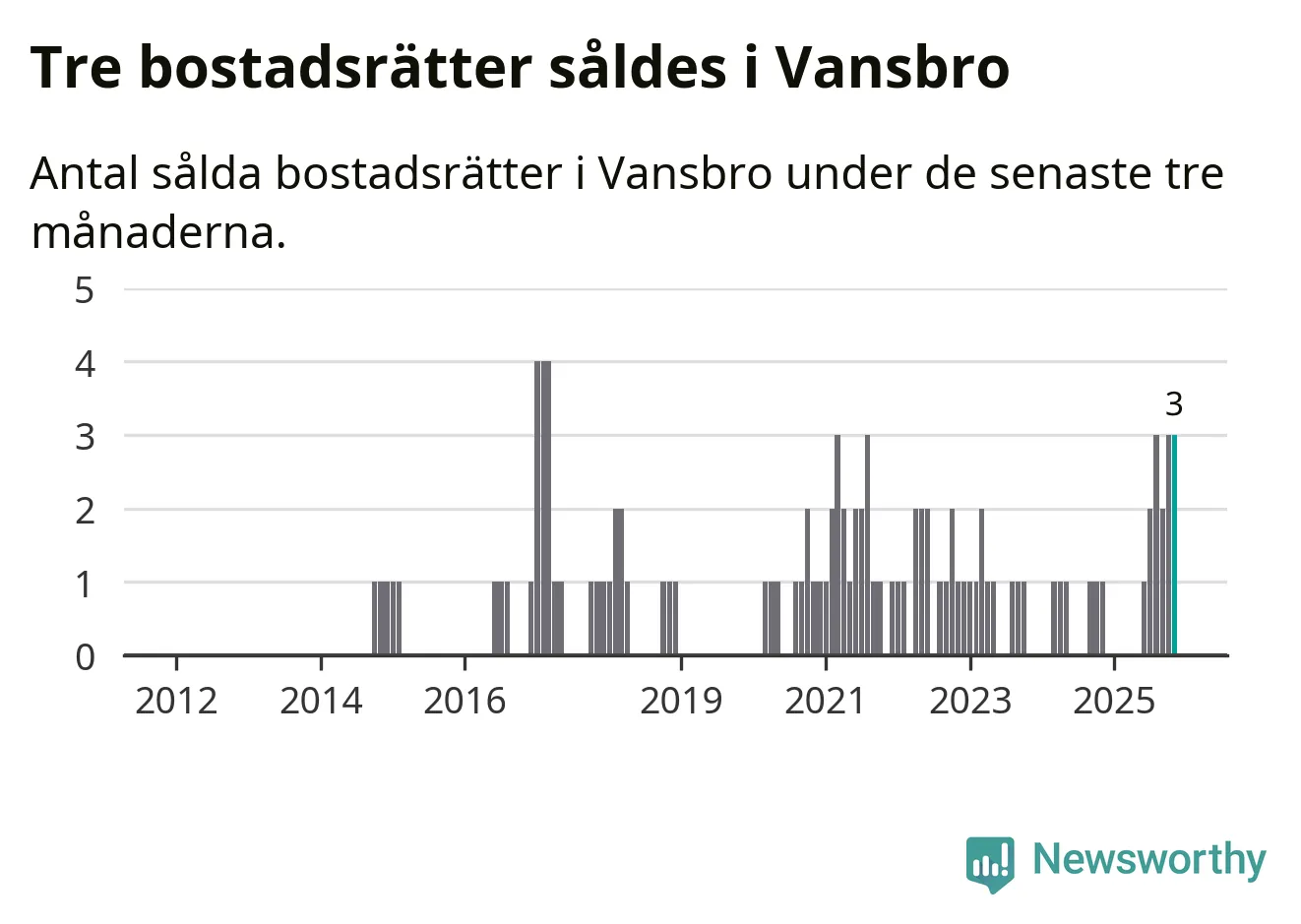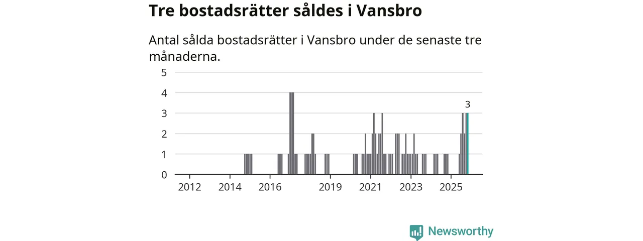 Mellan september och november gjordes sammanlagt tre affärer med bostadsrätter i Vansbro kommun. Det kan jämföras med ett vid motsvarande tid i fjol.