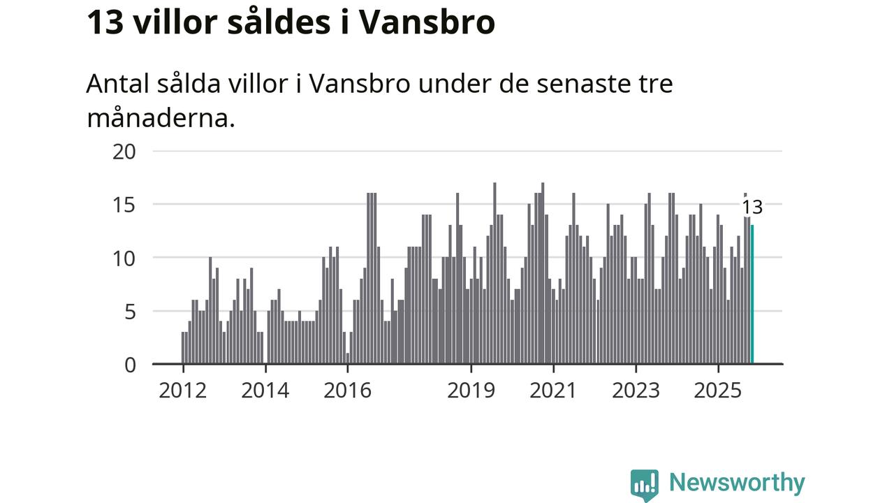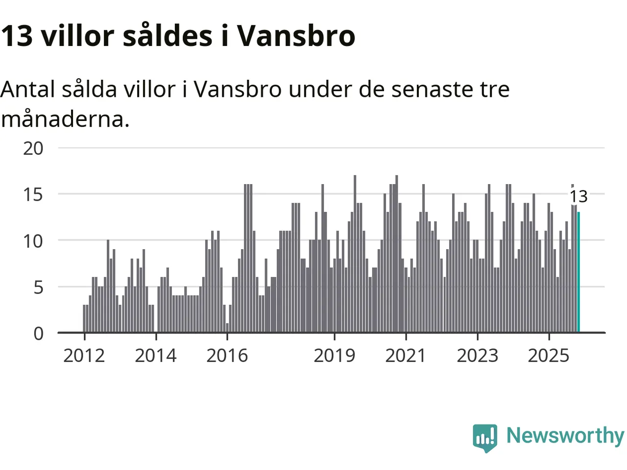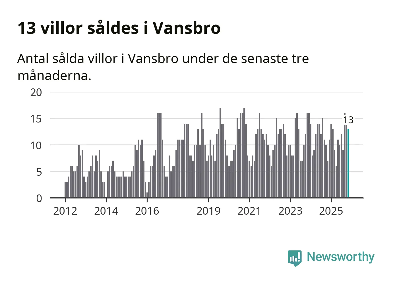 Mellan september och november gjordes sammanlagt 13 affärer med villor i Vansbro kommun. Det kan jämföras med sju vid motsvarande tid i fjol.