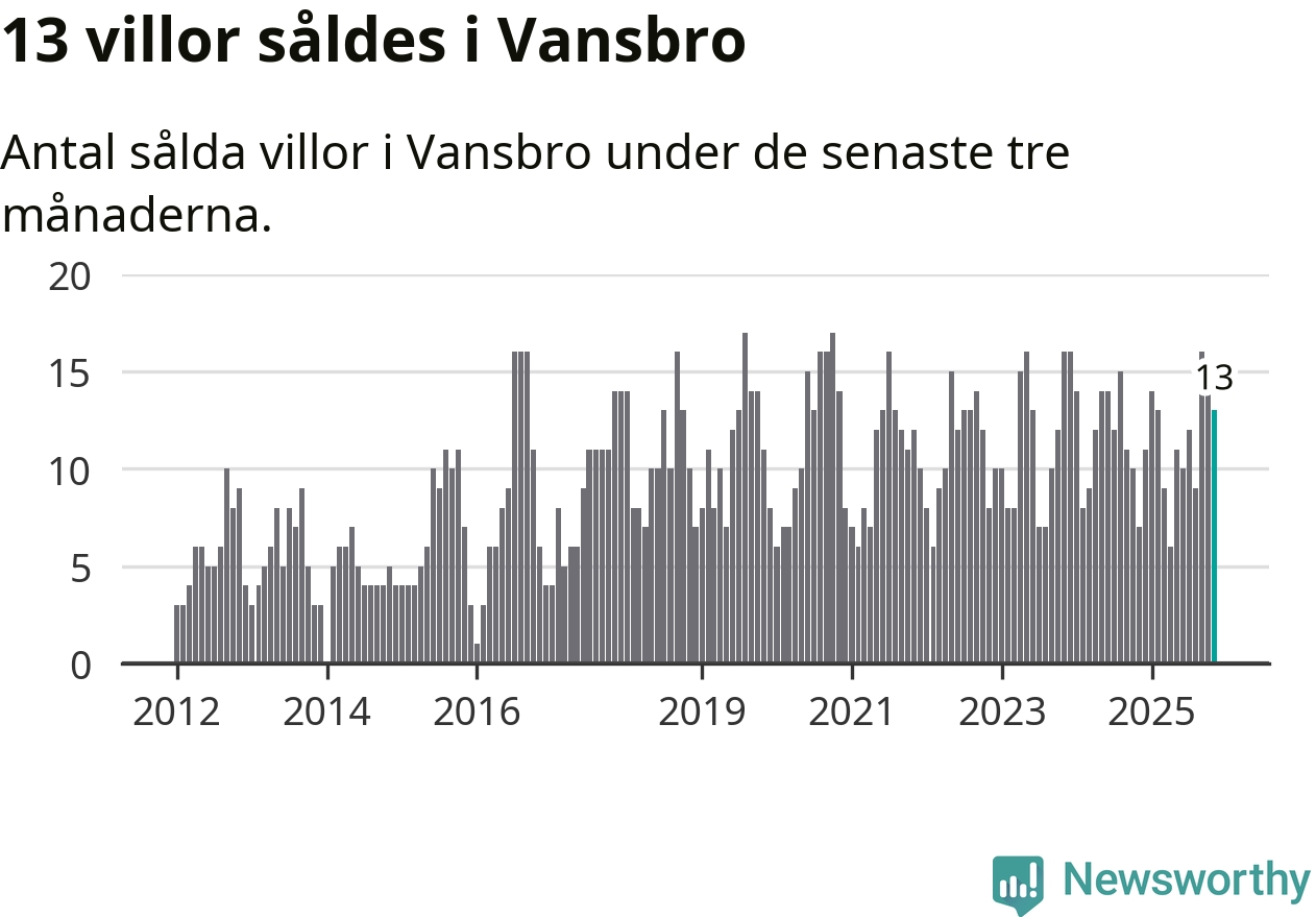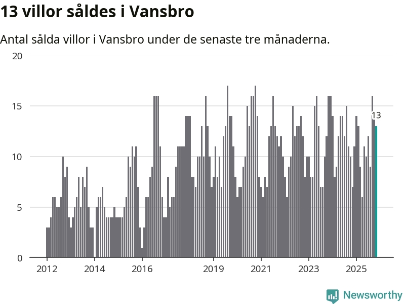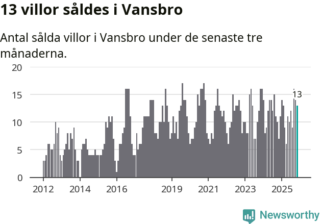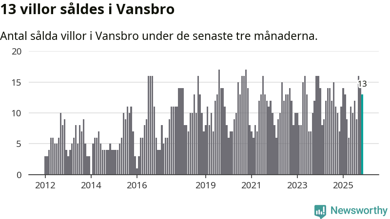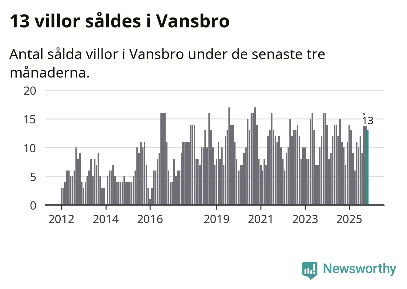 Mellan september och november gjordes sammanlagt 13 affärer med villor i Vansbro kommun. Det kan jämföras med sju vid motsvarande tid i fjol.
