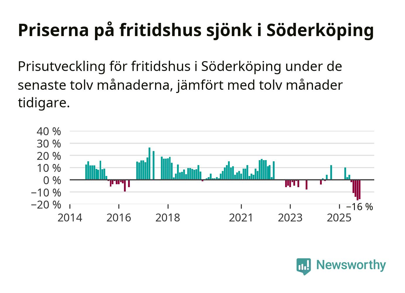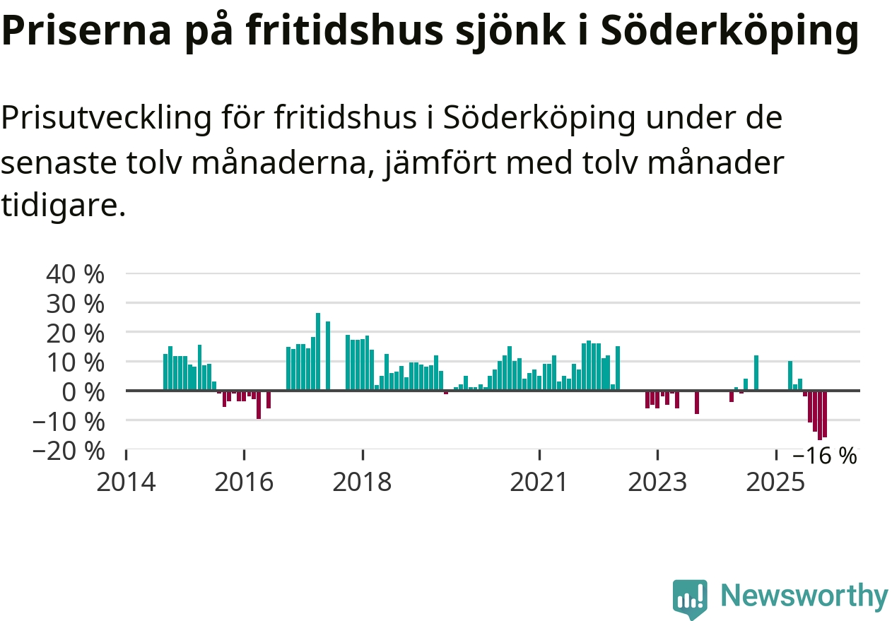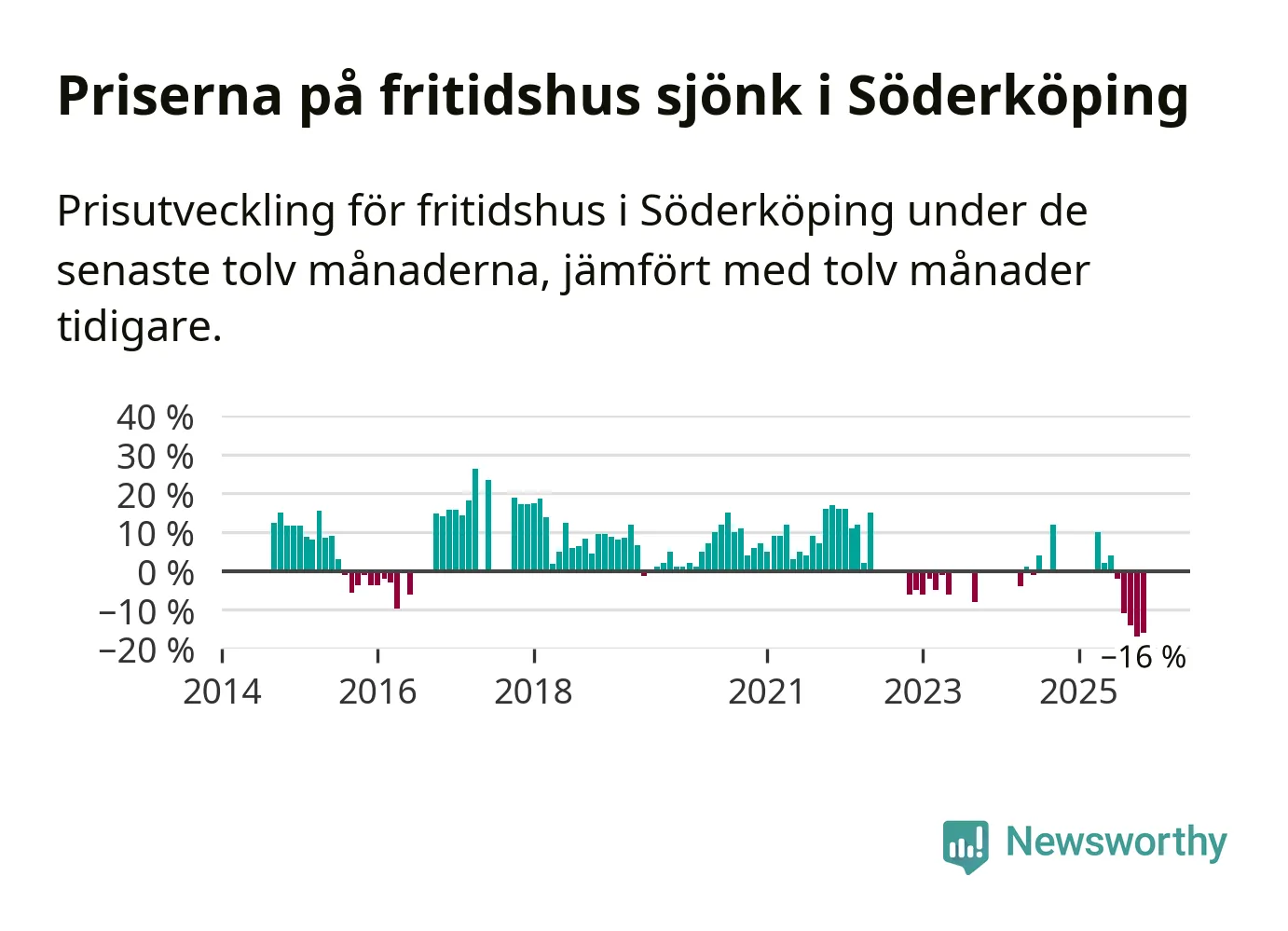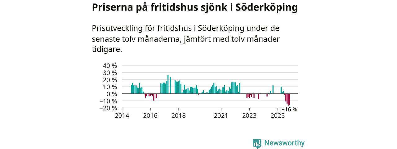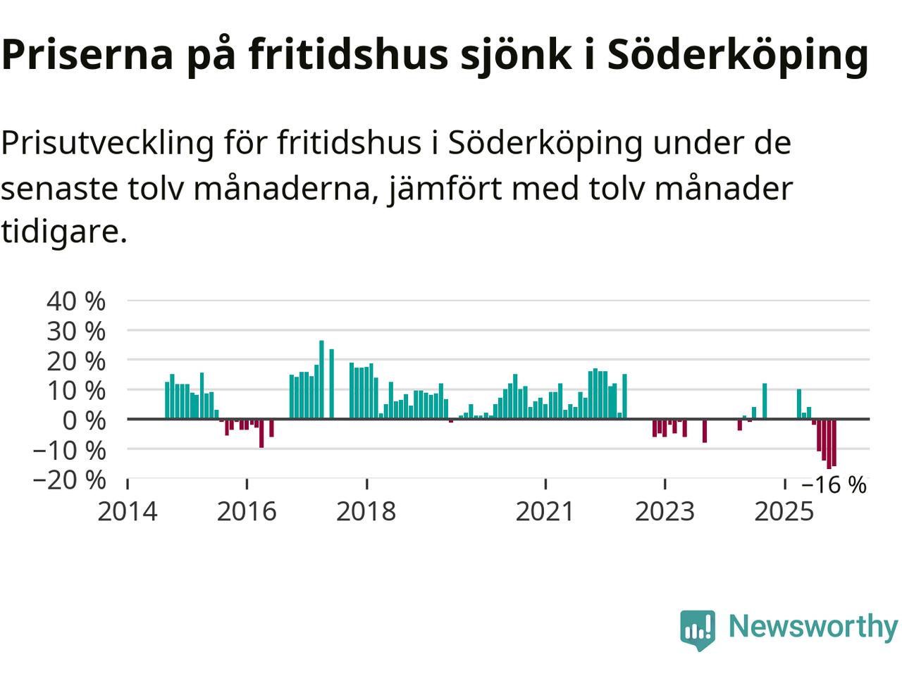 Priserna på fritidshus har gått ner i Söderköpings kommun. Medelpriset på försäljningarna under de senaste tolv månaderna visar på en nedgång med 16 procent.