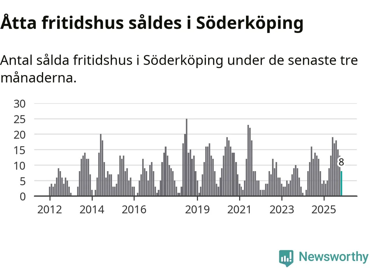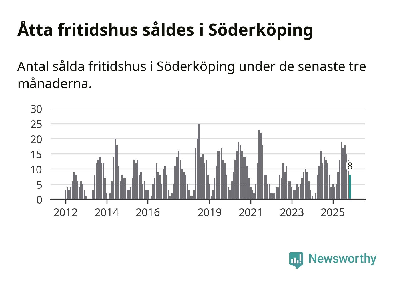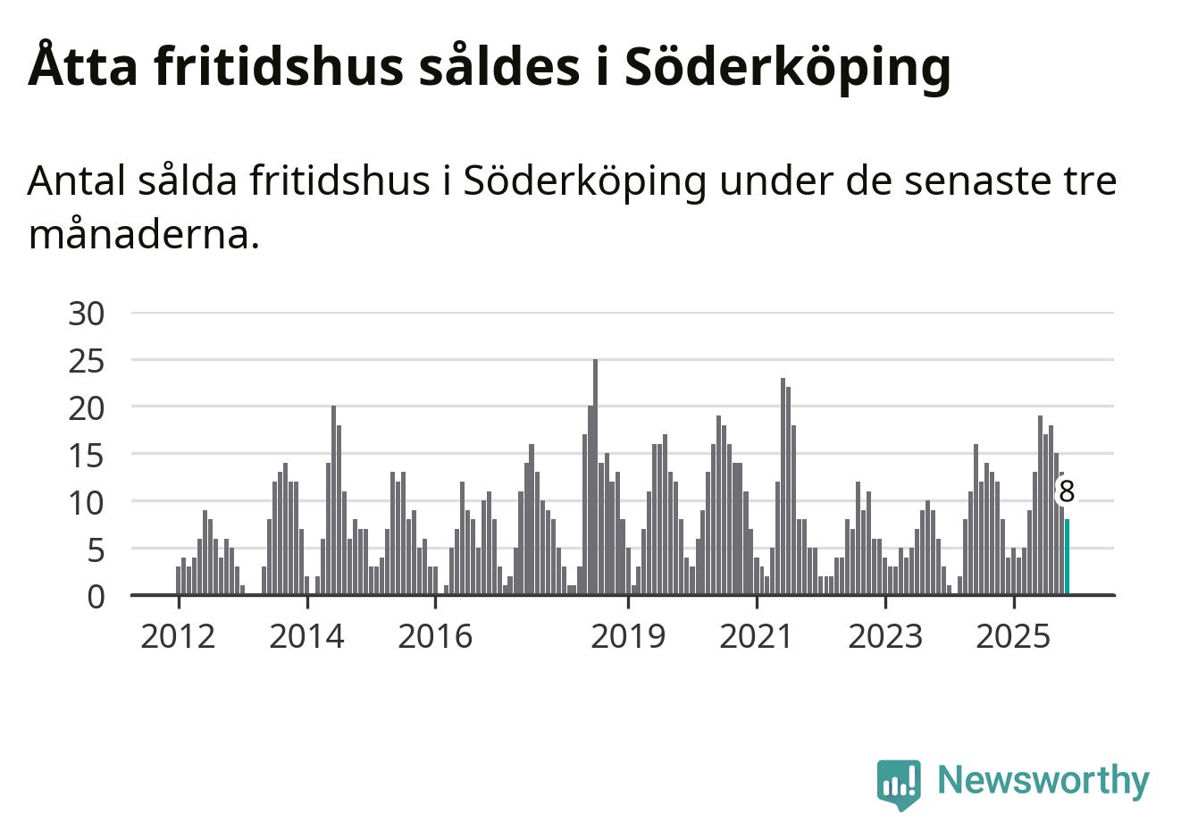 Sammanlagt såldes åtta fritidshus i Söderköpings kommun mellan september och november till ett genomsnittligt pris på 2,2 miljoner kronor. I fjol gjordes åtta affärer vid den här tiden på året.