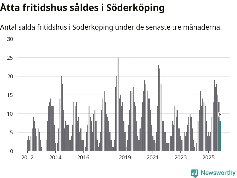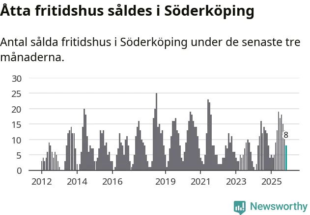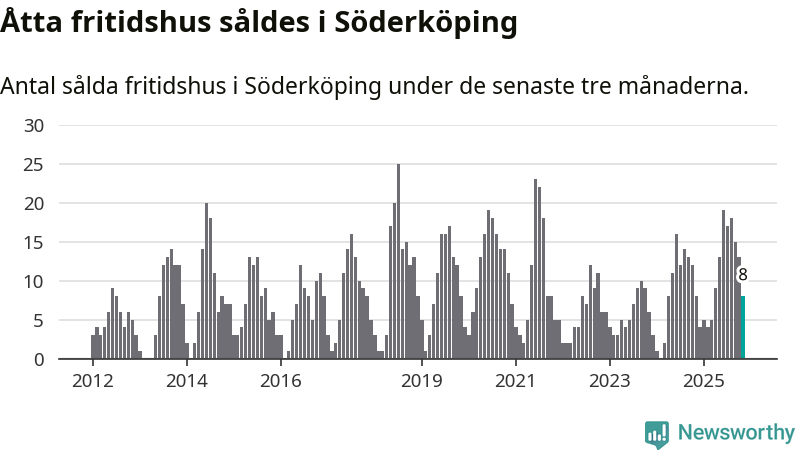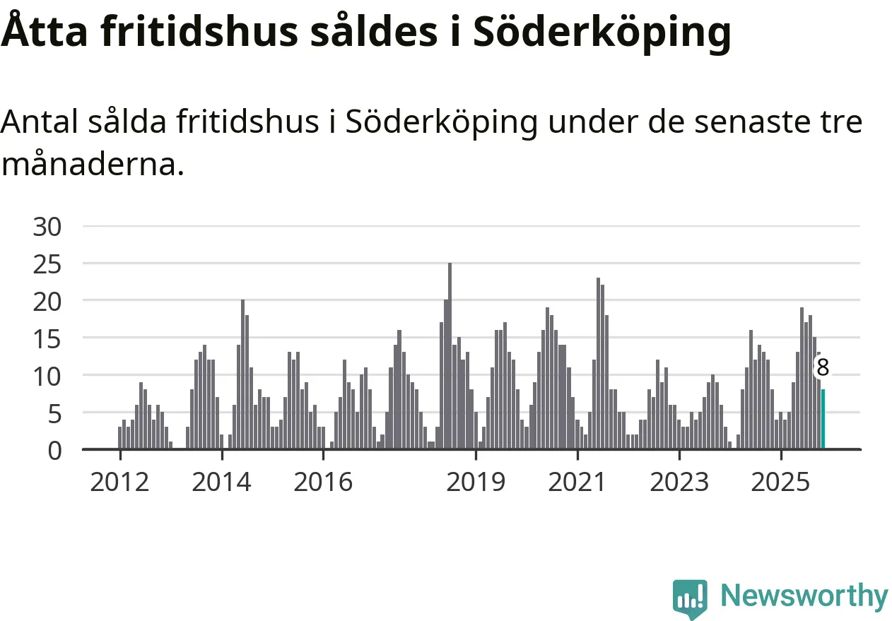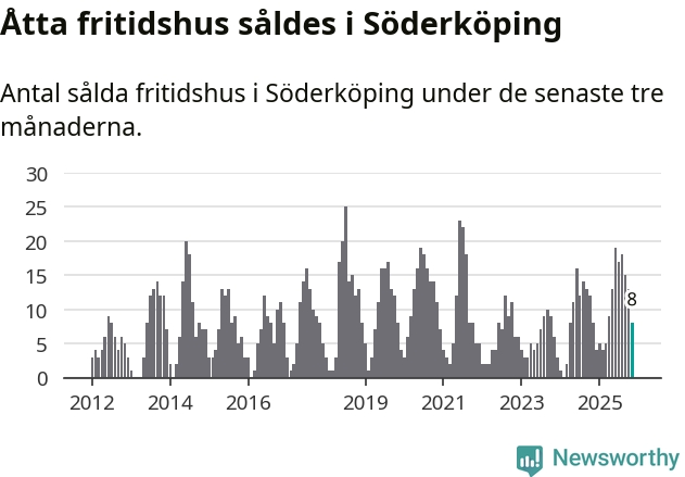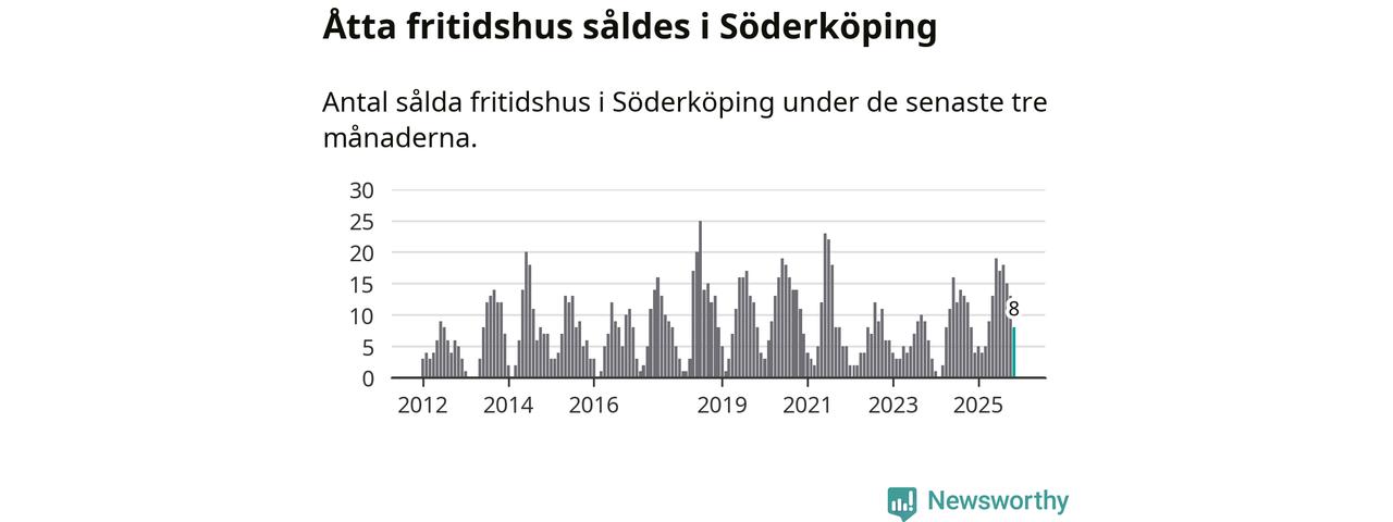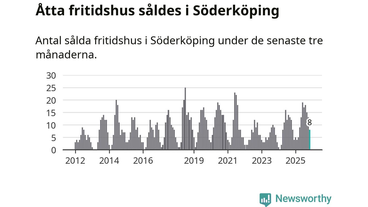 Sammanlagt såldes åtta fritidshus i Söderköpings kommun mellan september och november till ett genomsnittligt pris på 2,2 miljoner kronor. I fjol gjordes åtta affärer vid den här tiden på året.