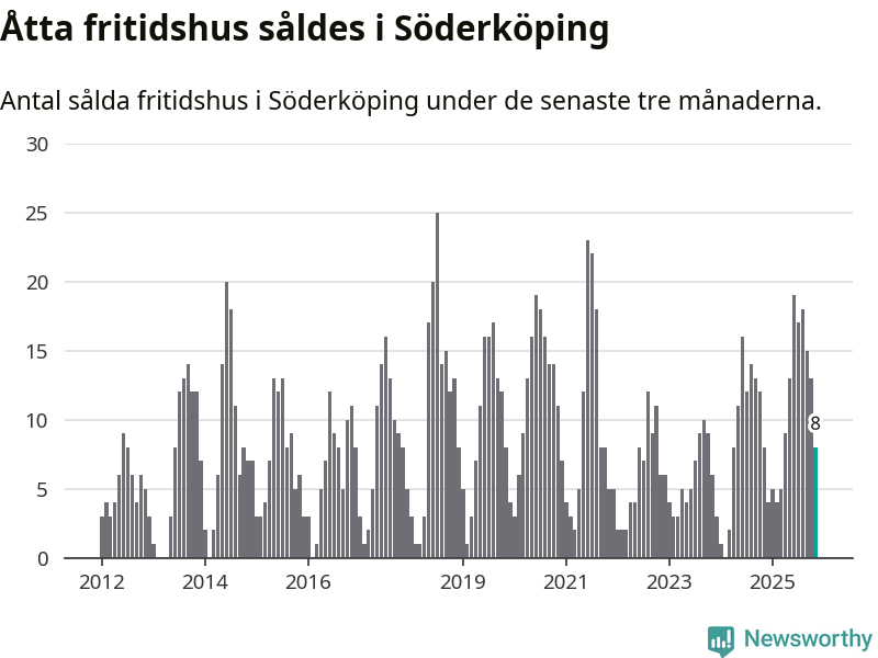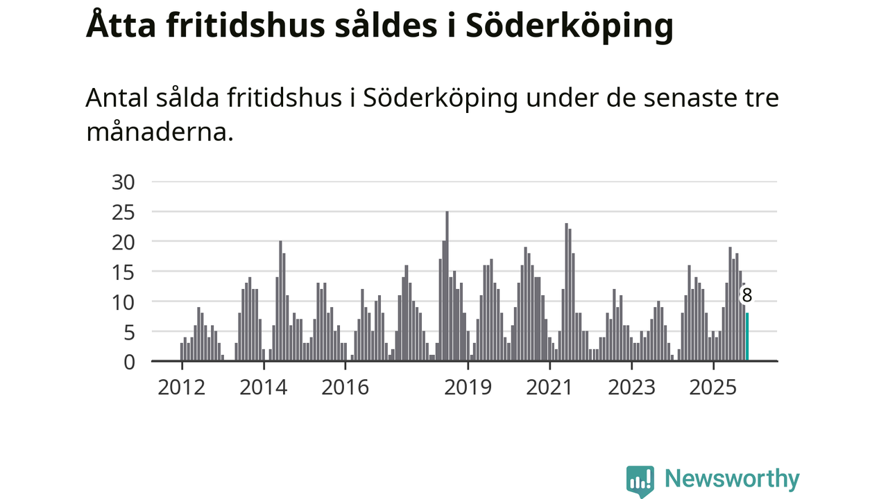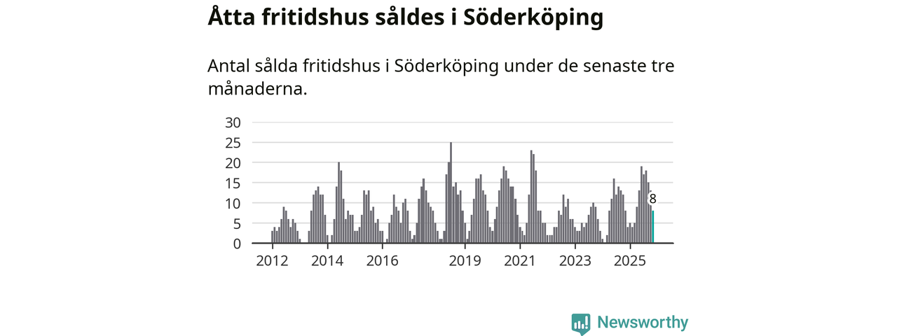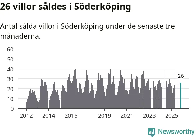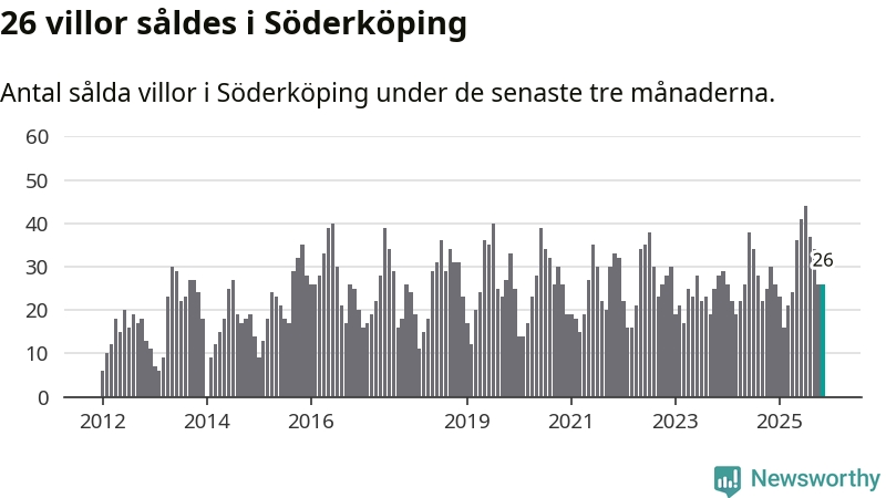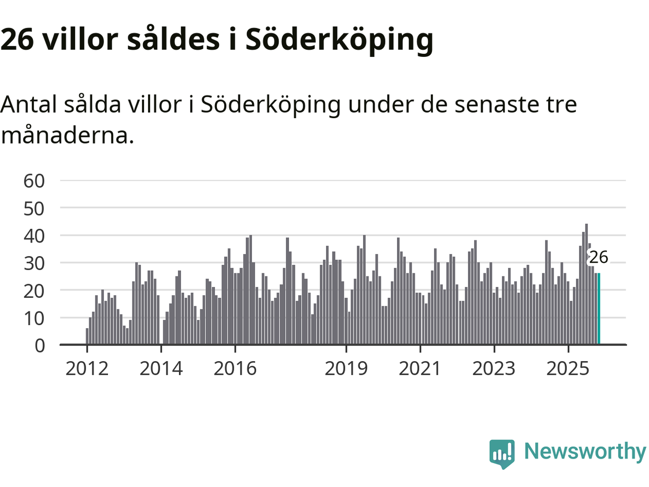 Mellan september och november såldes 26 villor i Söderköpings kommun. Det är relativt få sett till aktiviteten på bostadsmarknaden i kommunen under de senaste tolv månaderna, samt det historiska snittet för den här tiden på året.