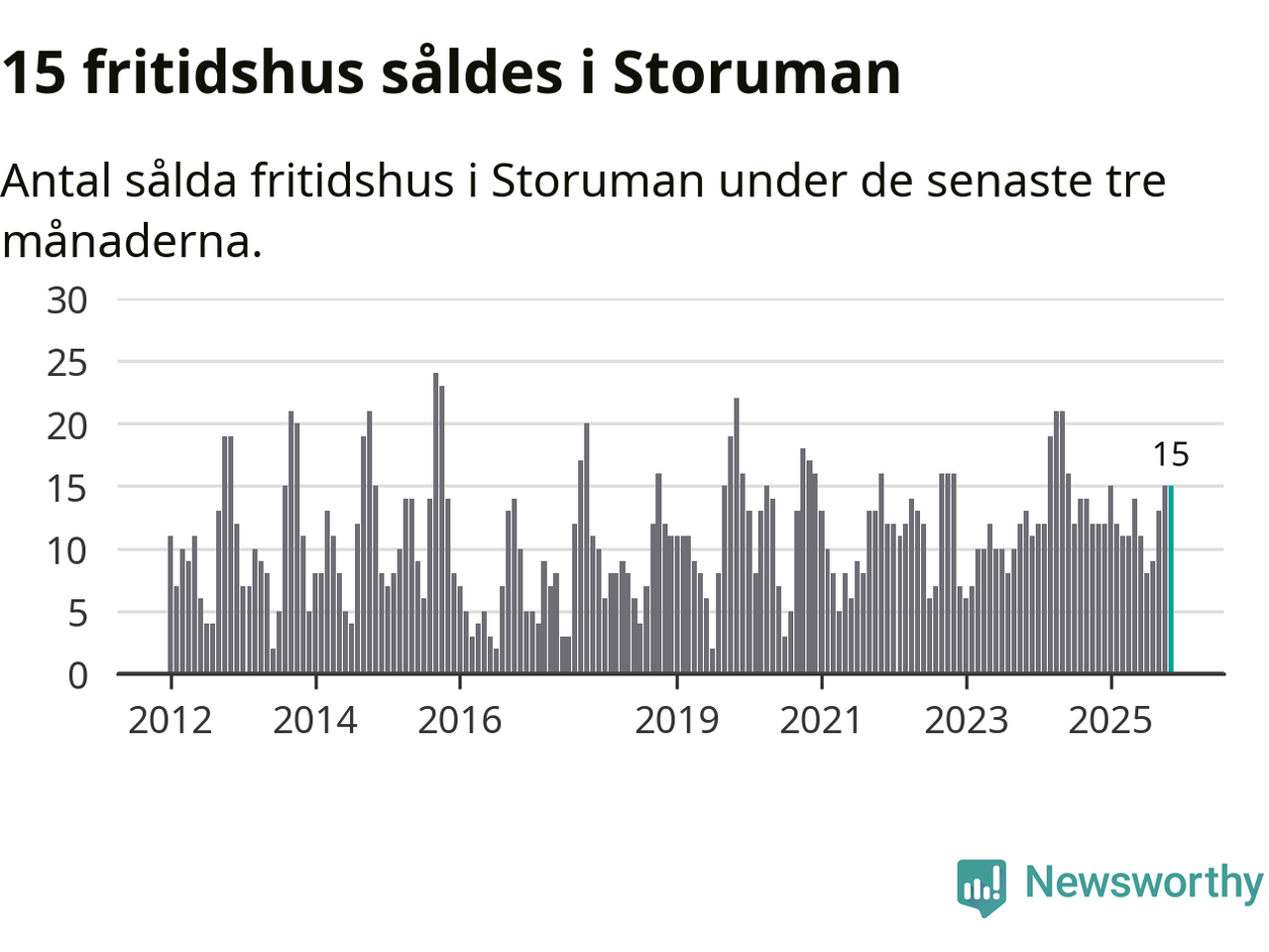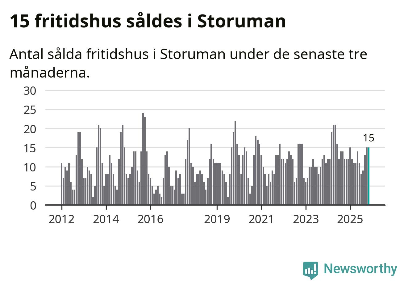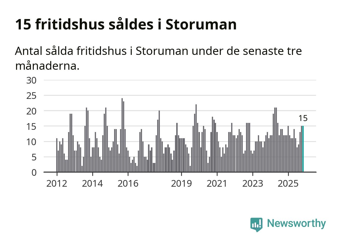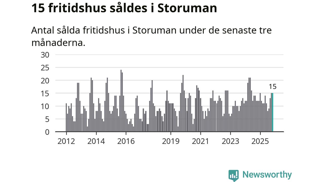 Sammanlagt såldes 15 fritidshus i Storumans kommun mellan september och november till ett genomsnittligt pris på 2,1 miljoner kronor. I fjol gjordes tolv affärer vid den här tiden på året.