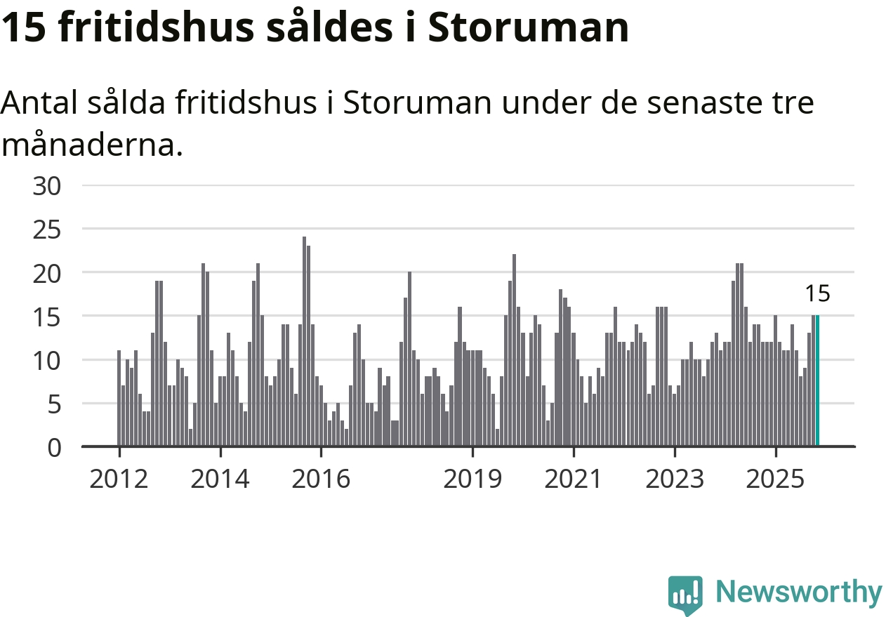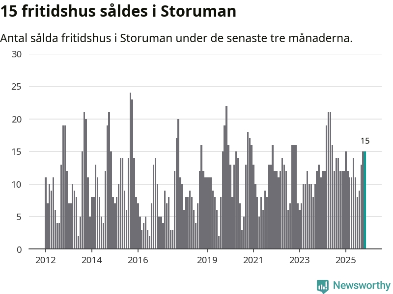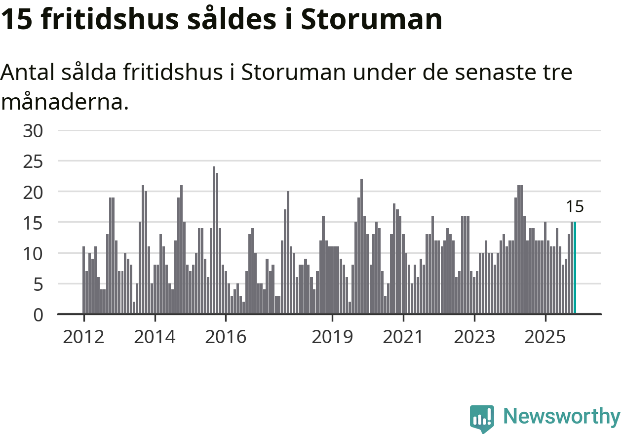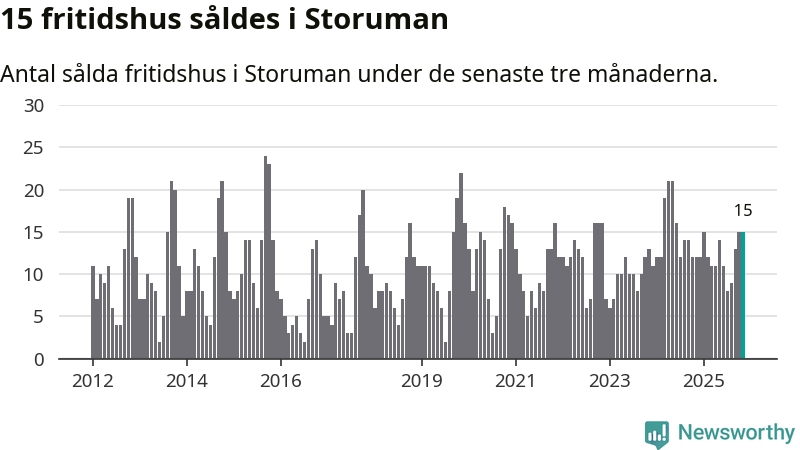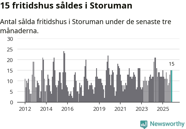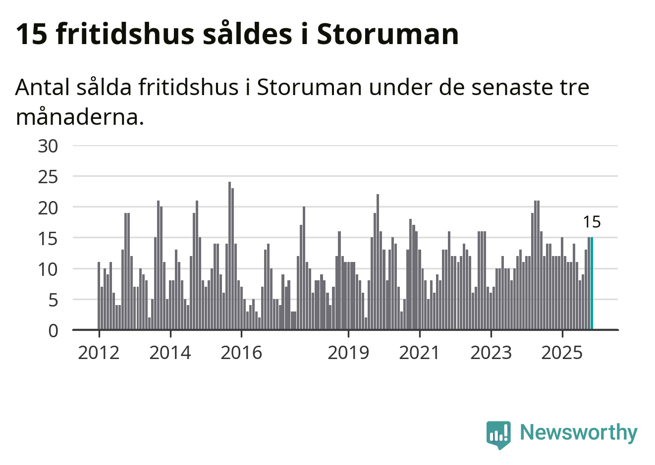Sammanlagt såldes 15 fritidshus i Storumans kommun mellan september och november till ett genomsnittligt pris på 2,1 miljoner kronor. I fjol gjordes tolv affärer vid den här tiden på året.
