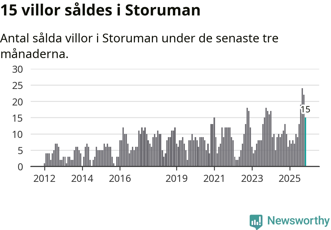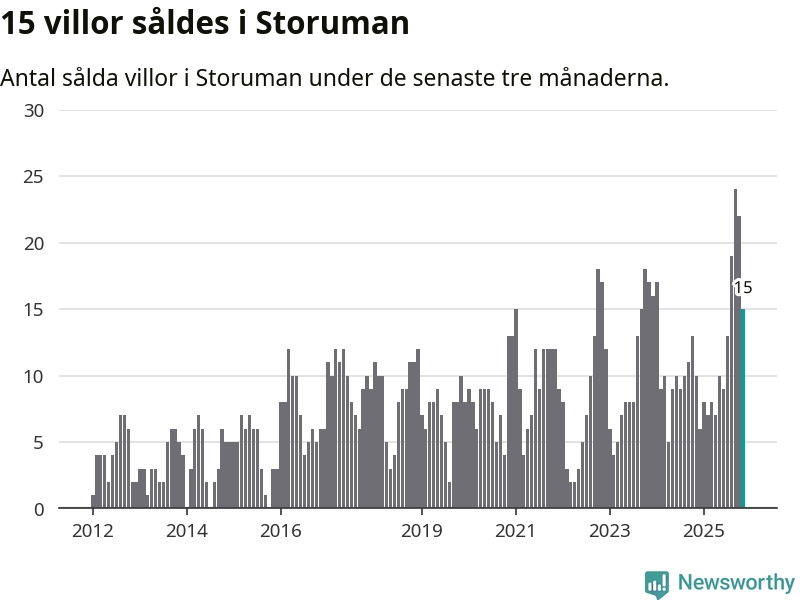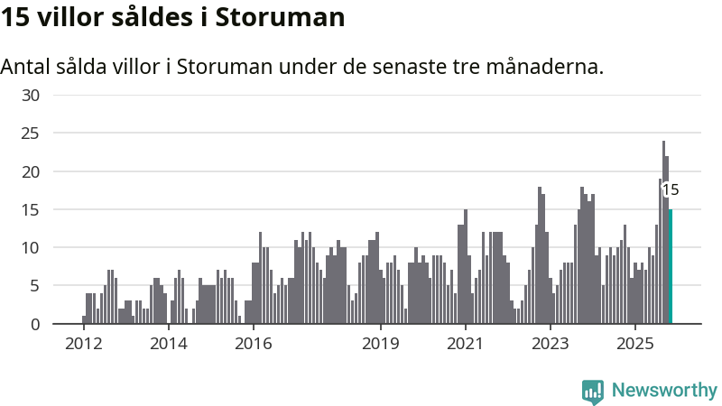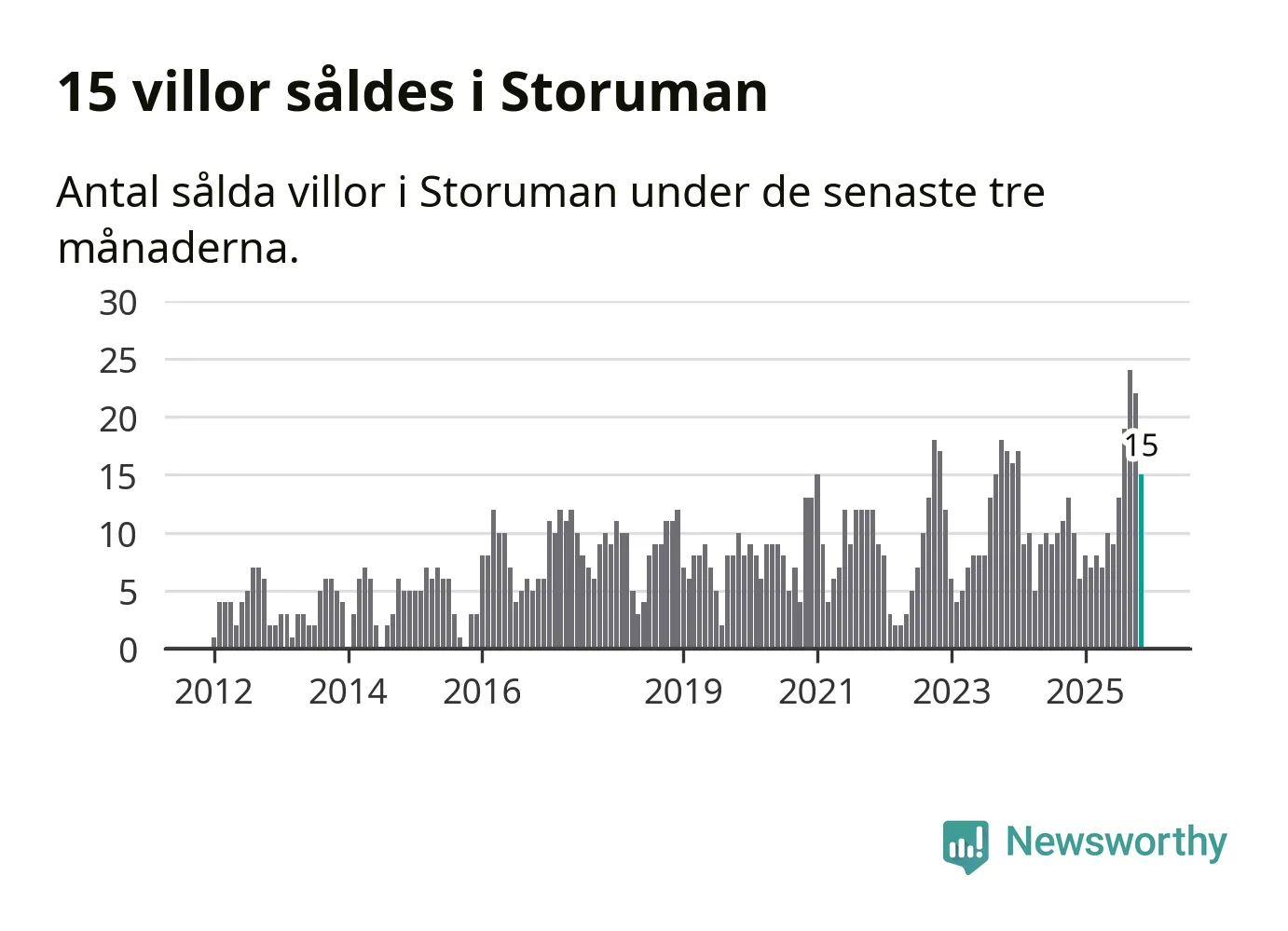 Mellan september och november gjordes sammanlagt 15 affärer med villor i Storumans kommun. Det kan jämföras med tio vid motsvarande tid i fjol.