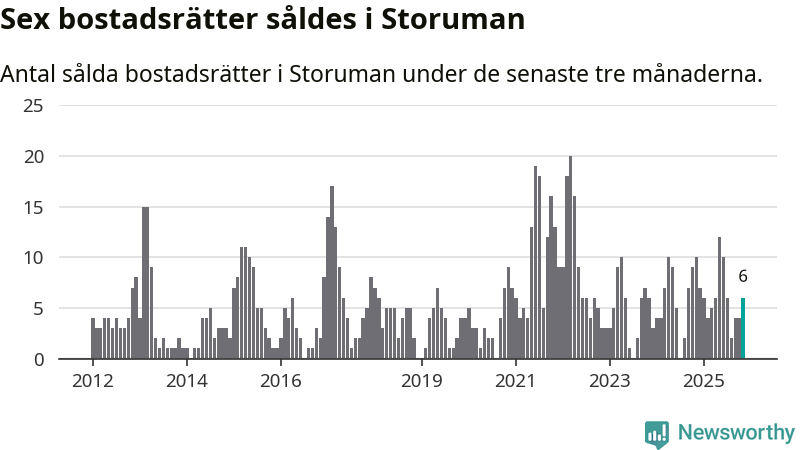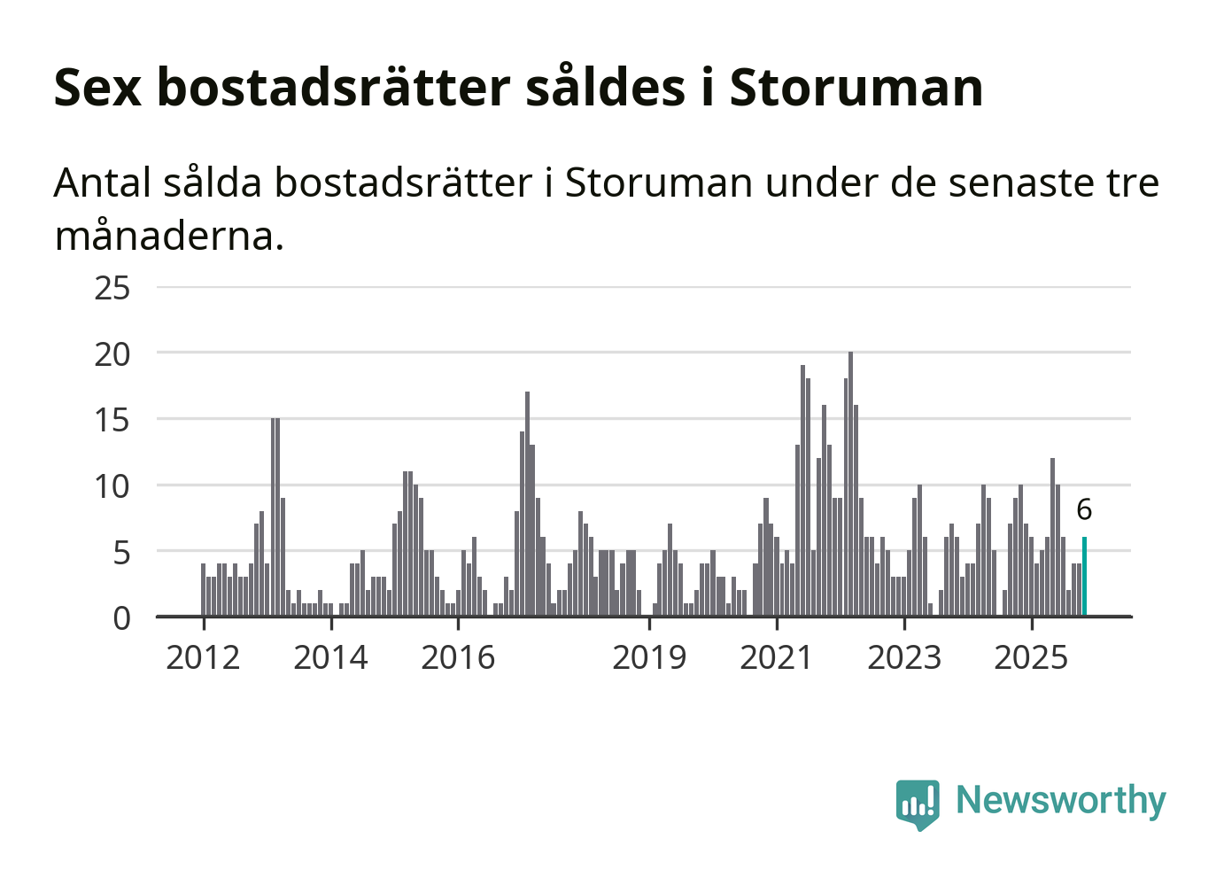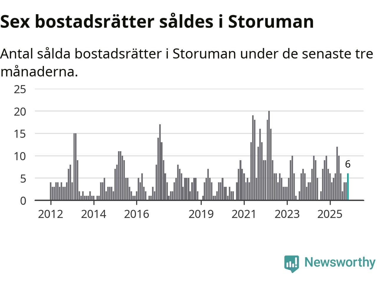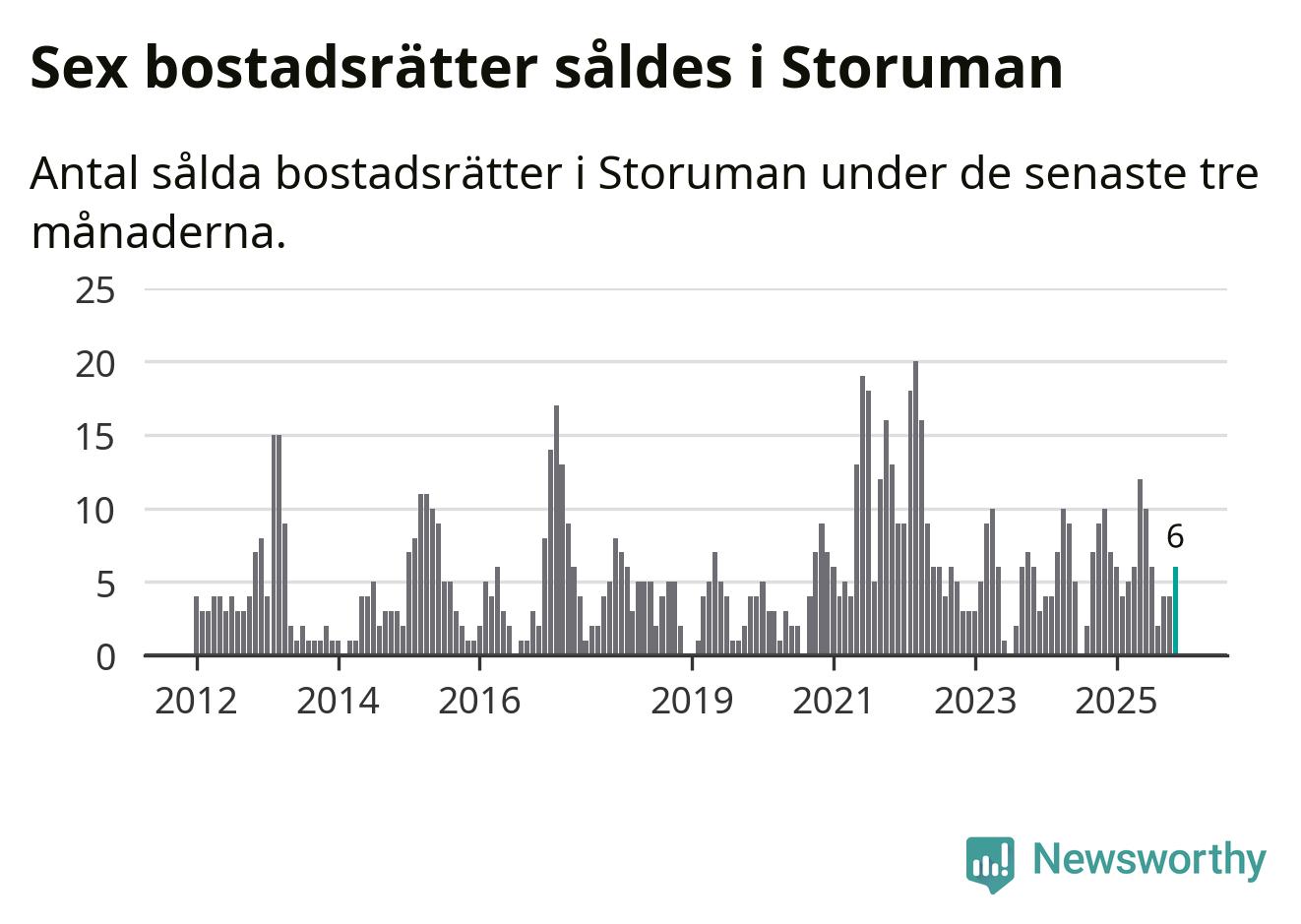 Mellan september och november gjordes sammanlagt sex affärer med bostadsrätter i Storumans kommun. Det kan jämföras med tio vid motsvarande tid i fjol.