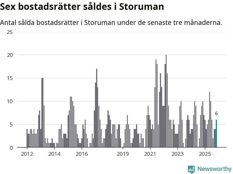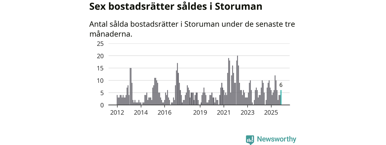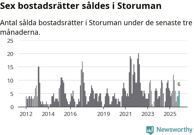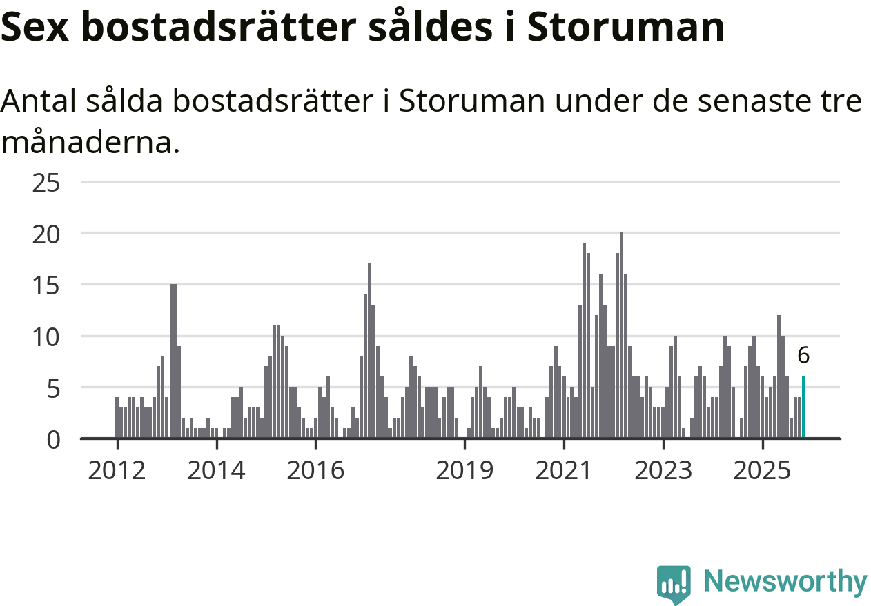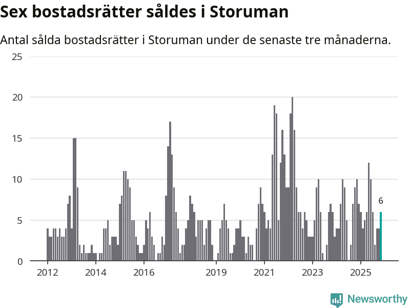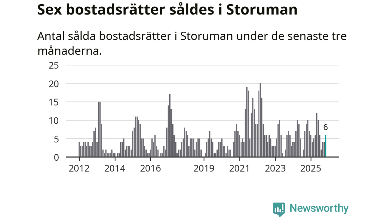Mellan september och november gjordes sammanlagt sex affärer med bostadsrätter i Storumans kommun. Det kan jämföras med tio vid motsvarande tid i fjol.