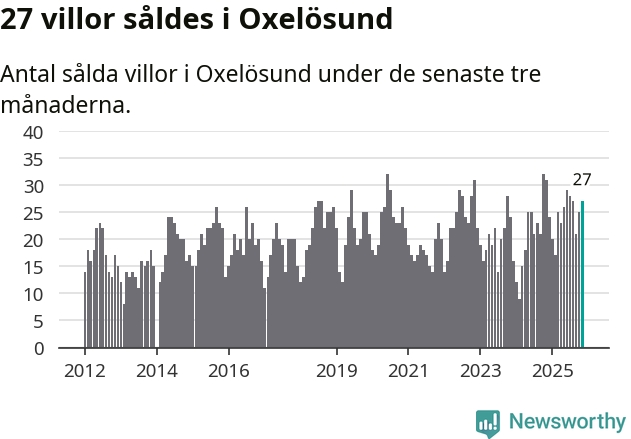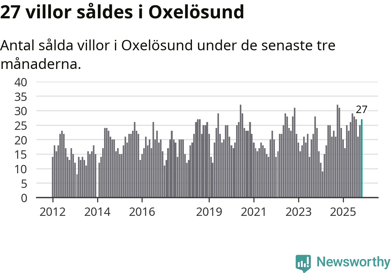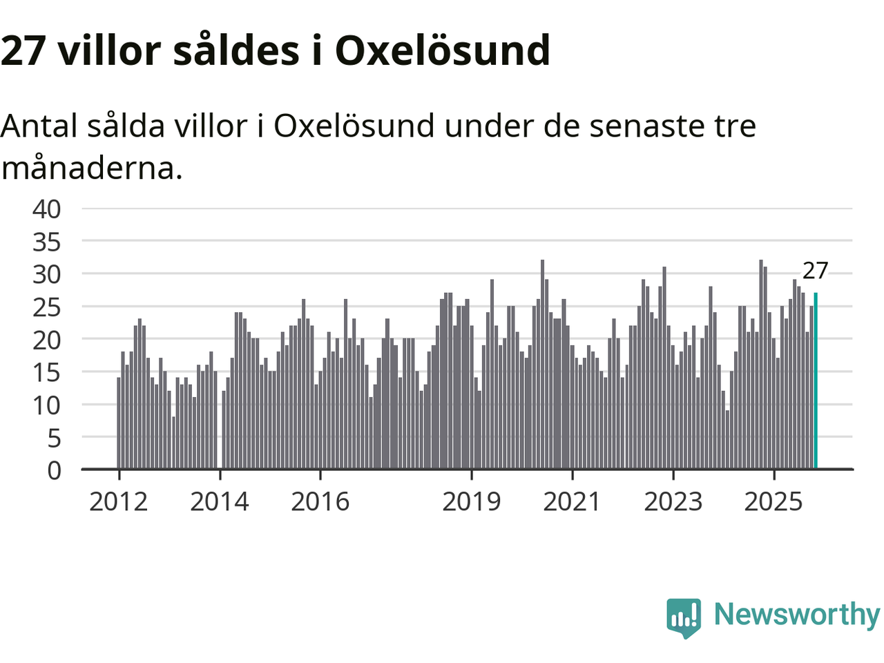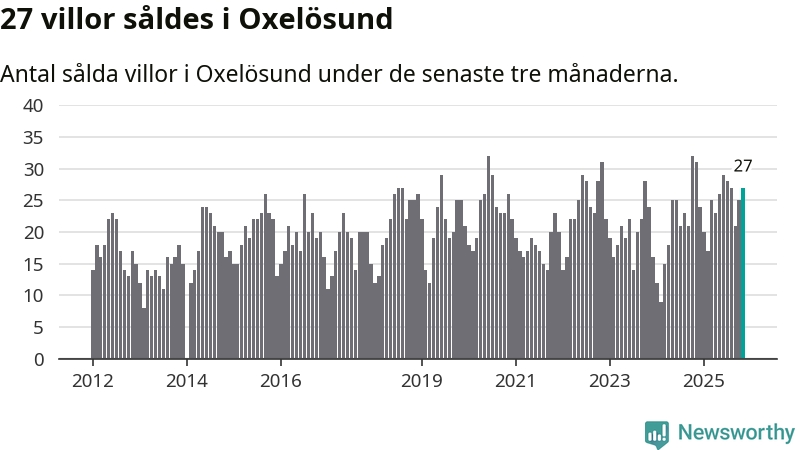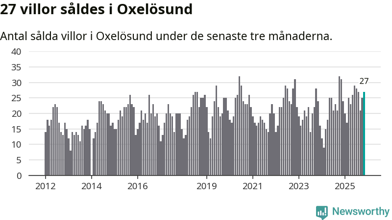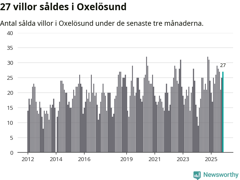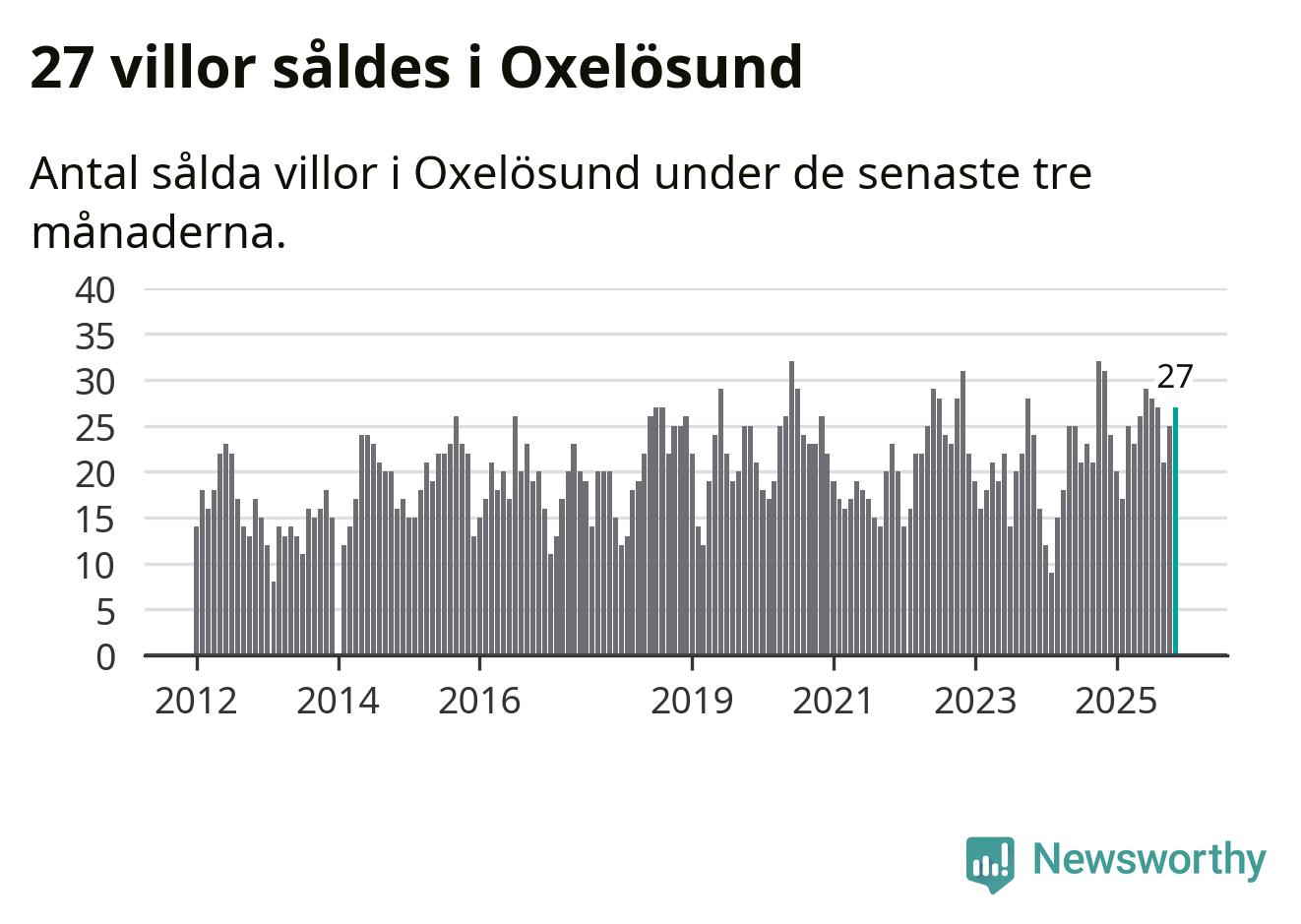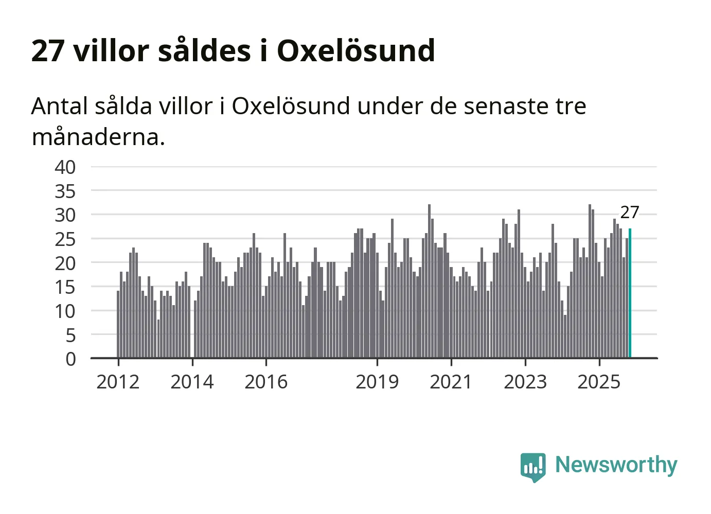Mellan september och november gjordes sammanlagt 27 affärer med villor i Oxelösunds kommun. Det kan jämföras med 31 vid motsvarande tid i fjol.