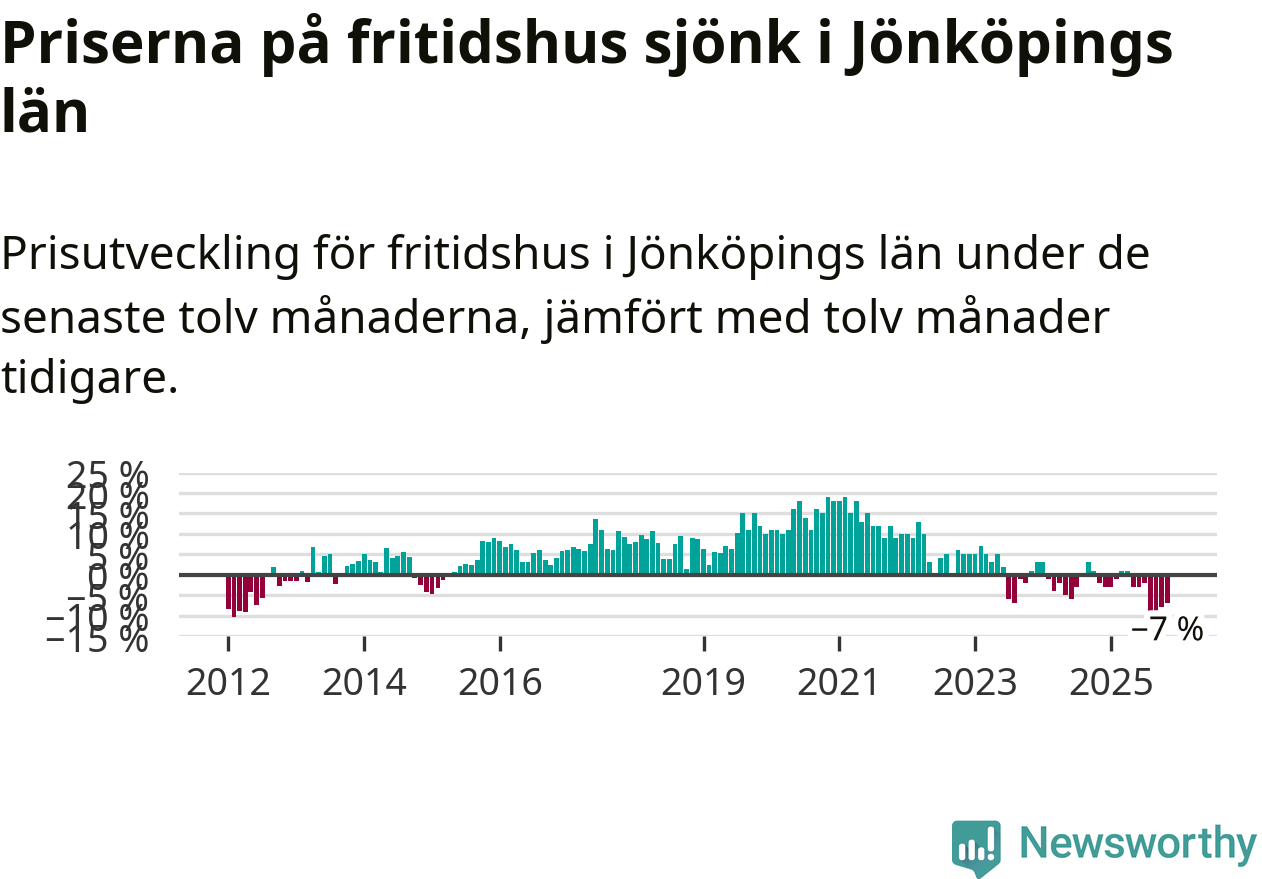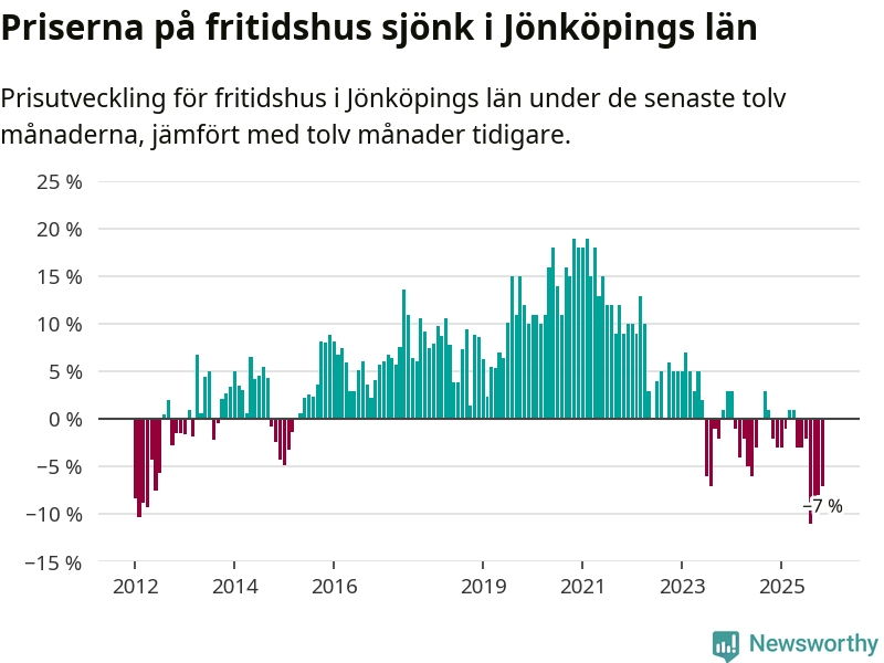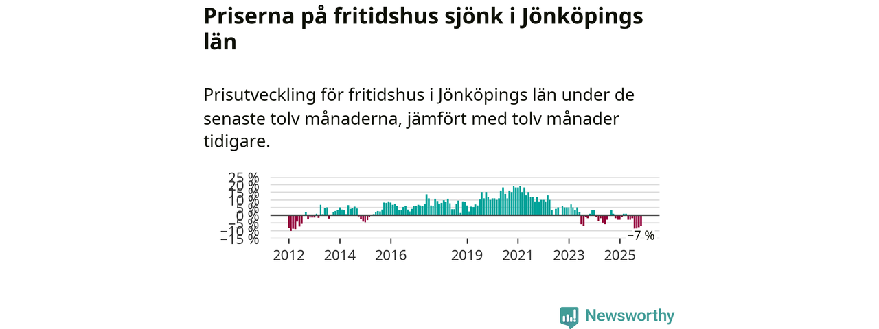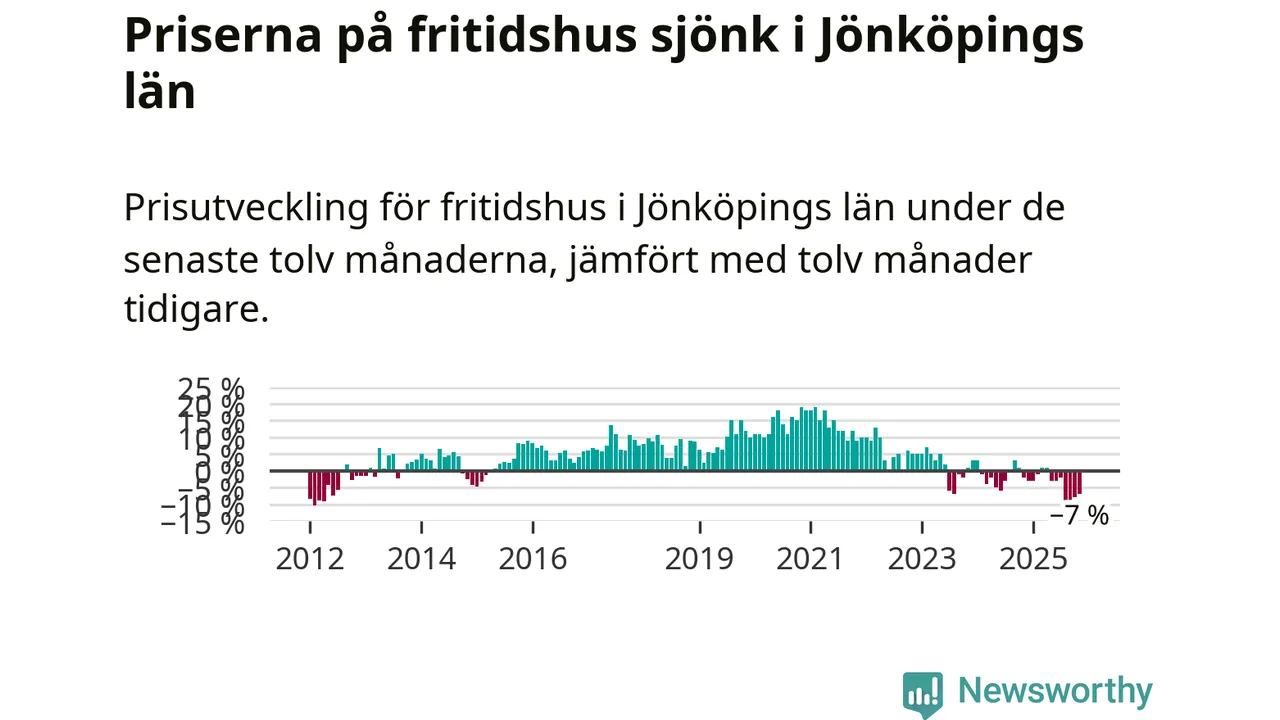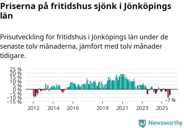 Priserna på fritidshus har gått ner i Jönköpings län. Medelpriset på försäljningarna under de senaste tolv månaderna visar på en nedgång med 7 procent.