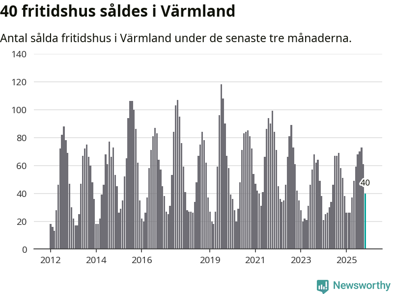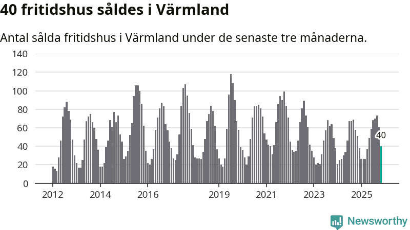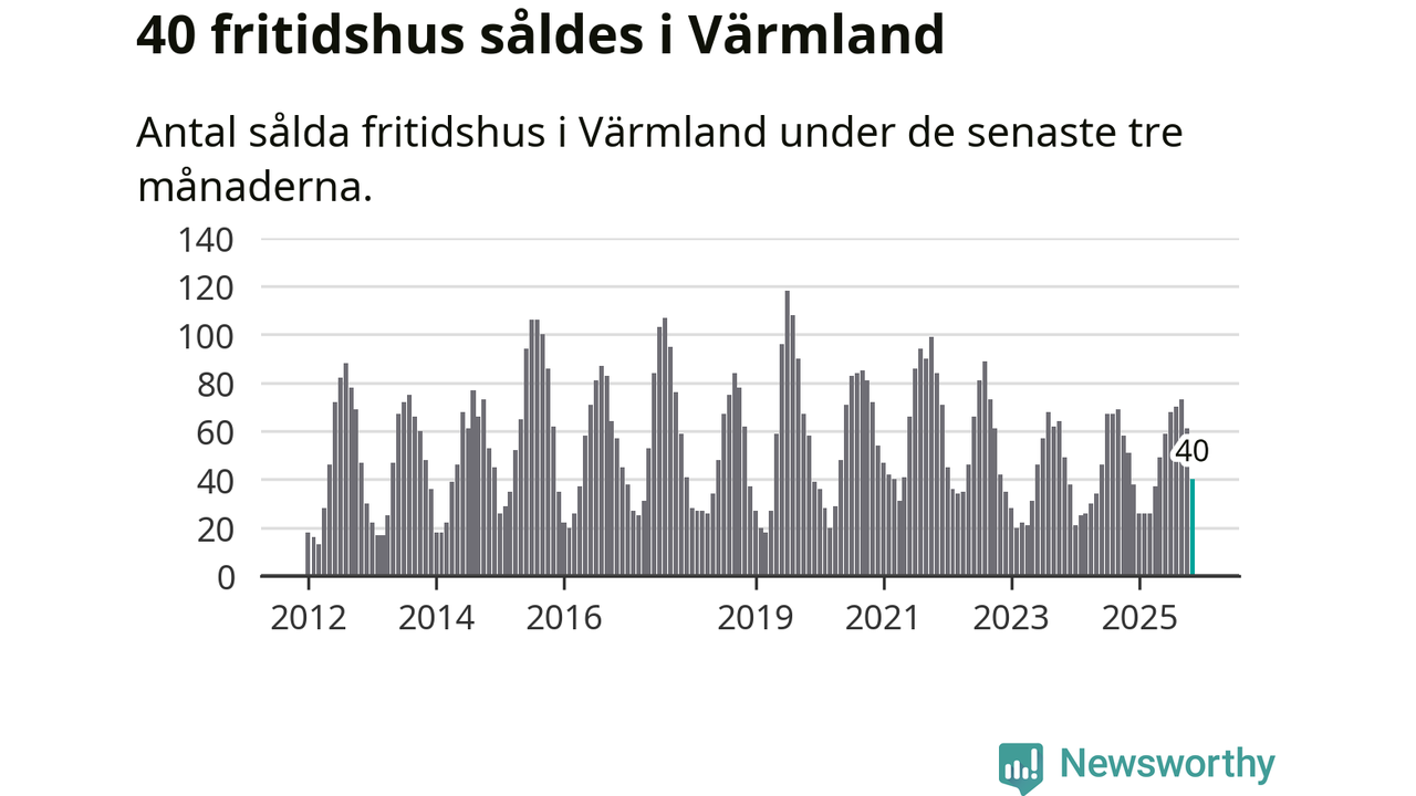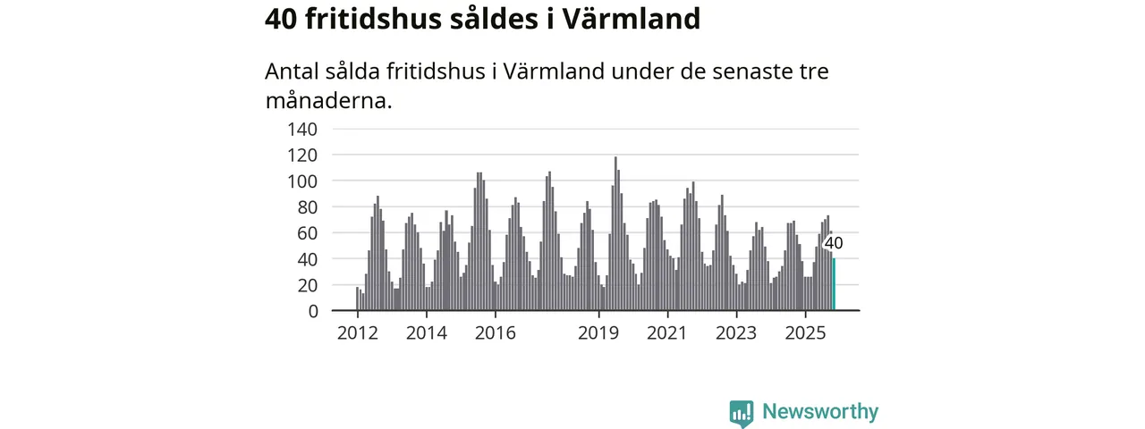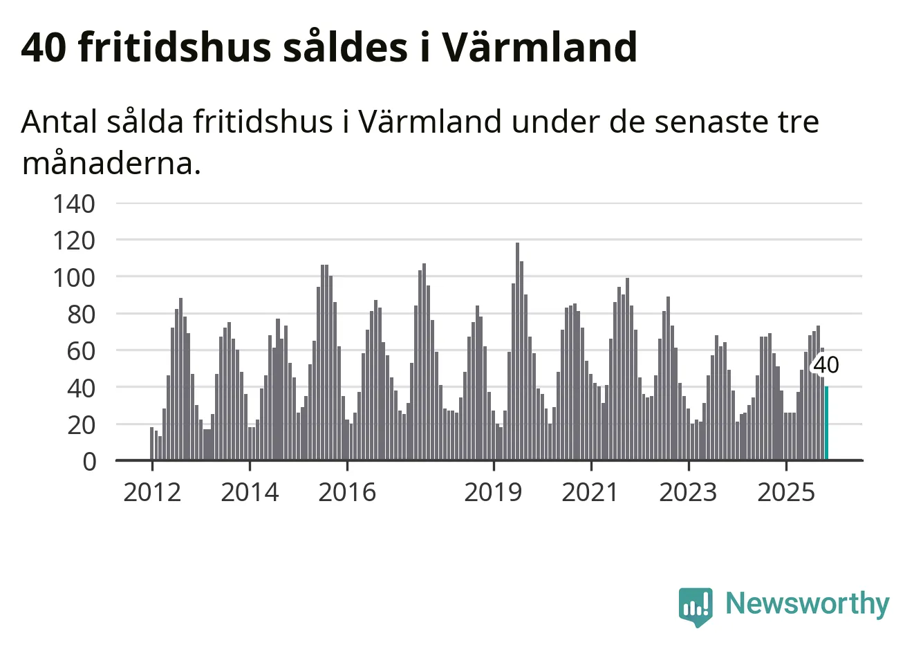 Sammanlagt såldes 40 fritidshus i Värmlands län mellan september och november till ett genomsnittligt pris på 2,2 miljoner kronor. I fjol gjordes 51 affärer vid den här tiden på året.