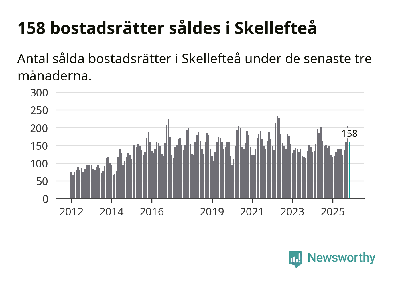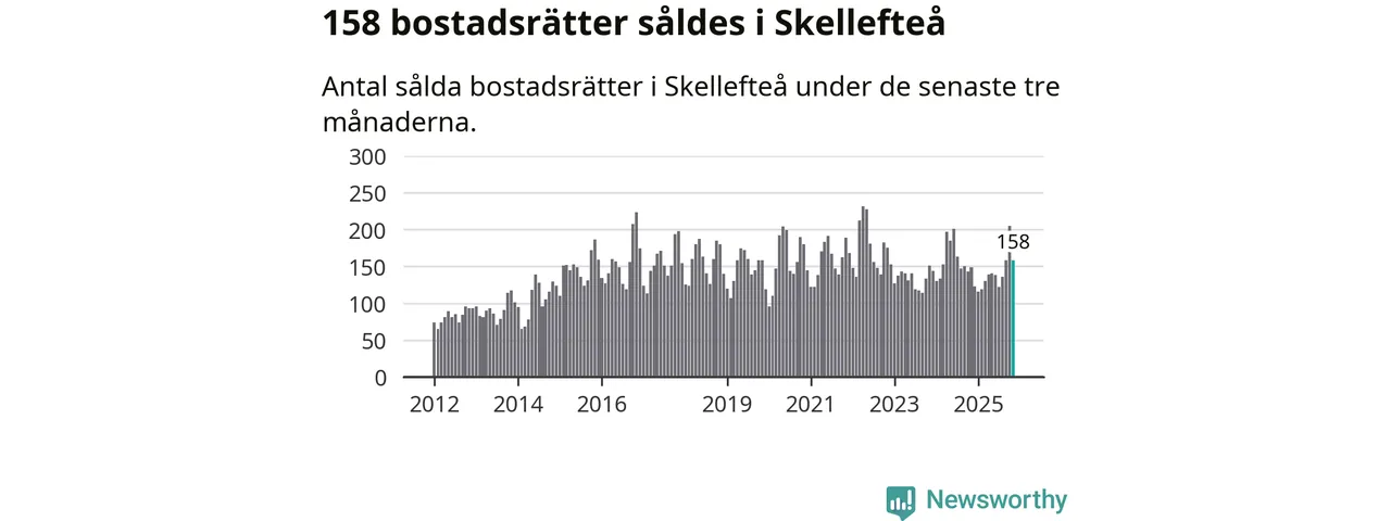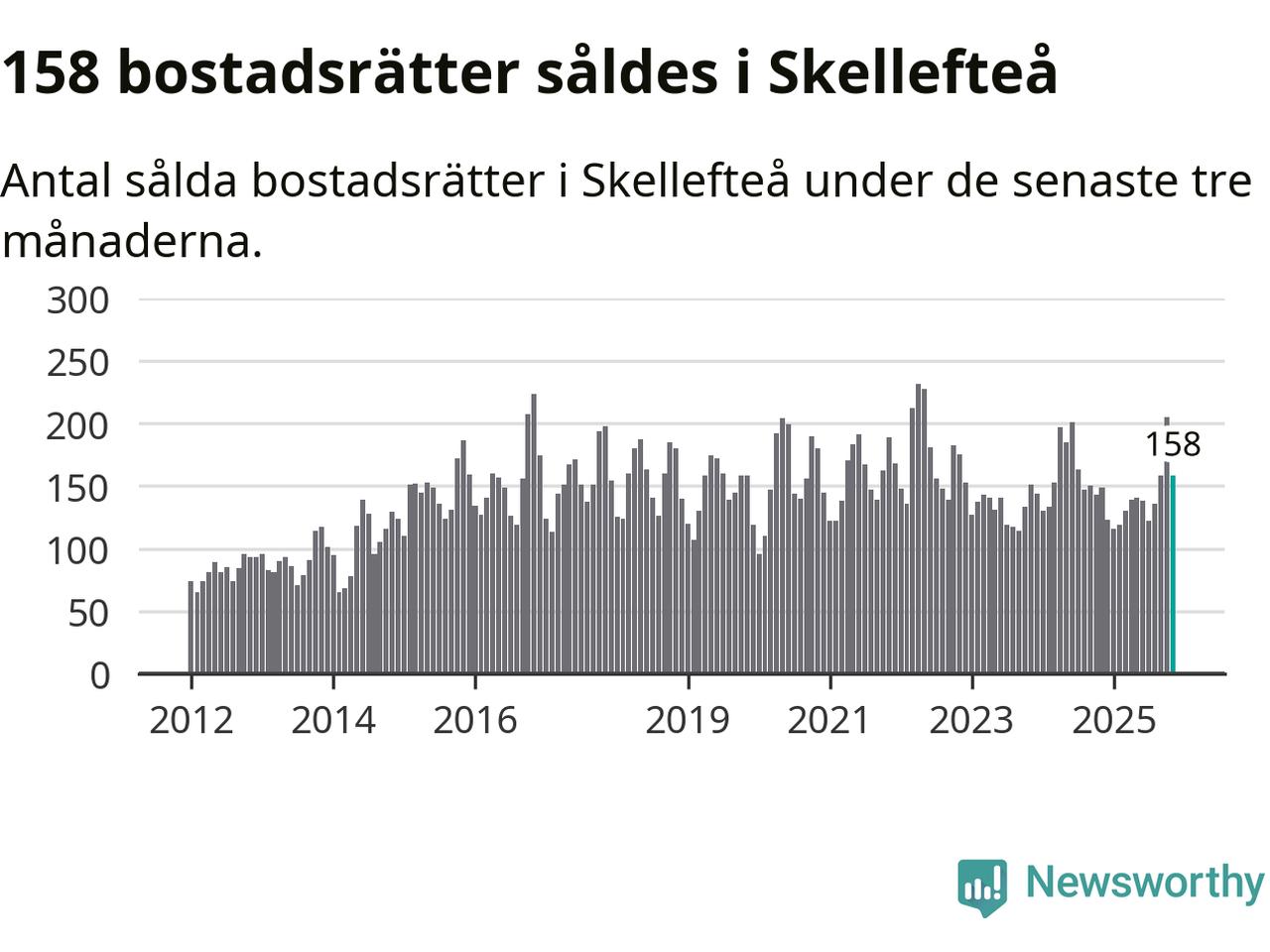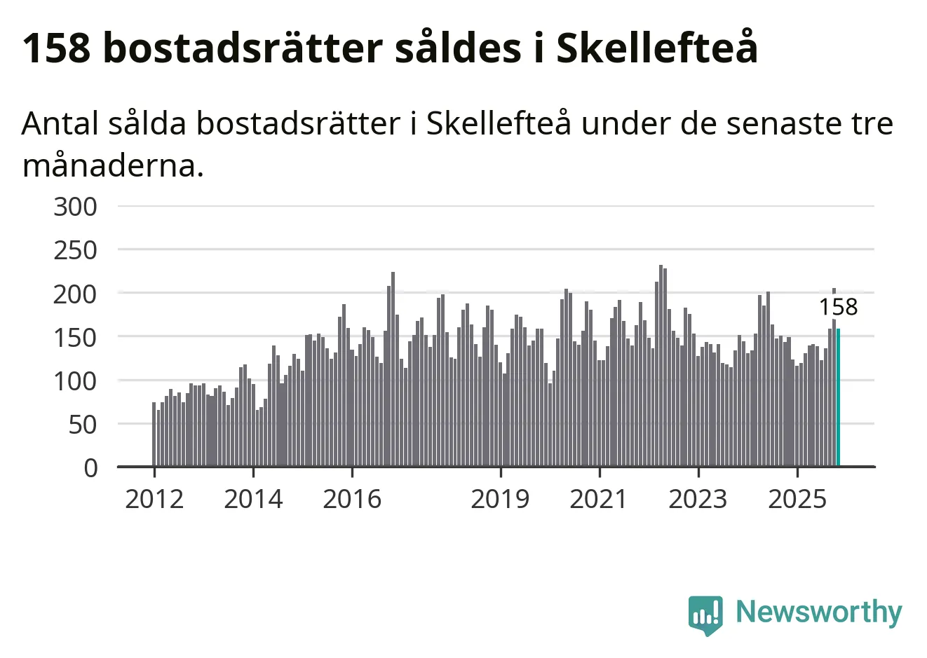 Sammanlagt såldes 158 bostadsrätter i Skellefteå kommun mellan september och november till ett genomsnittligt pris på 1,6 miljoner kronor. I fjol gjordes 149 affärer vid den här tiden på året.