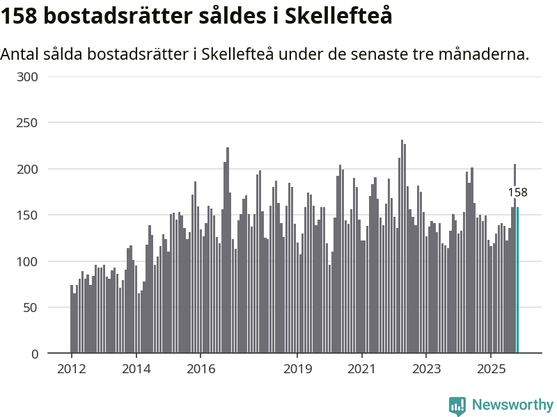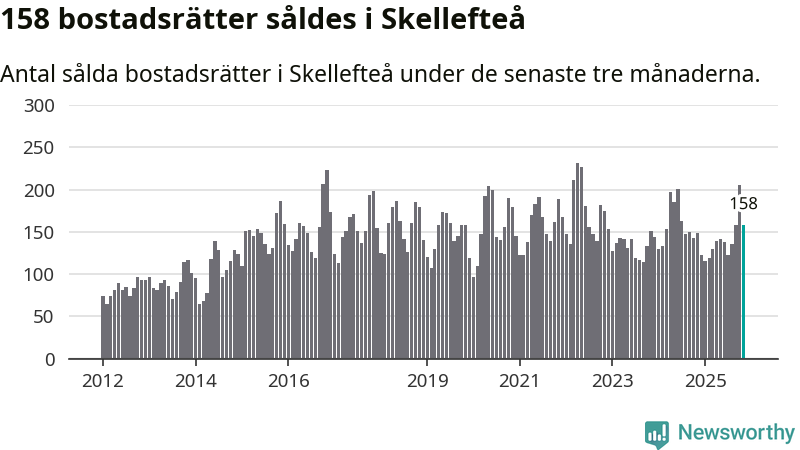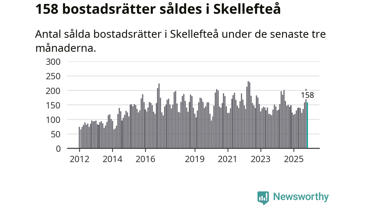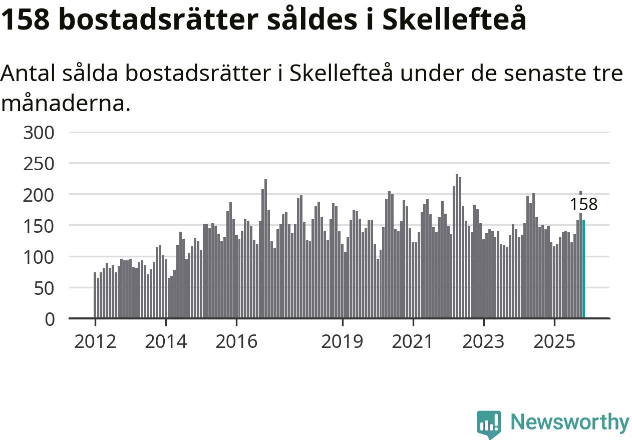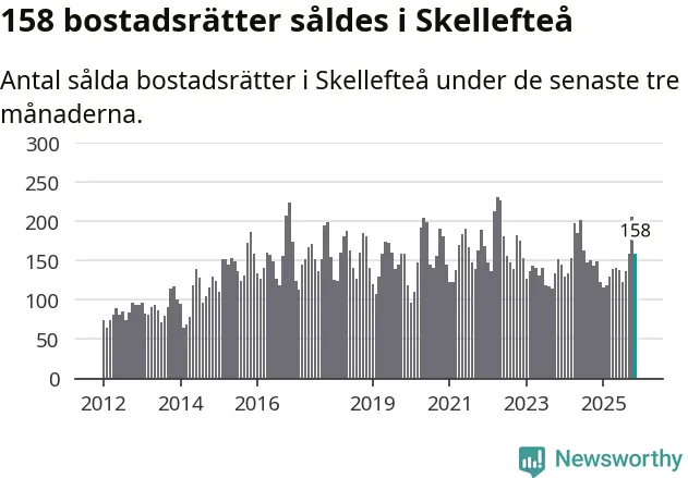 Sammanlagt såldes 158 bostadsrätter i Skellefteå kommun mellan september och november till ett genomsnittligt pris på 1,6 miljoner kronor. I fjol gjordes 149 affärer vid den här tiden på året.