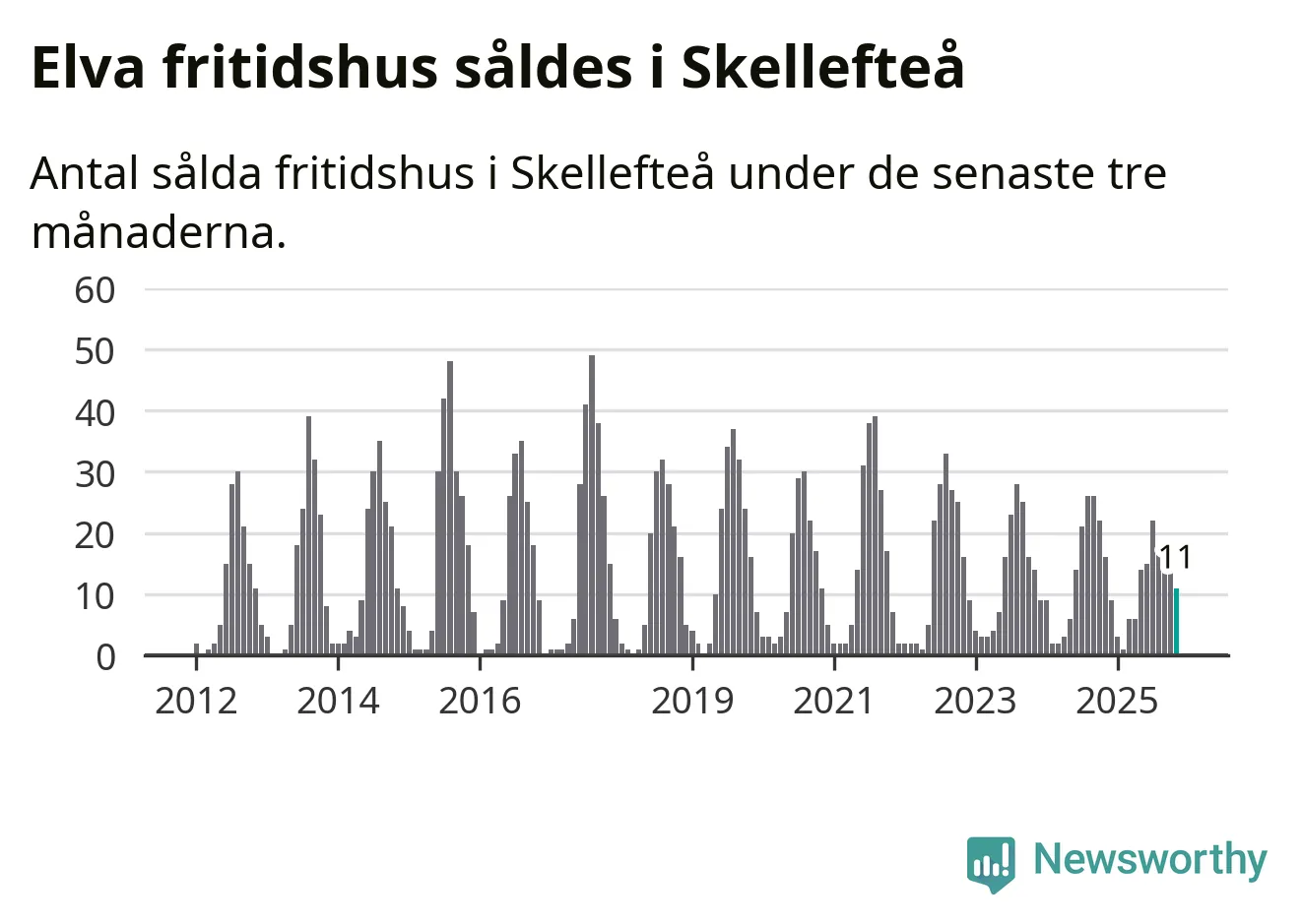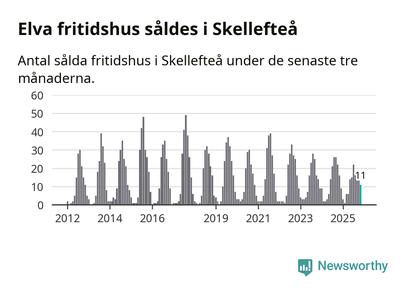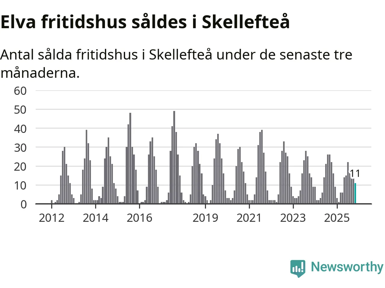 Sammanlagt såldes elva fritidshus i Skellefteå kommun mellan september och november till ett genomsnittligt pris på 1,9 miljoner kronor. I fjol gjordes 16 affärer vid den här tiden på året.