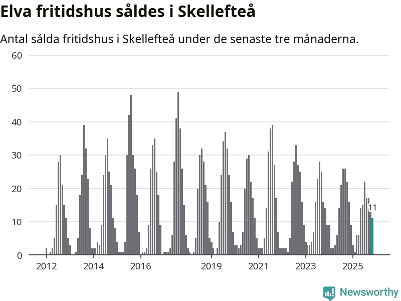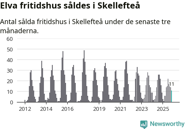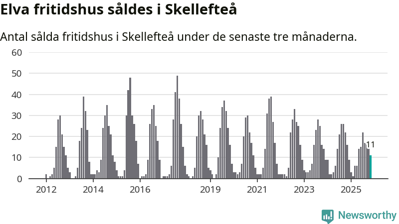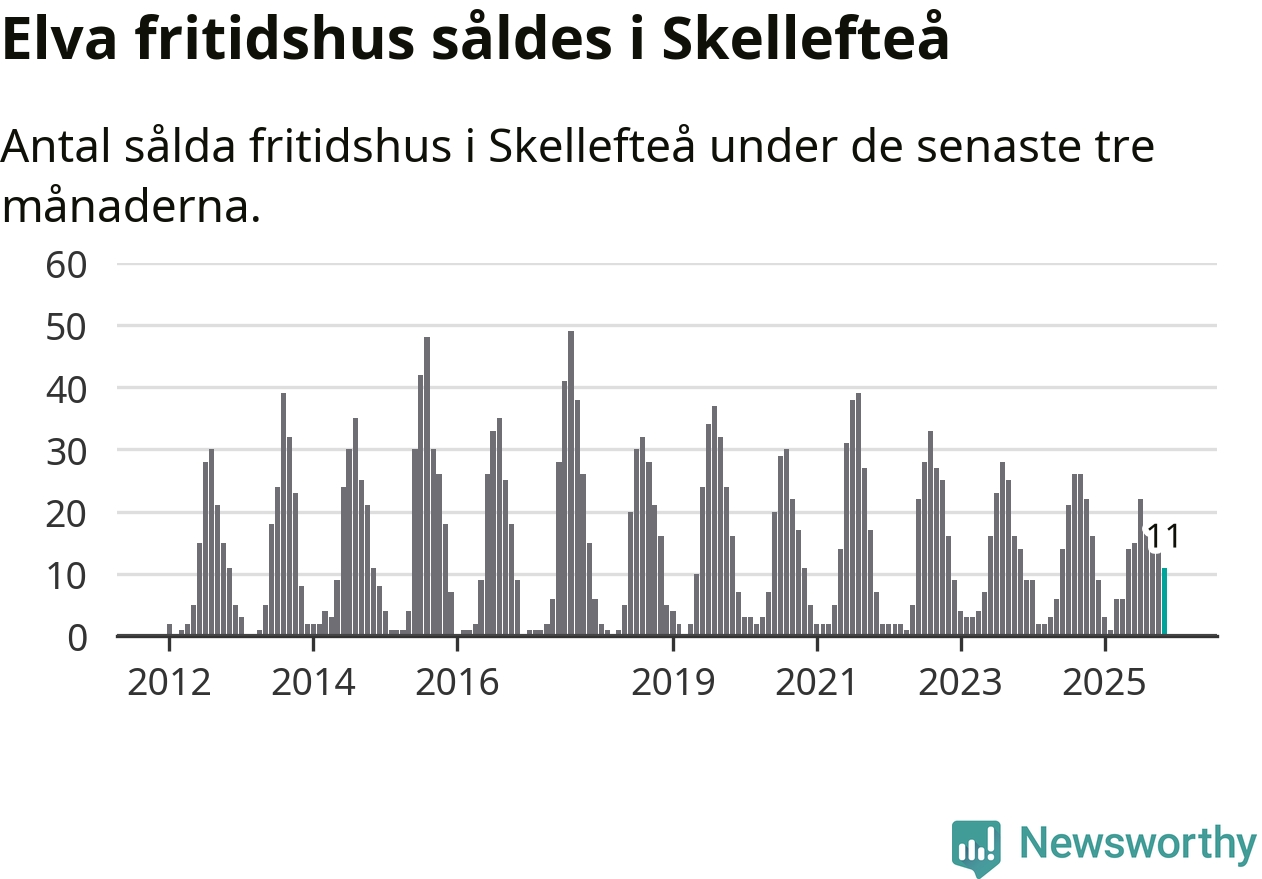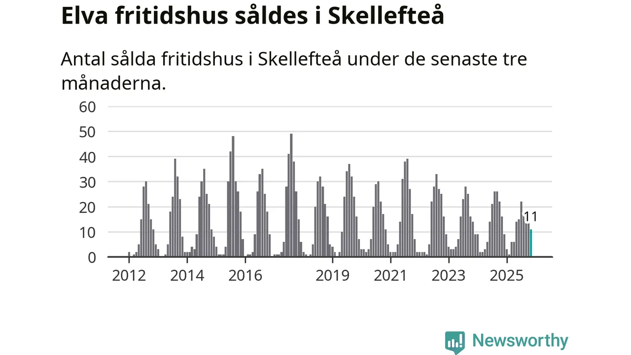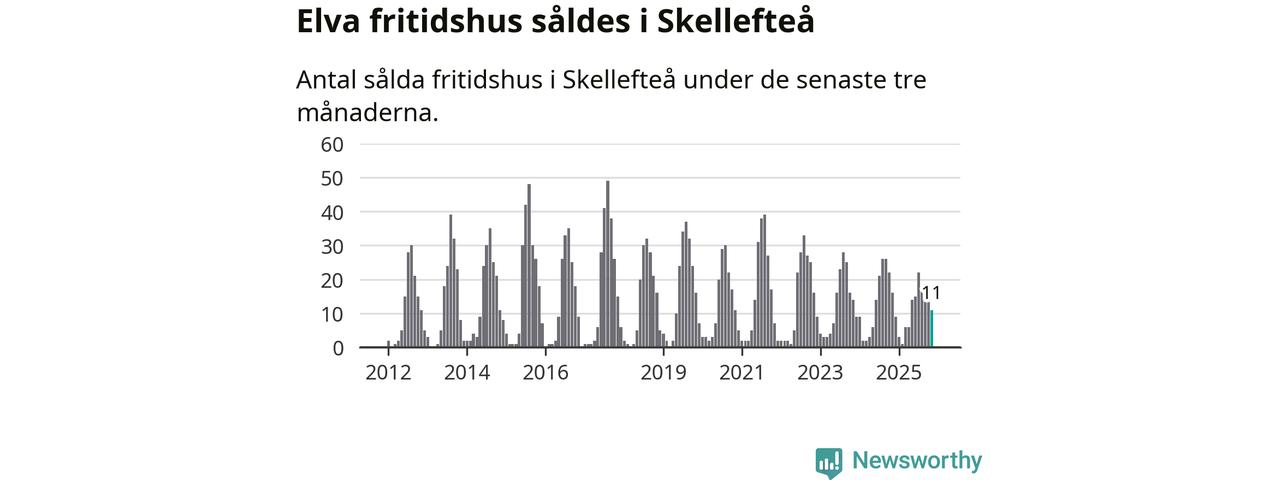 Sammanlagt såldes elva fritidshus i Skellefteå kommun mellan september och november till ett genomsnittligt pris på 1,9 miljoner kronor. I fjol gjordes 16 affärer vid den här tiden på året.