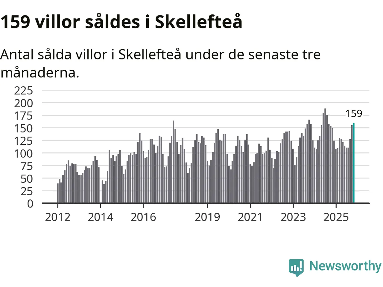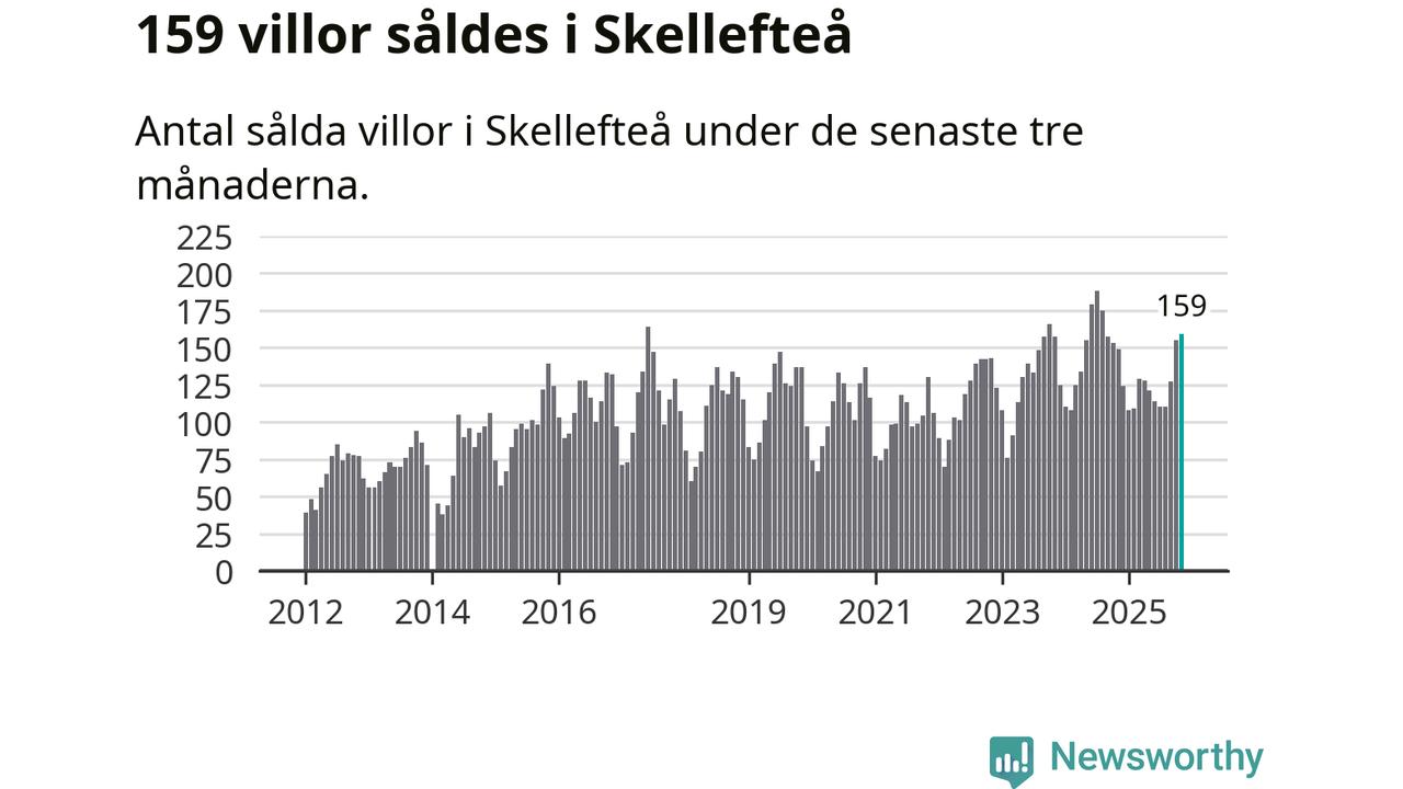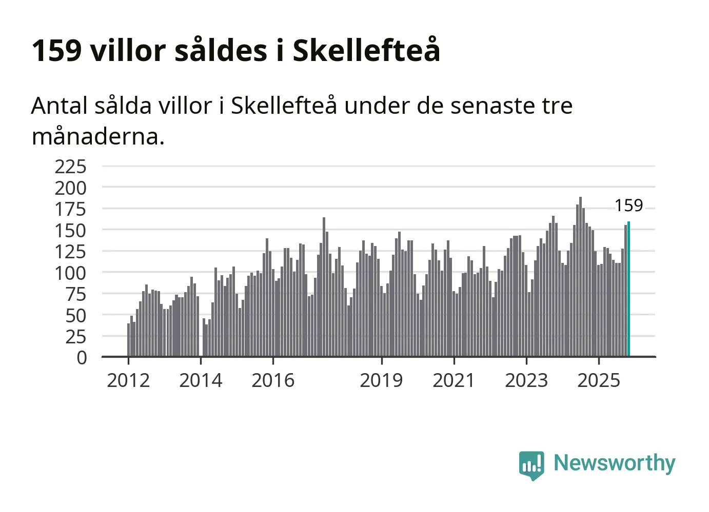 Sammanlagt såldes 159 villor i Skellefteå kommun mellan september och november till ett genomsnittligt pris på 2,5 miljoner kronor. I fjol gjordes 149 affärer vid den här tiden på året.
