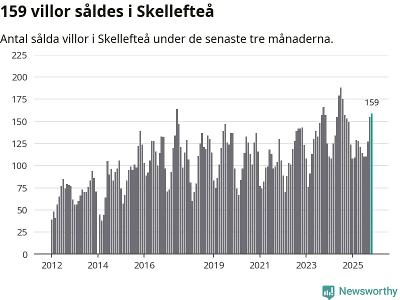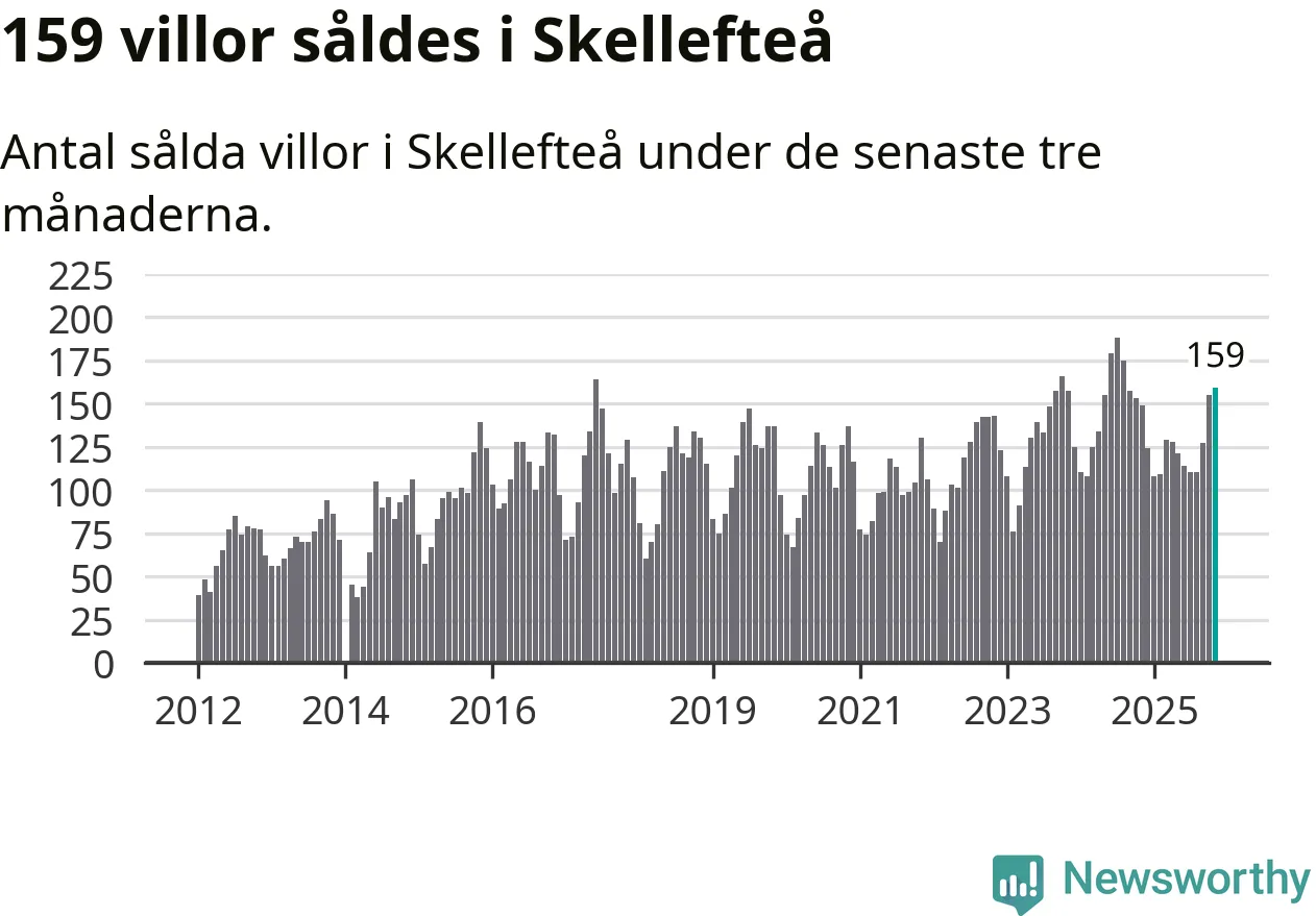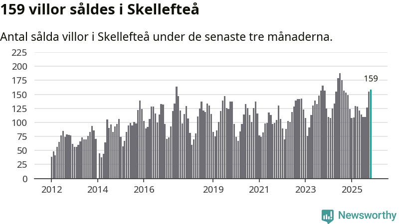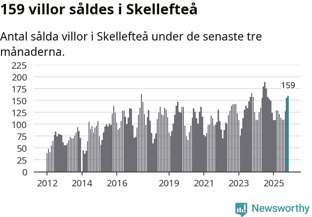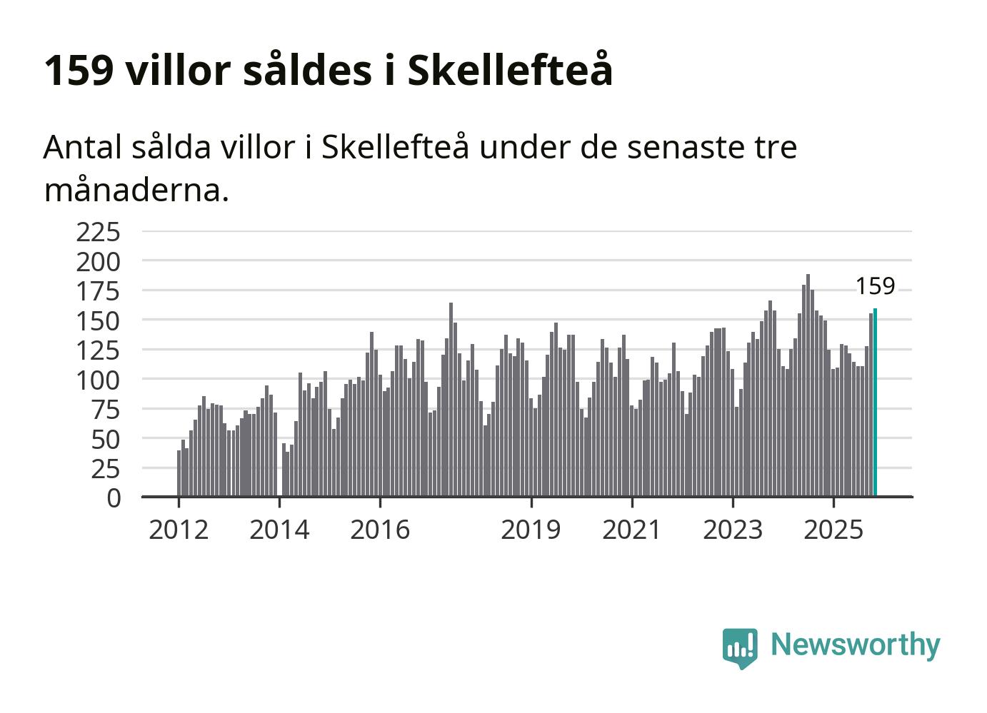 Sammanlagt såldes 159 villor i Skellefteå kommun mellan september och november till ett genomsnittligt pris på 2,5 miljoner kronor. I fjol gjordes 149 affärer vid den här tiden på året.