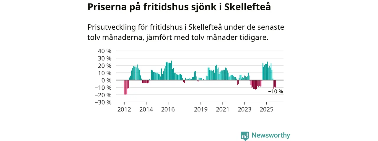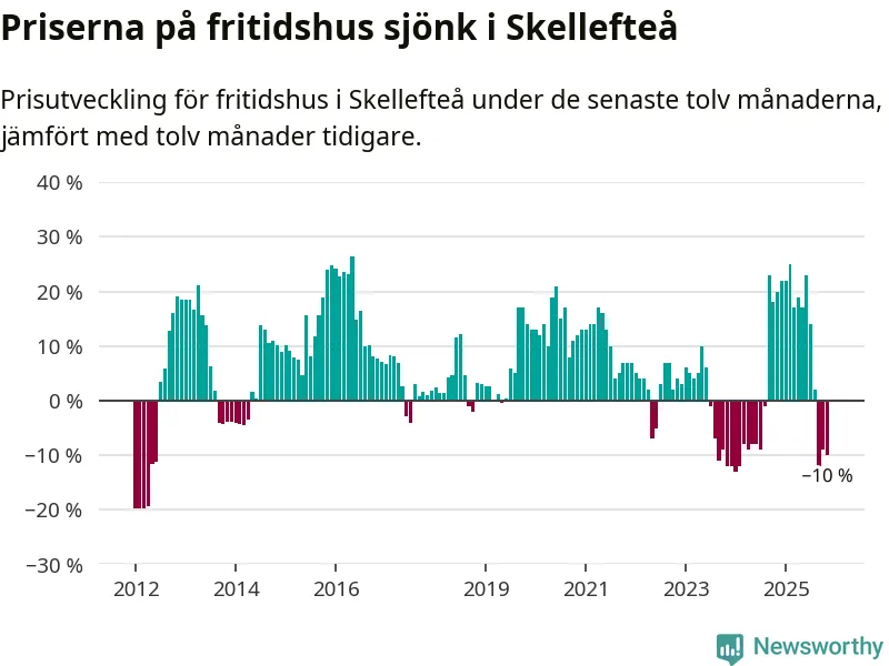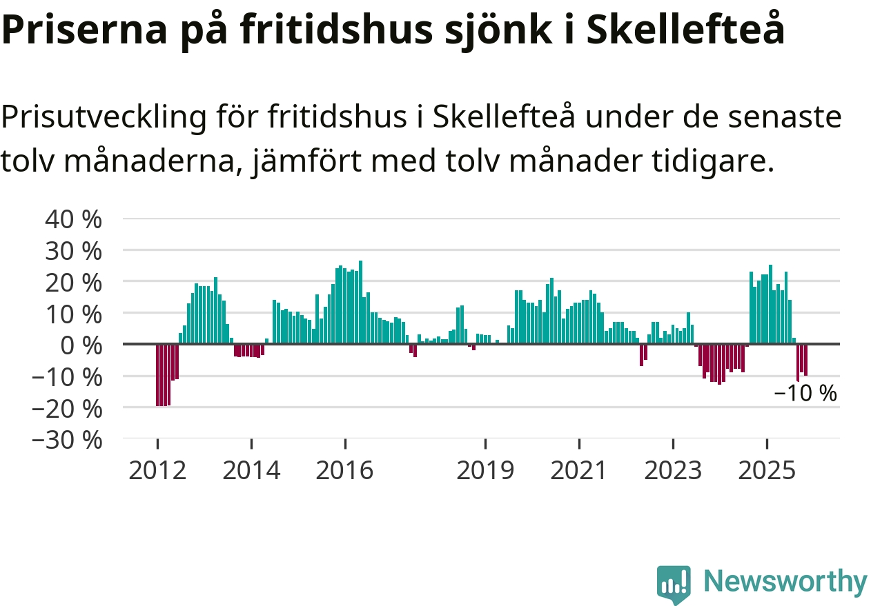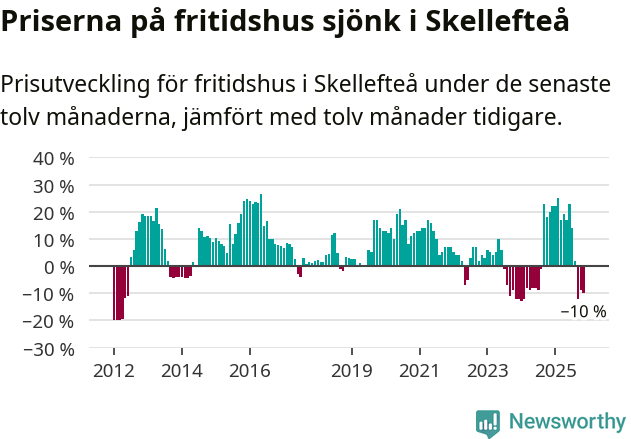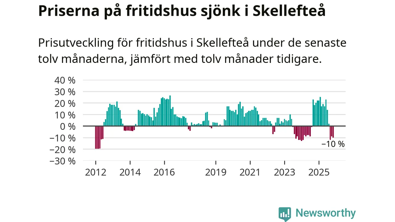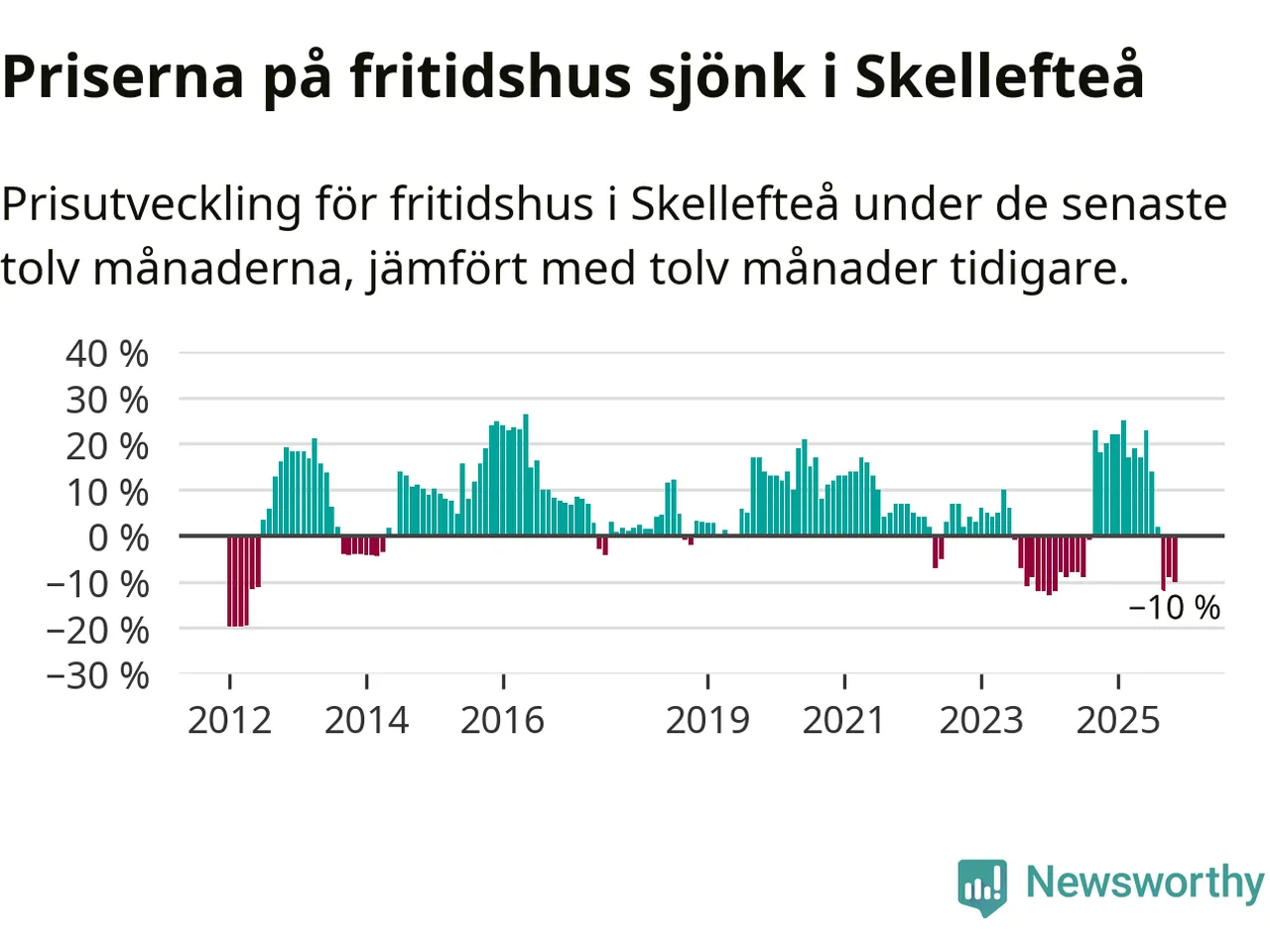 Priserna på fritidshus har gått ner i Skellefteå kommun. Medelpriset på försäljningarna under de senaste tolv månaderna visar på en nedgång med 10 procent.