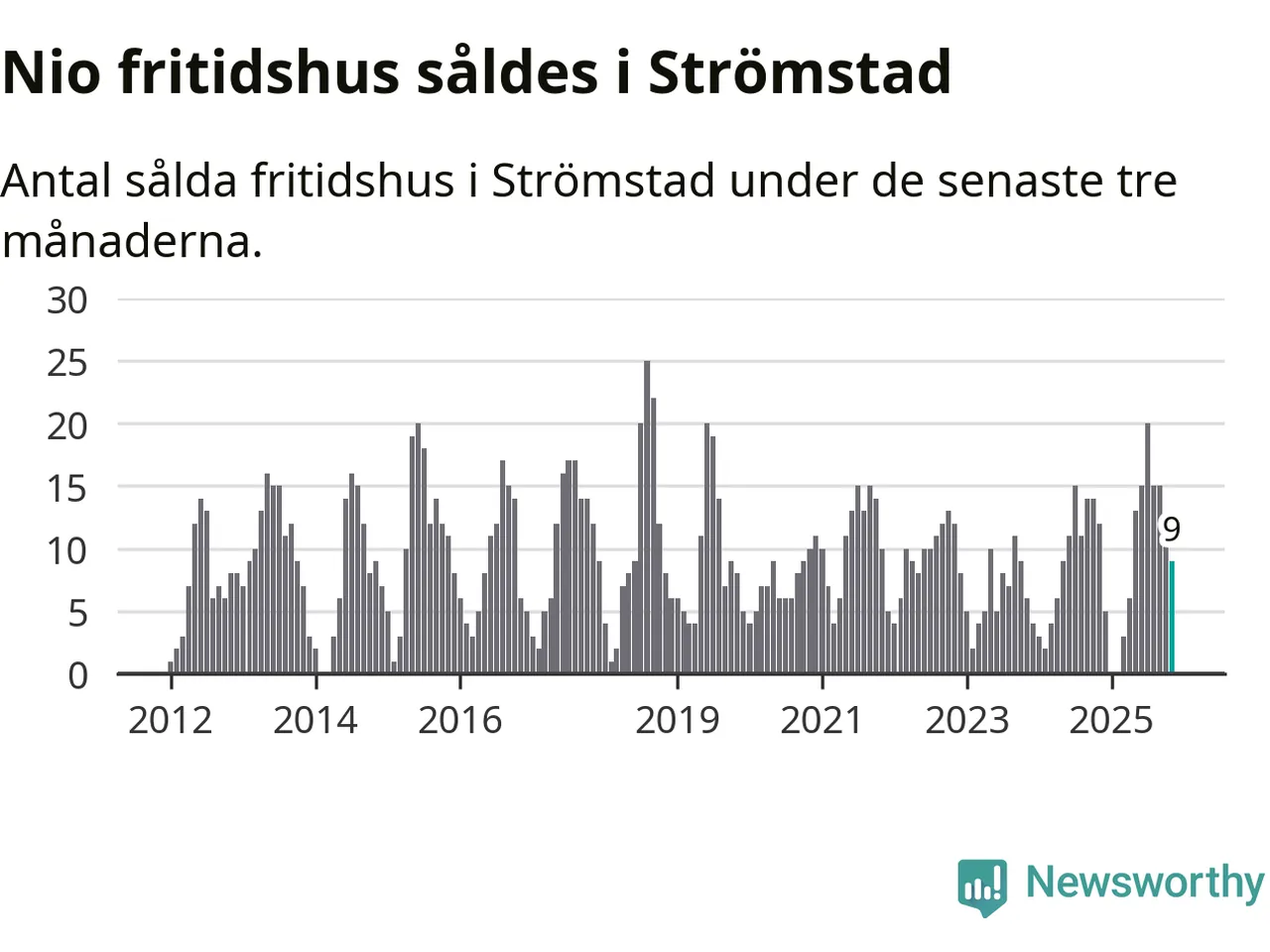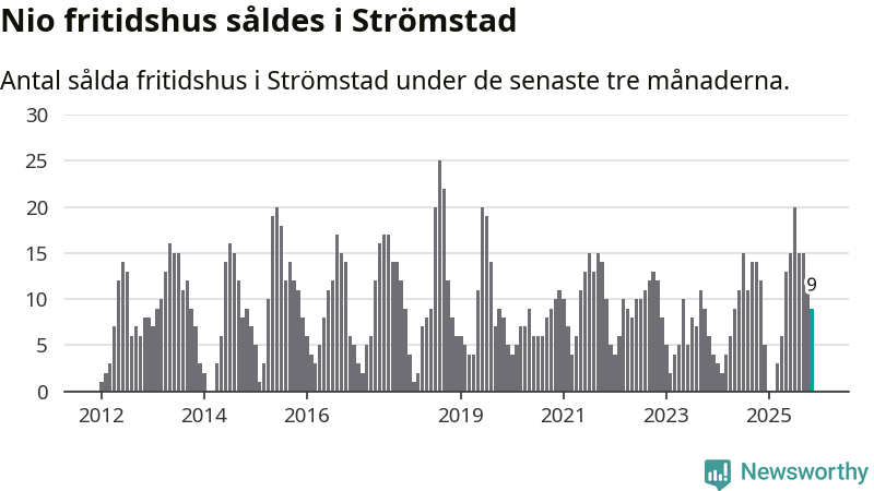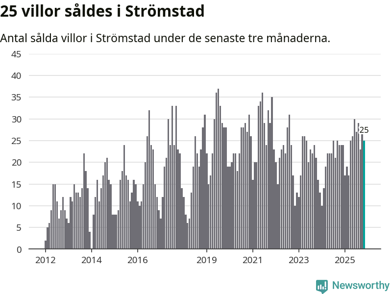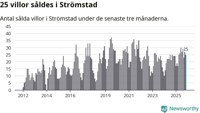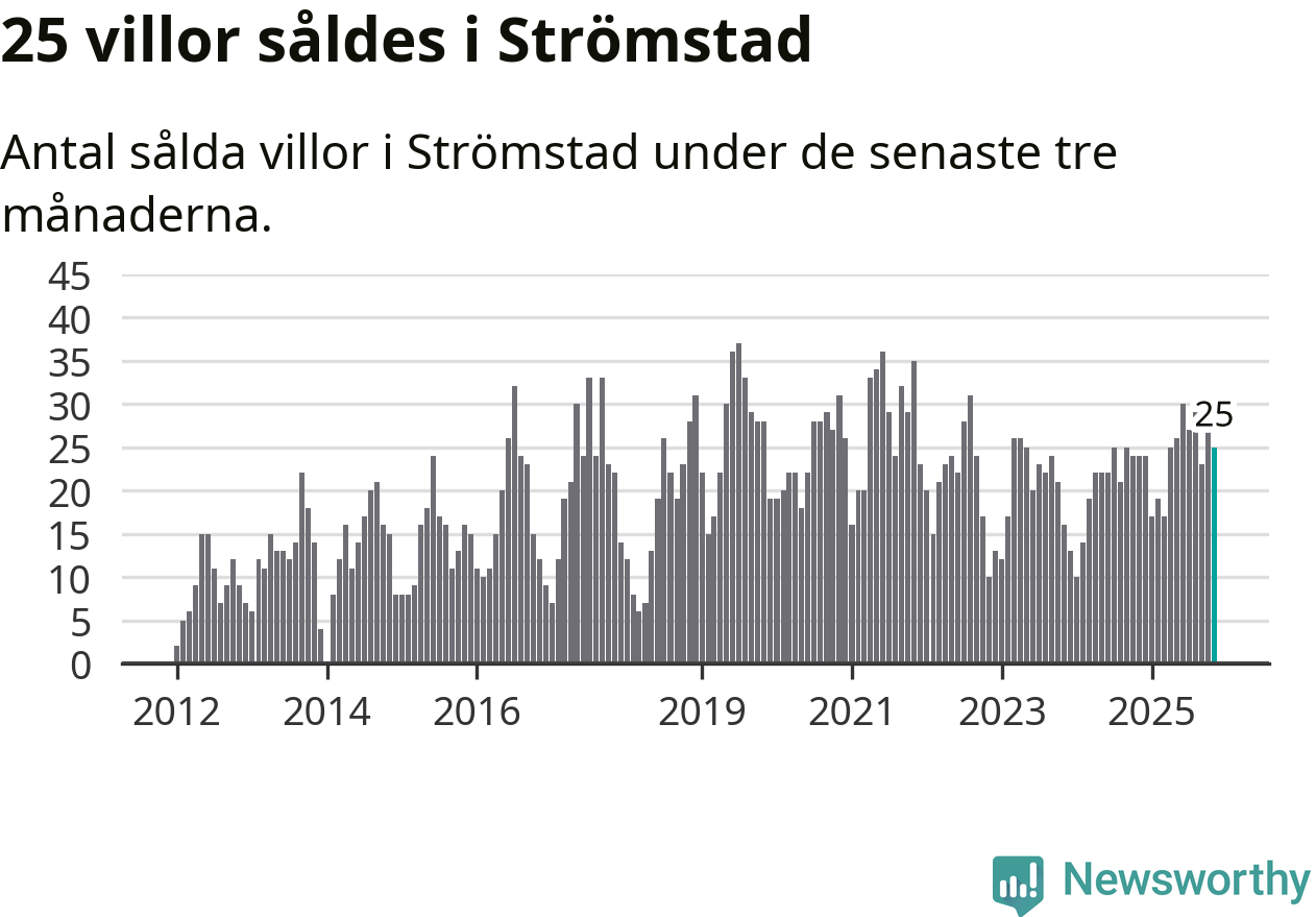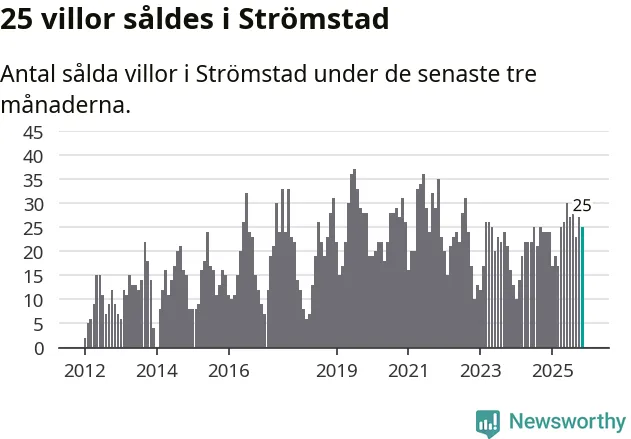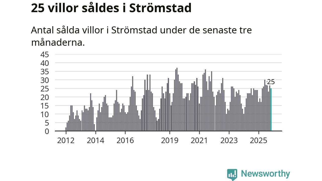 Mellan september och november gjordes sammanlagt 25 affärer med villor i Strömstads kommun. Det kan jämföras med 24 vid motsvarande tid i fjol.