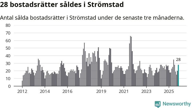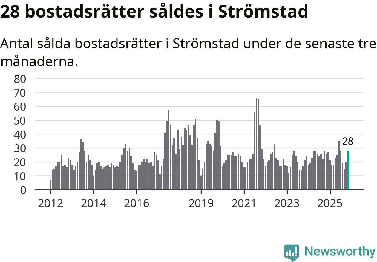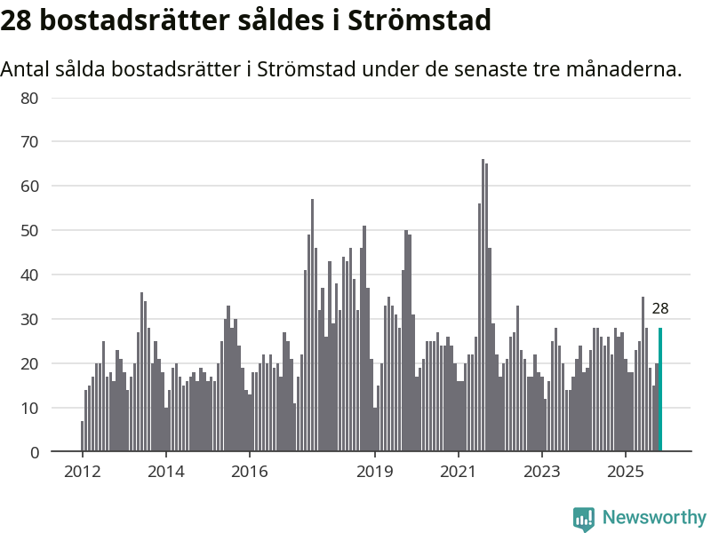 Mellan september och november gjordes sammanlagt 28 affärer med bostadsrätter i Strömstads kommun. Det kan jämföras med 26 vid motsvarande tid i fjol.