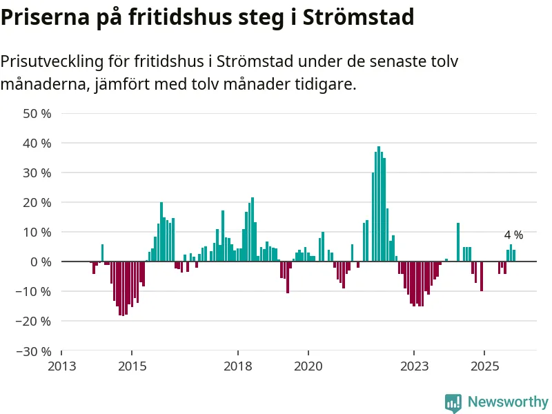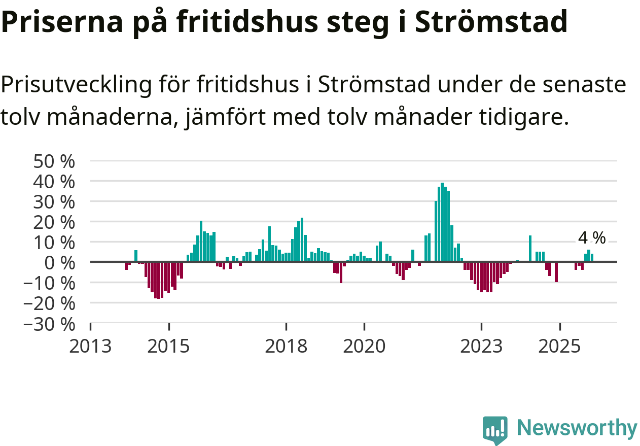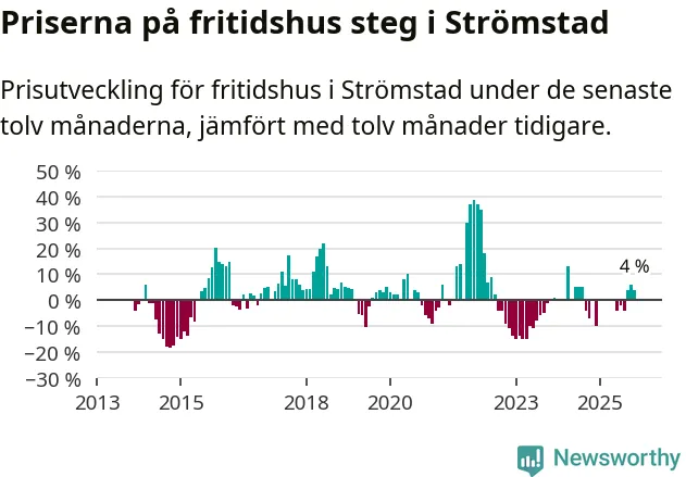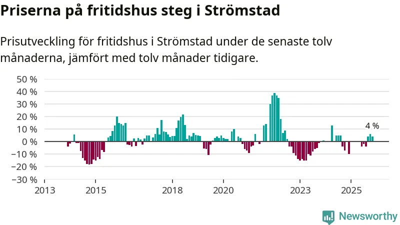 Priserna på fritidshus har gått upp i Strömstads kommun. Medelpriset på försäljningarna under de senaste tolv månaderna visar på en uppgång med 4 procent.