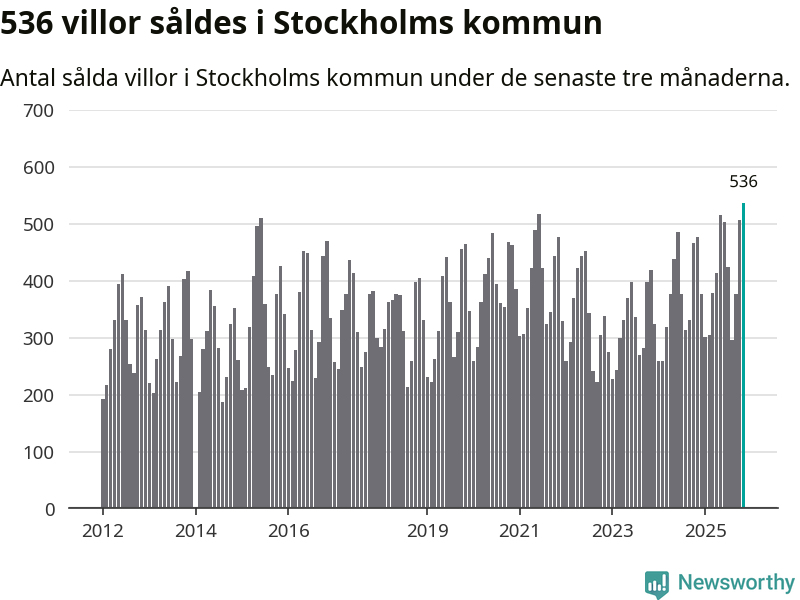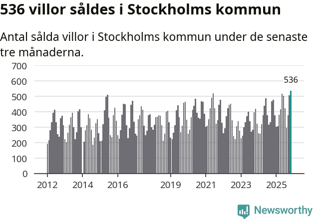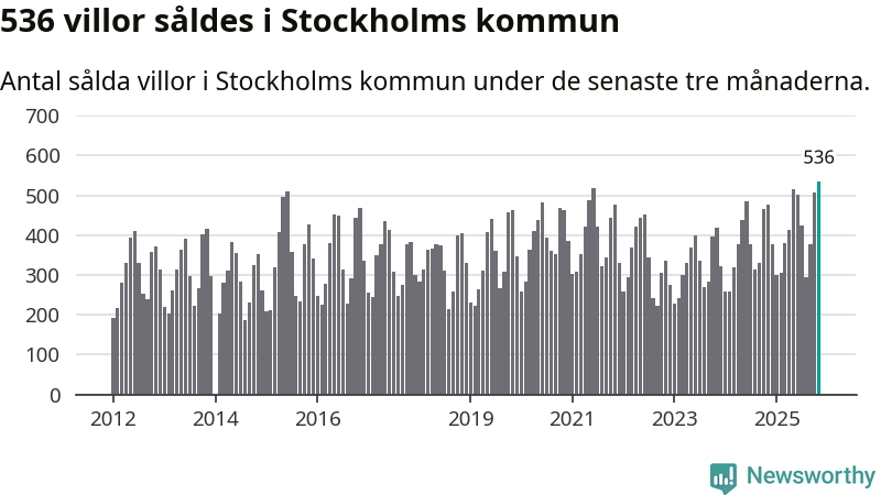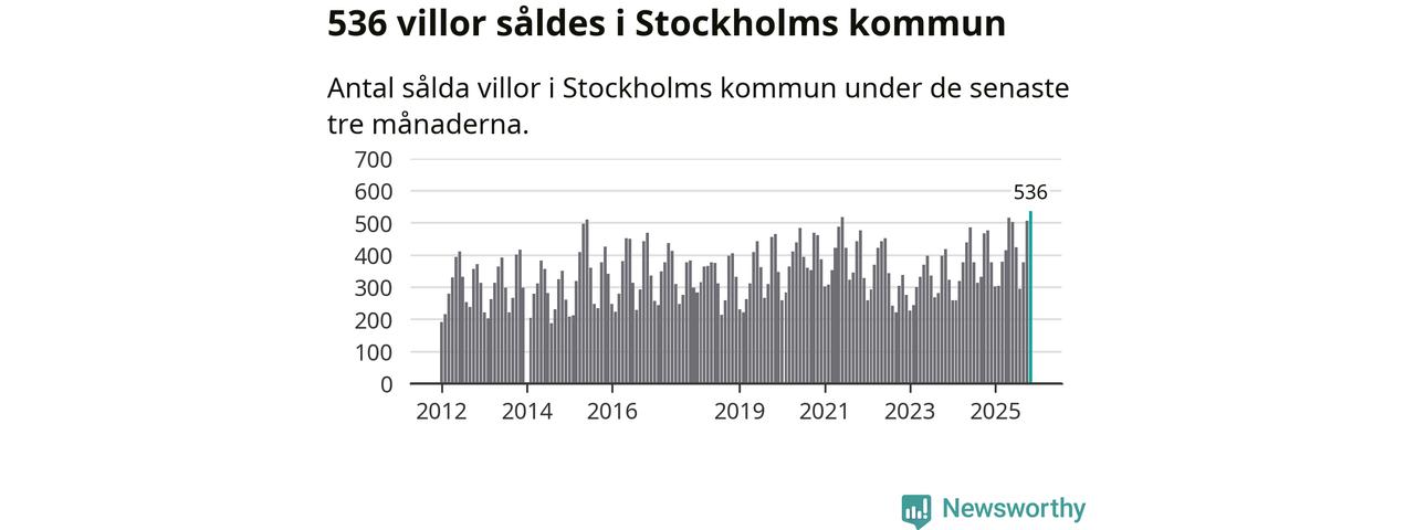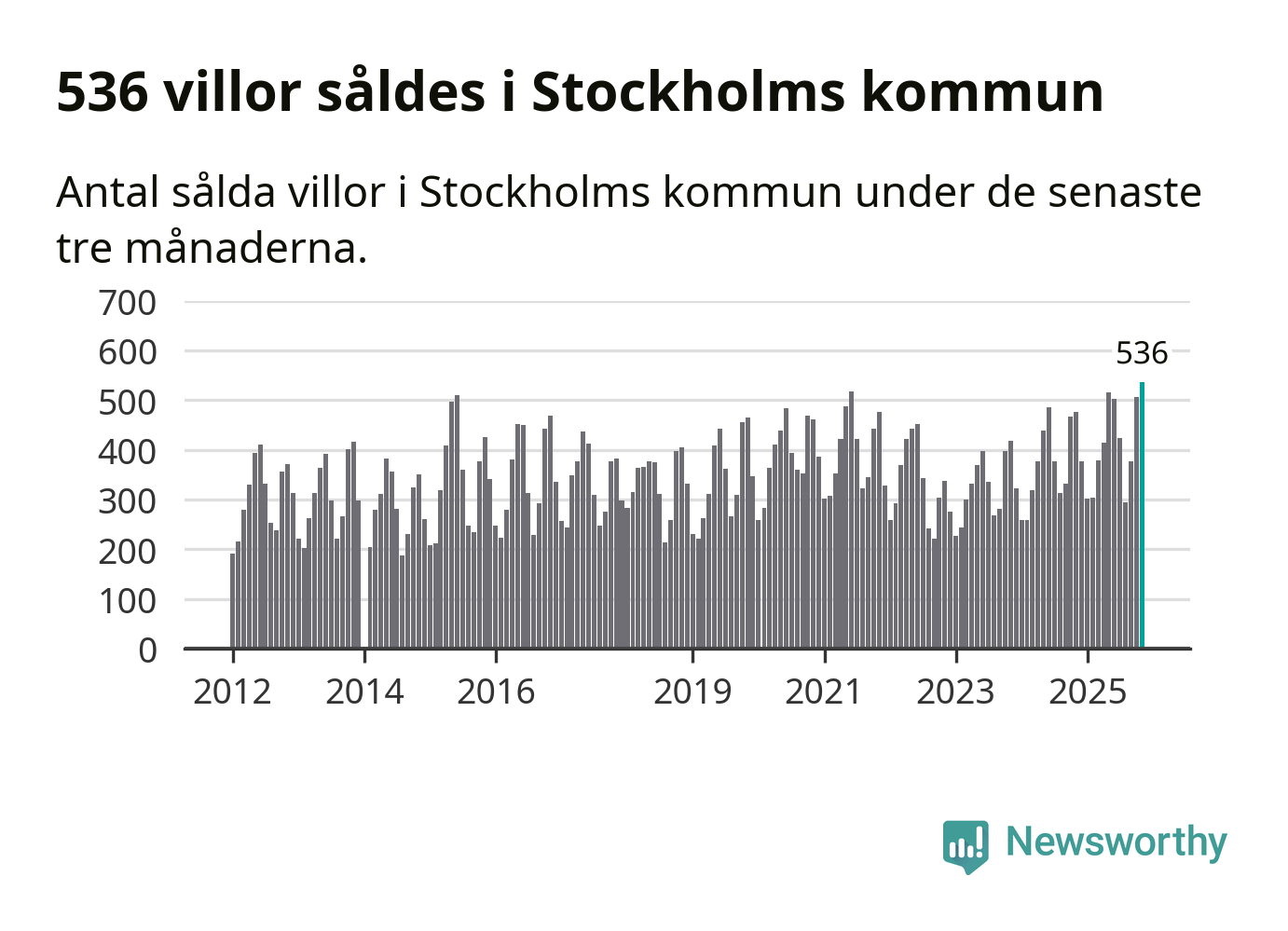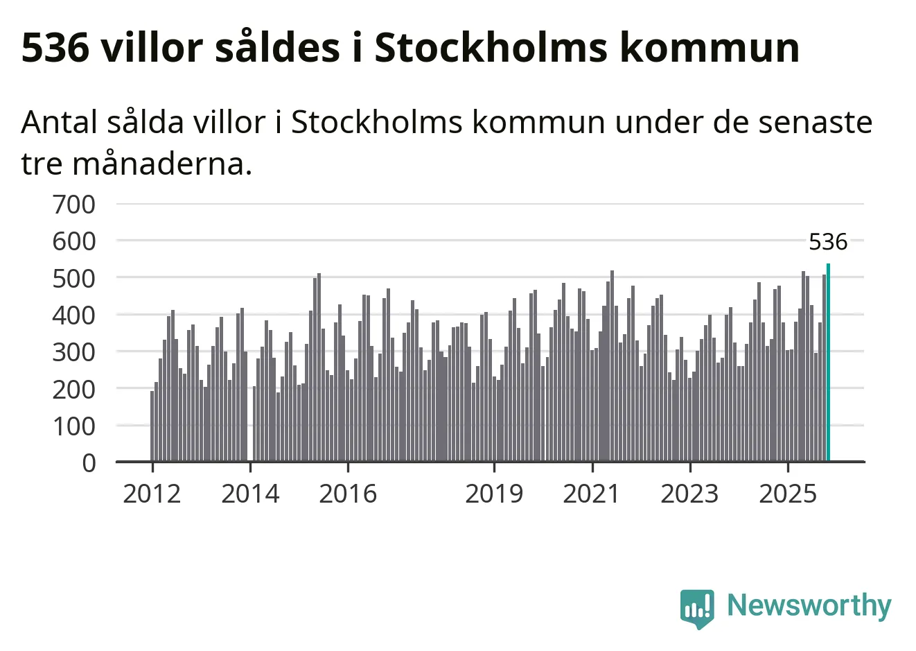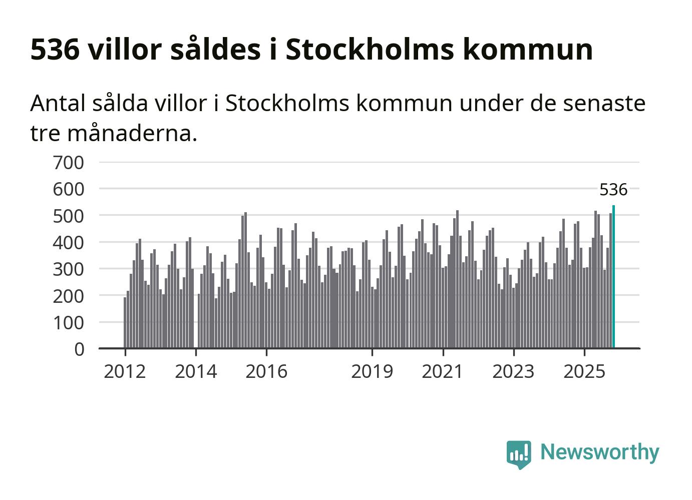 Mellan september och november såldes 536 villor i Stockholms kommun. Det är fler än någon tremånadersperiod sedan 2012.