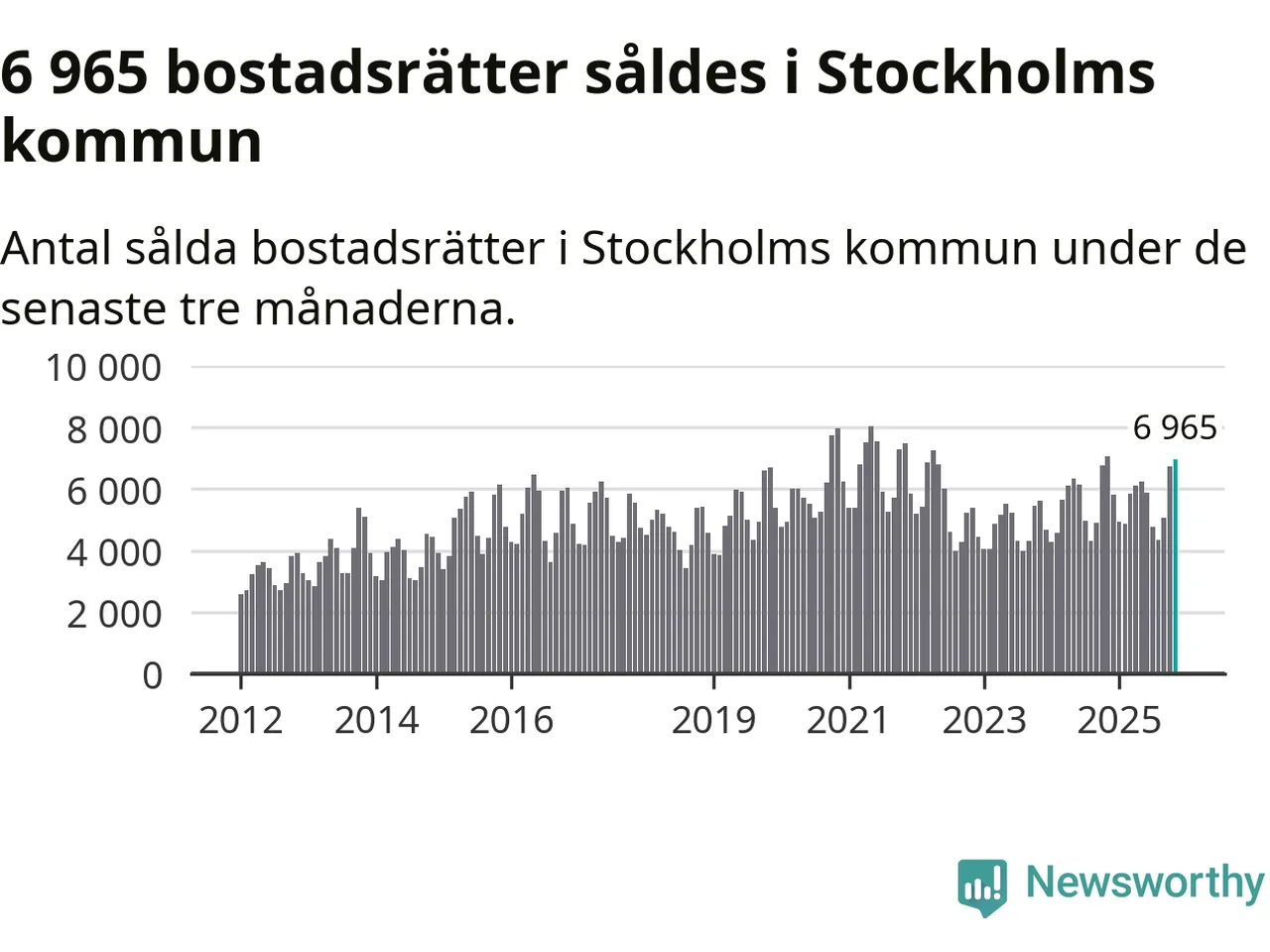 | Stockholm | +5 % ▲ | 6 965 | 5,3 miljoner |