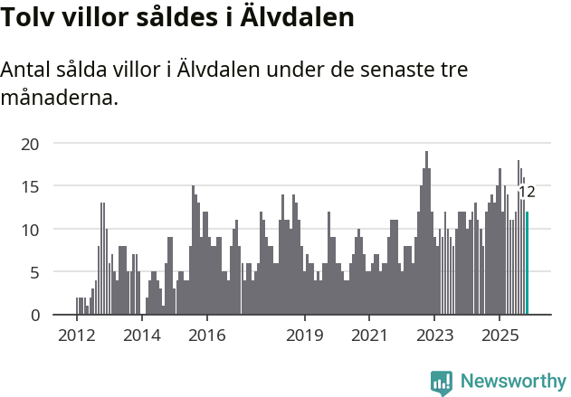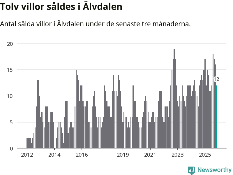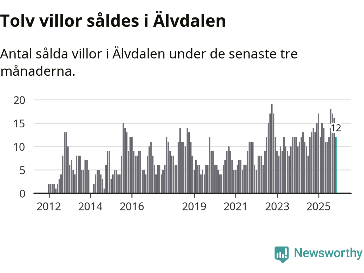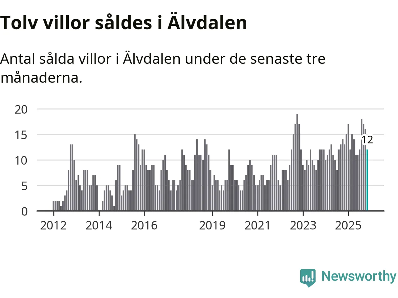 Mellan september och november gjordes sammanlagt tolv affärer med villor i Älvdalens kommun. Det kan jämföras med 13 vid motsvarande tid i fjol.