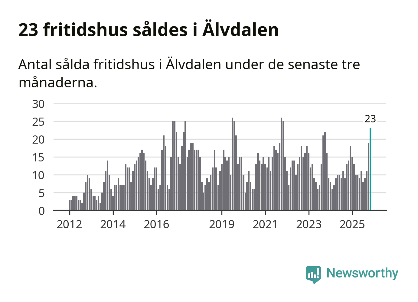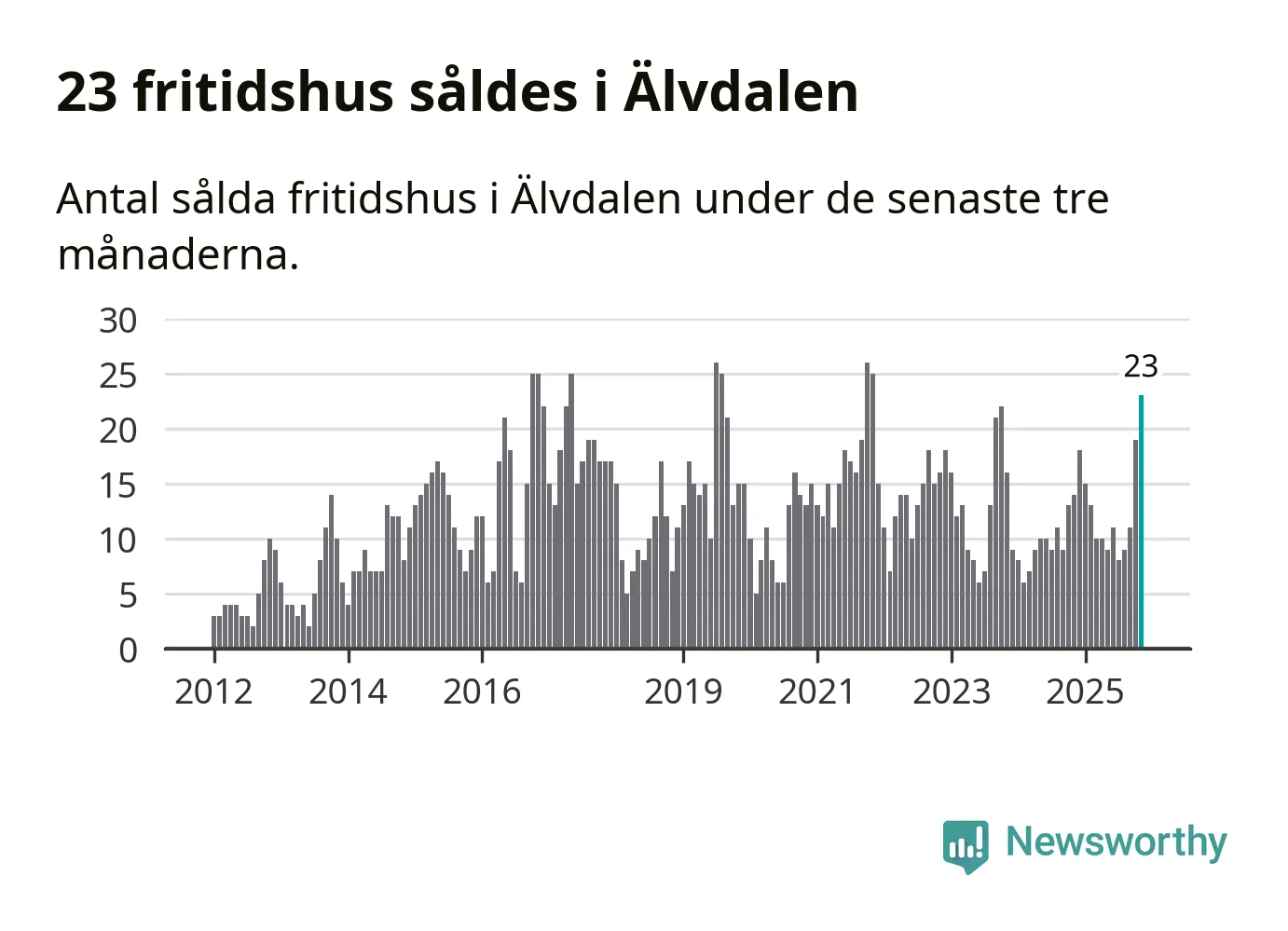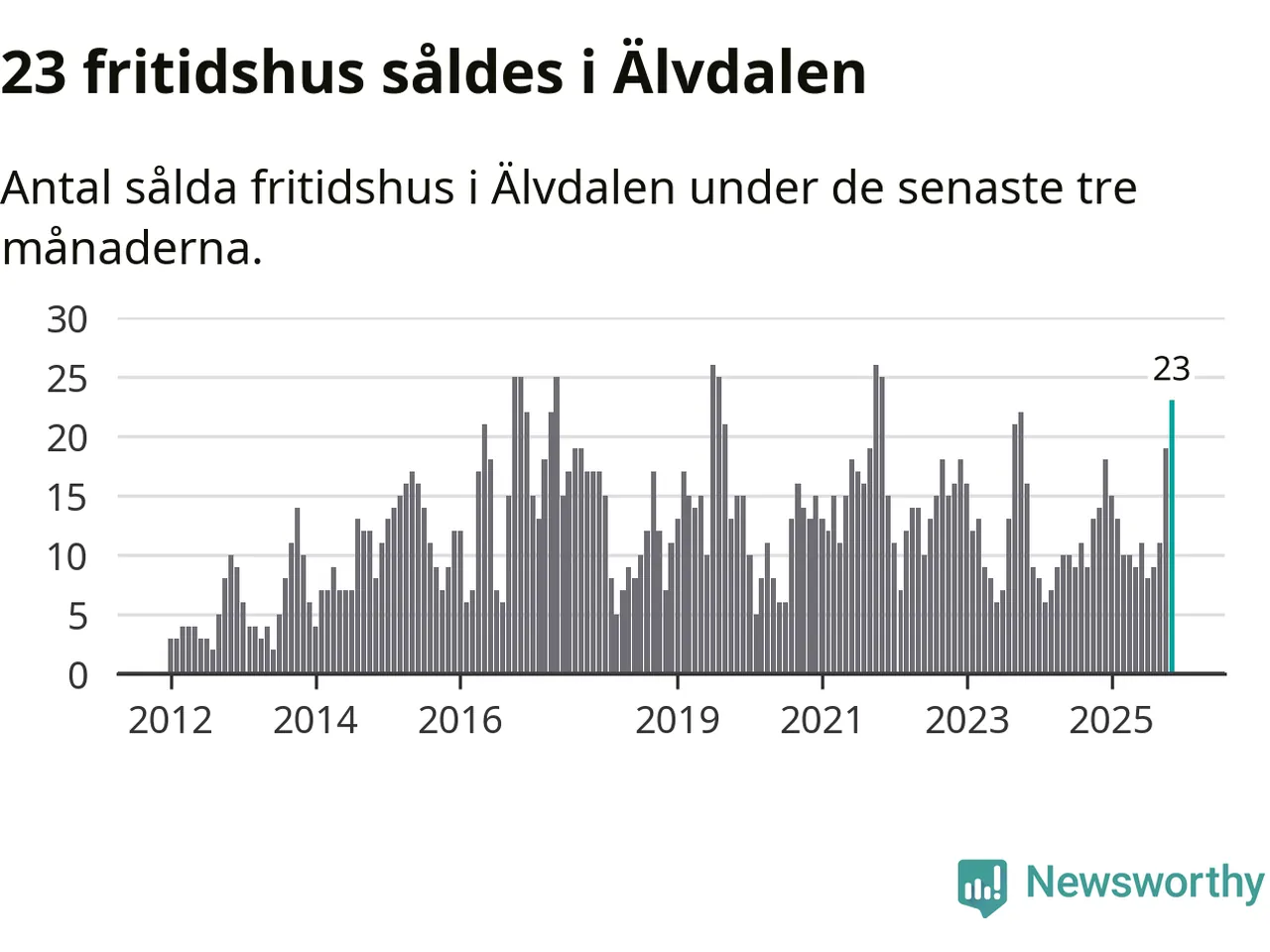 Mellan september och november såldes 23 fritidshus i Älvdalens kommun. Det är fler än någon tremånadersperiod sedan 2021.