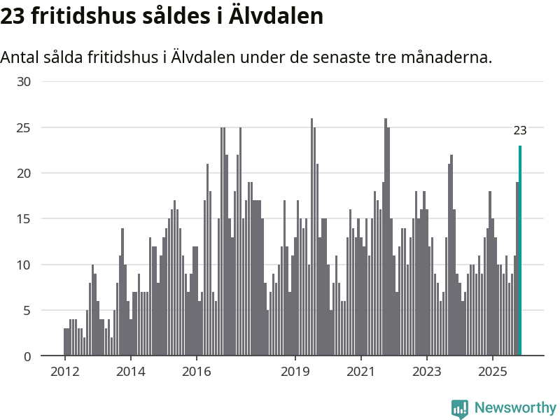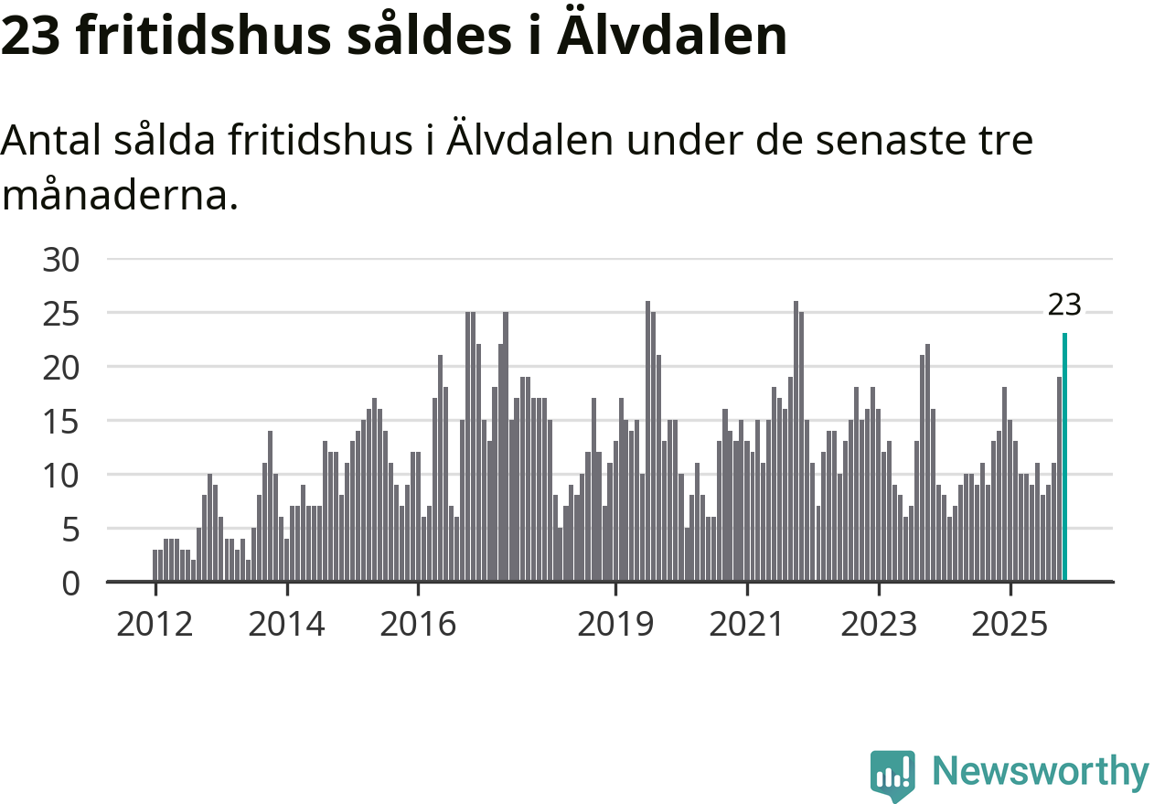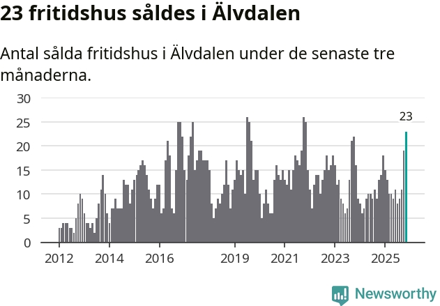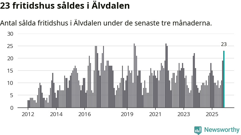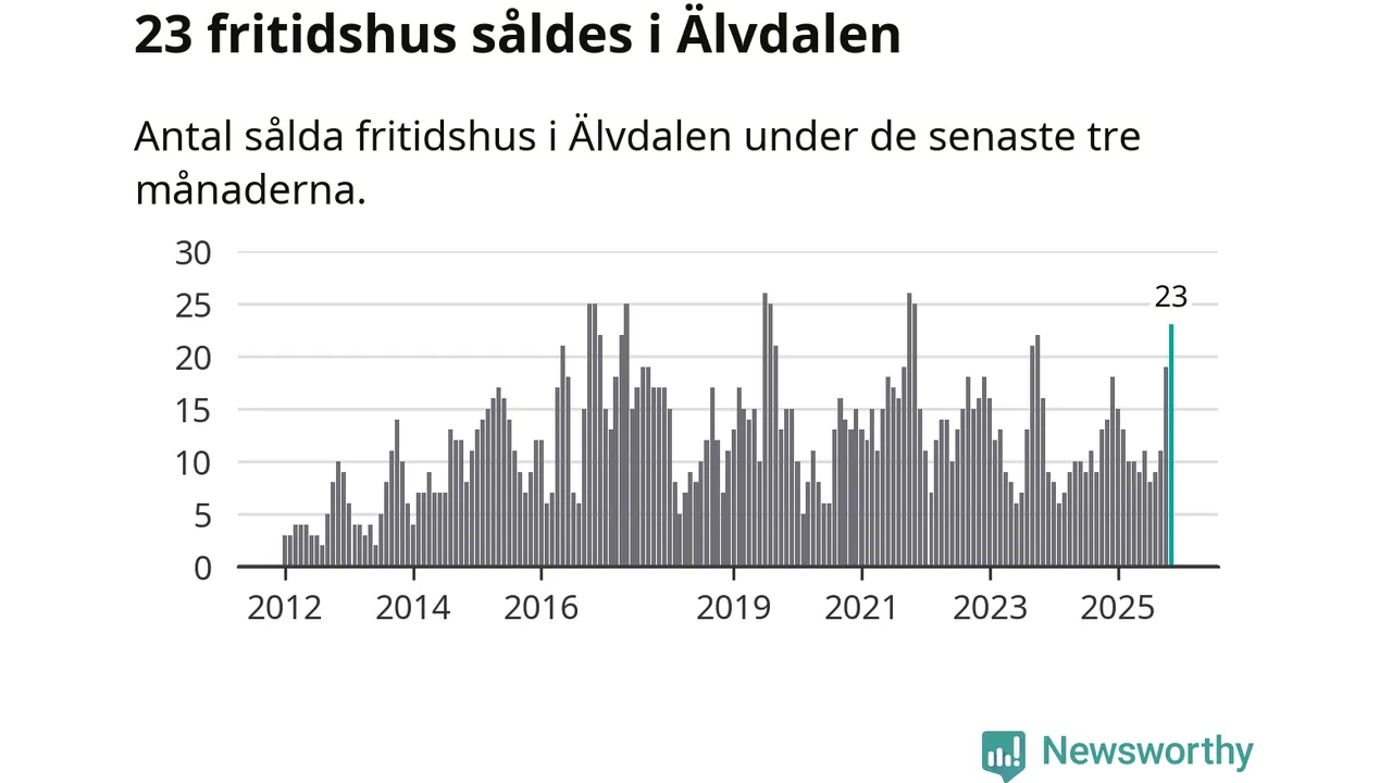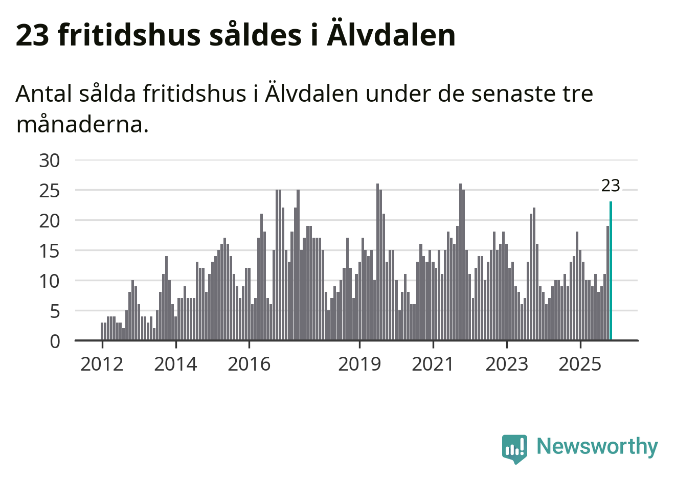 Mellan september och november såldes 23 fritidshus i Älvdalens kommun. Det är fler än någon tremånadersperiod sedan 2021.