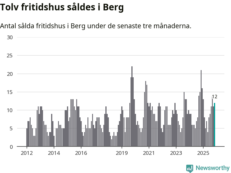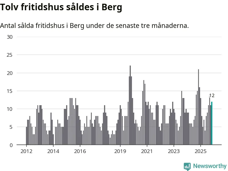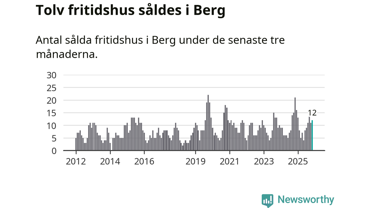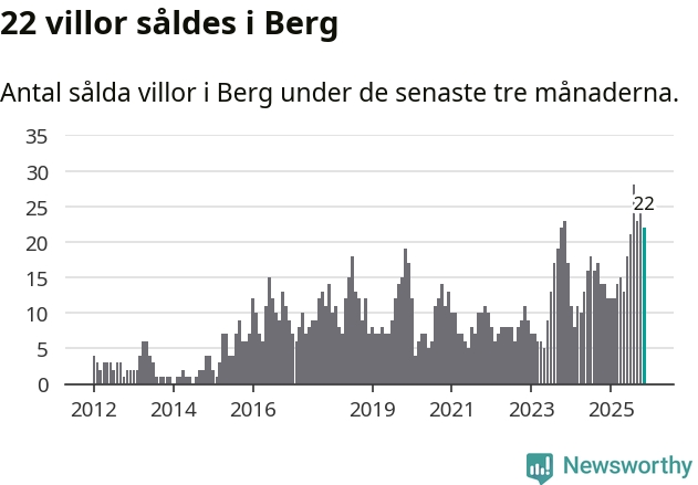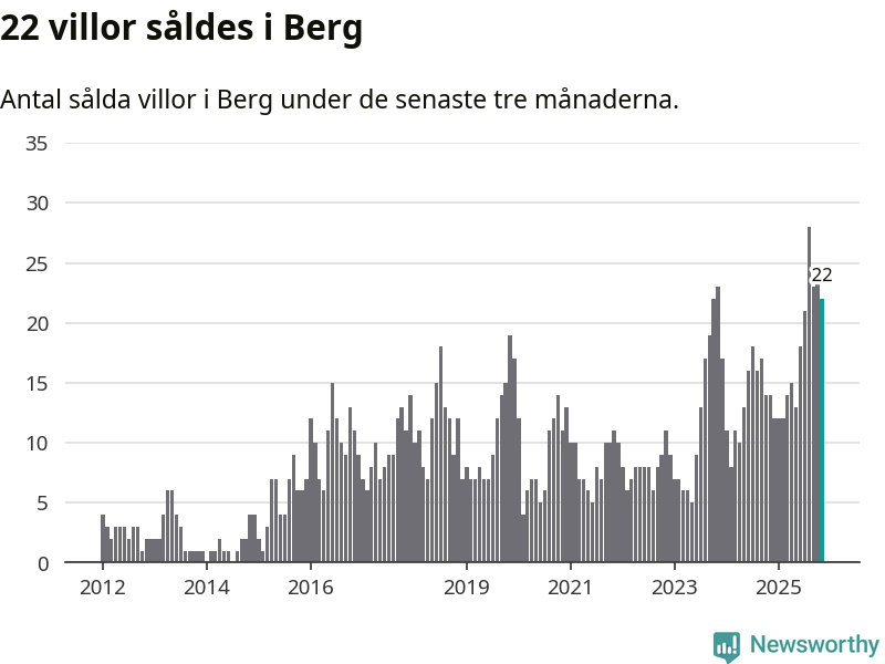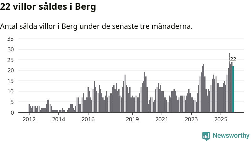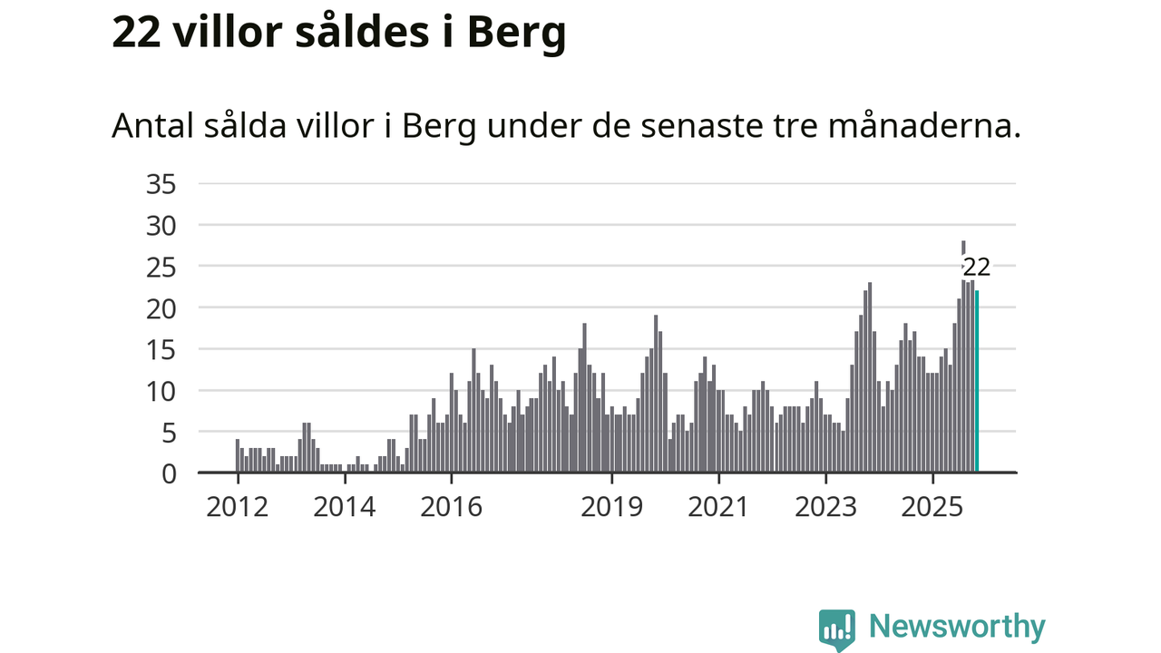Mellan september och november gjordes sammanlagt 22 affärer med villor i Bergs kommun. Det kan jämföras med 14 vid motsvarande tid i fjol.