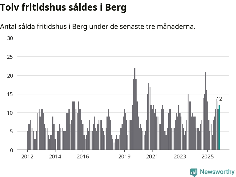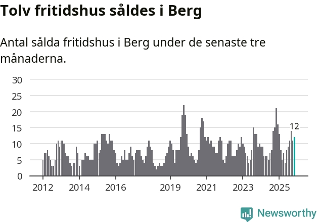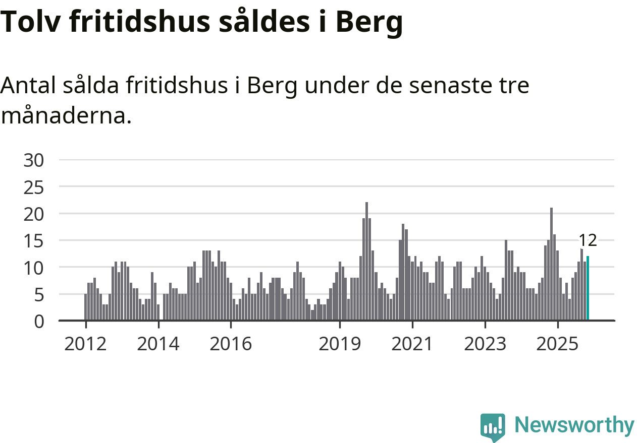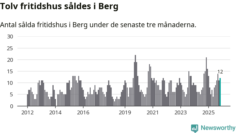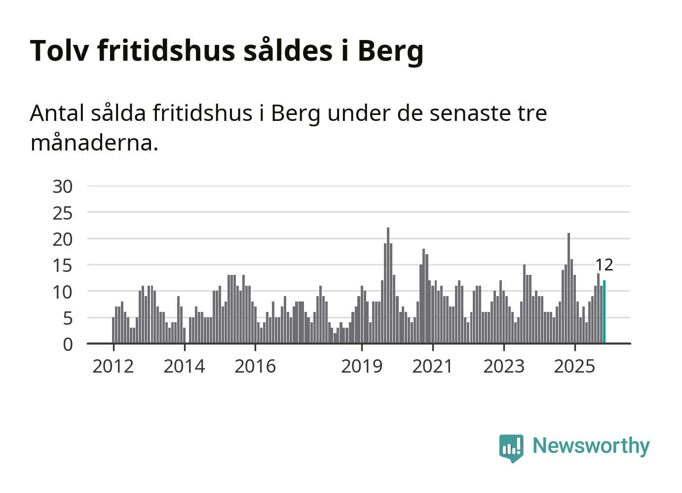 Sammanlagt såldes tolv fritidshus i Bergs kommun mellan september och november till ett genomsnittligt pris på 3,3 miljoner kronor. I fjol gjordes 21 affärer vid den här tiden på året.