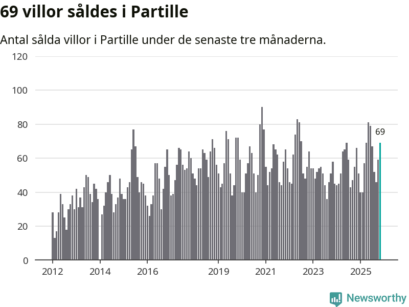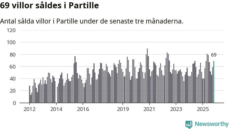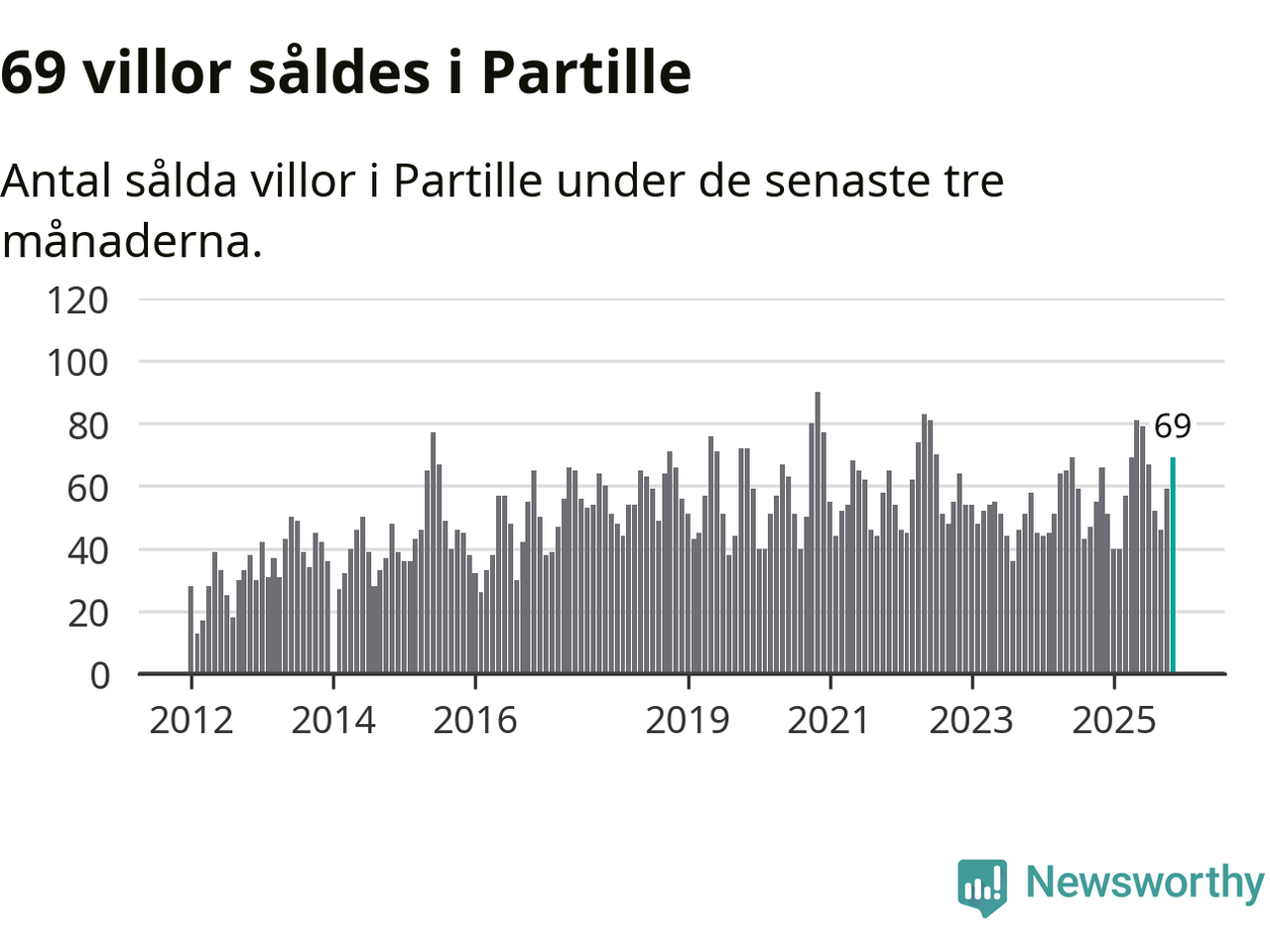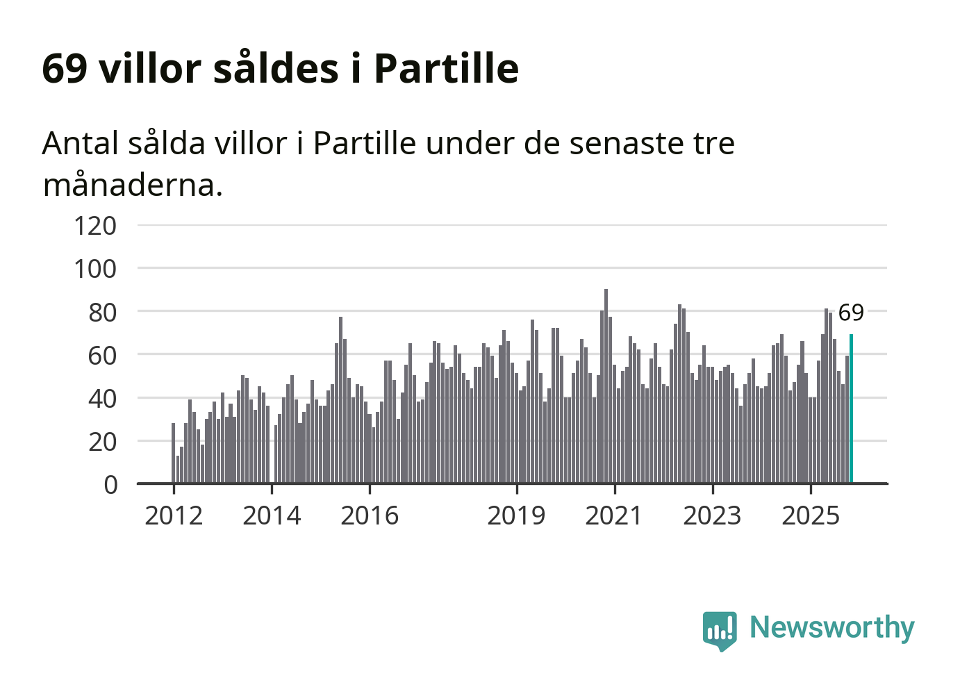 Sammanlagt såldes 69 villor i Partille kommun mellan september och november till ett genomsnittligt pris på 6,2 miljoner kronor. I fjol gjordes 66 affärer vid den här tiden på året.