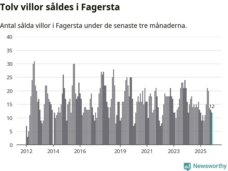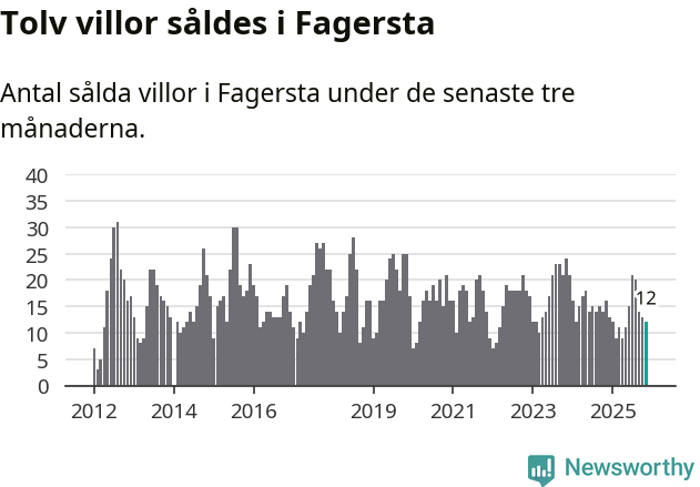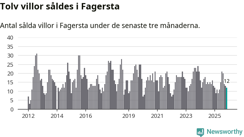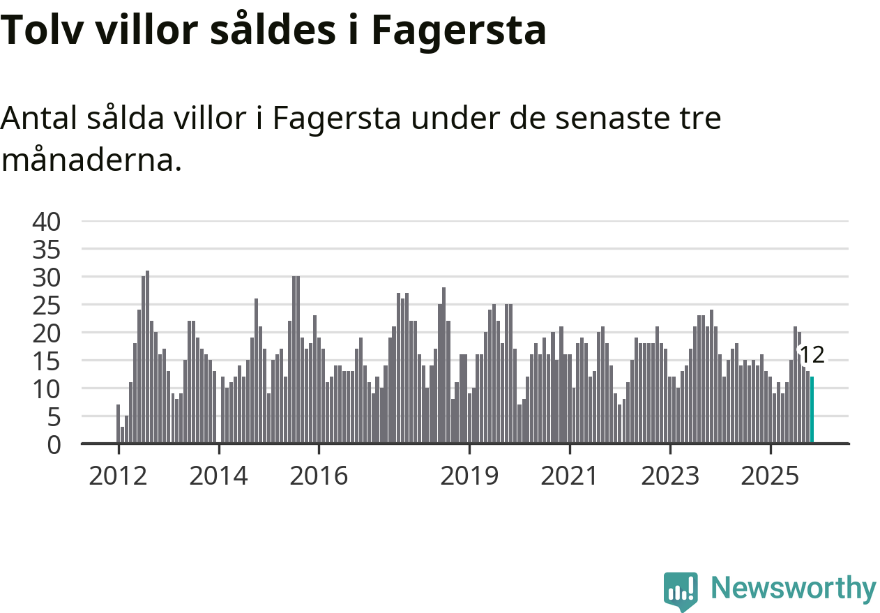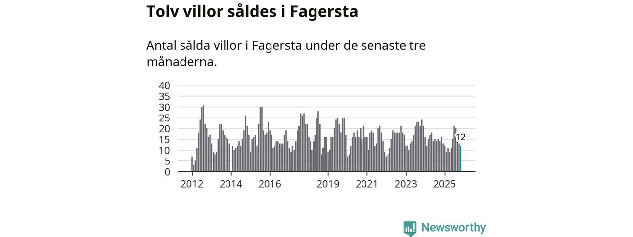 Mellan september och november gjordes sammanlagt tolv affärer med villor i Fagersta kommun. Det kan jämföras med 16 vid motsvarande tid i fjol.