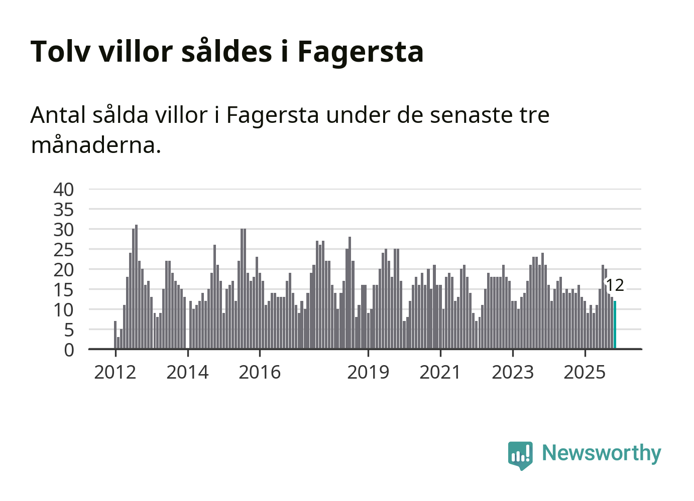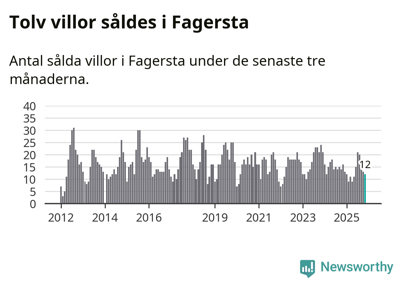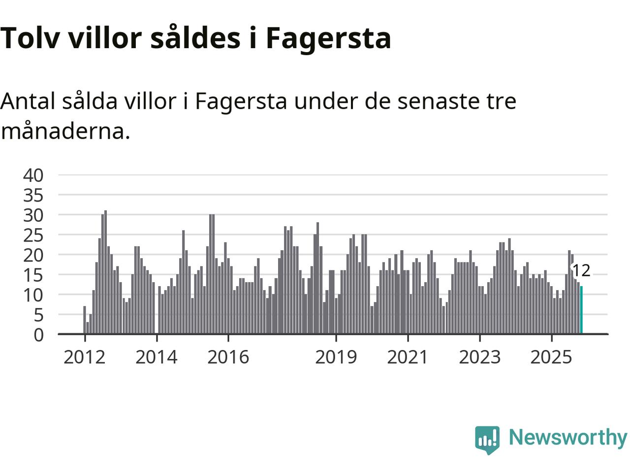 Mellan september och november gjordes sammanlagt tolv affärer med villor i Fagersta kommun. Det kan jämföras med 16 vid motsvarande tid i fjol.