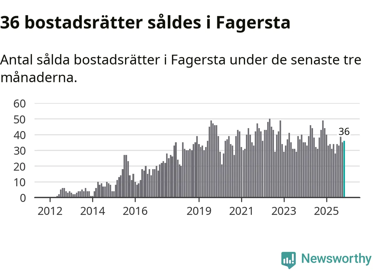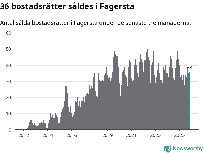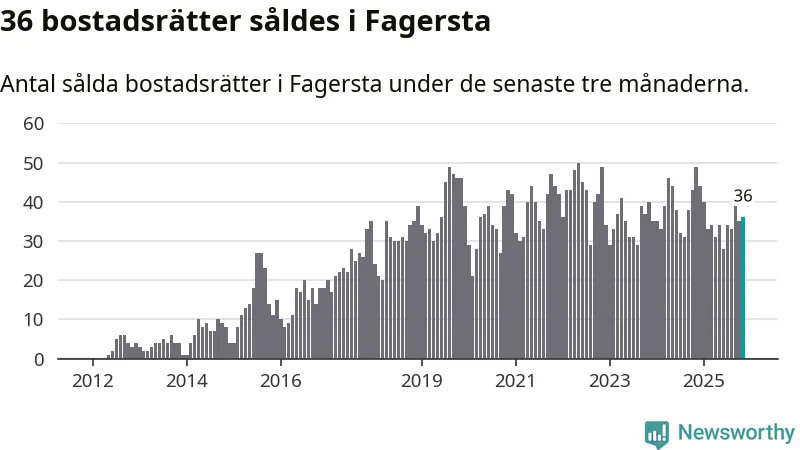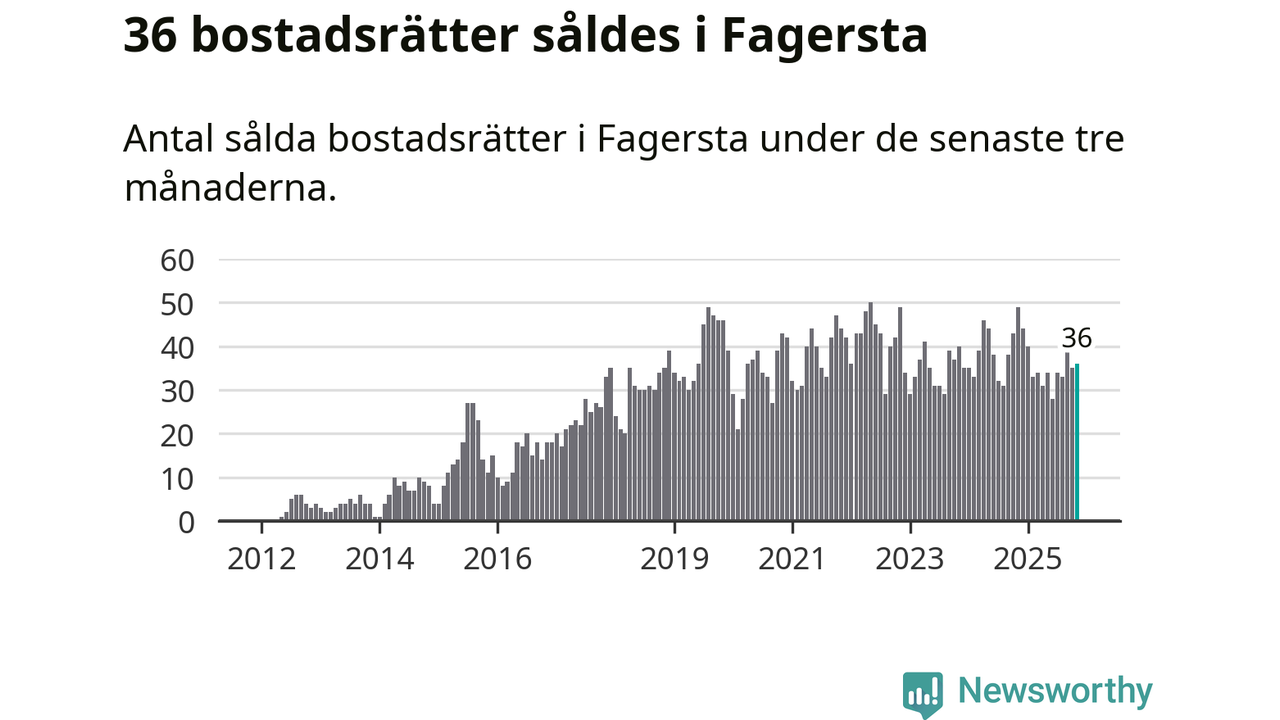 Sammanlagt såldes 36 bostadsrätter i Fagersta kommun mellan september och november till ett genomsnittligt pris på 0,2 miljoner kronor. I fjol gjordes 49 affärer vid den här tiden på året.