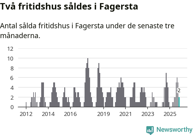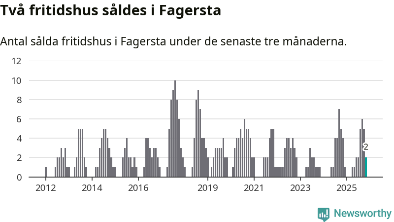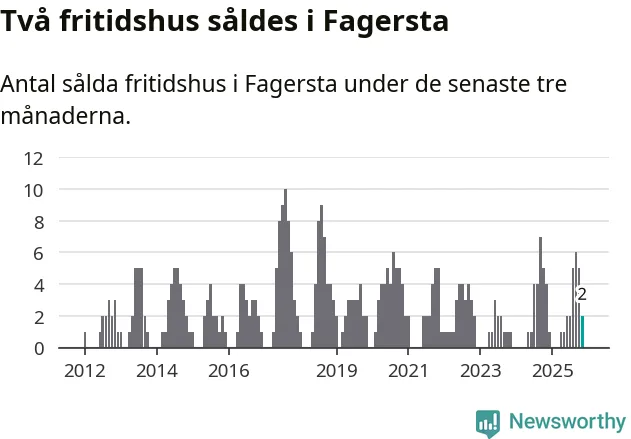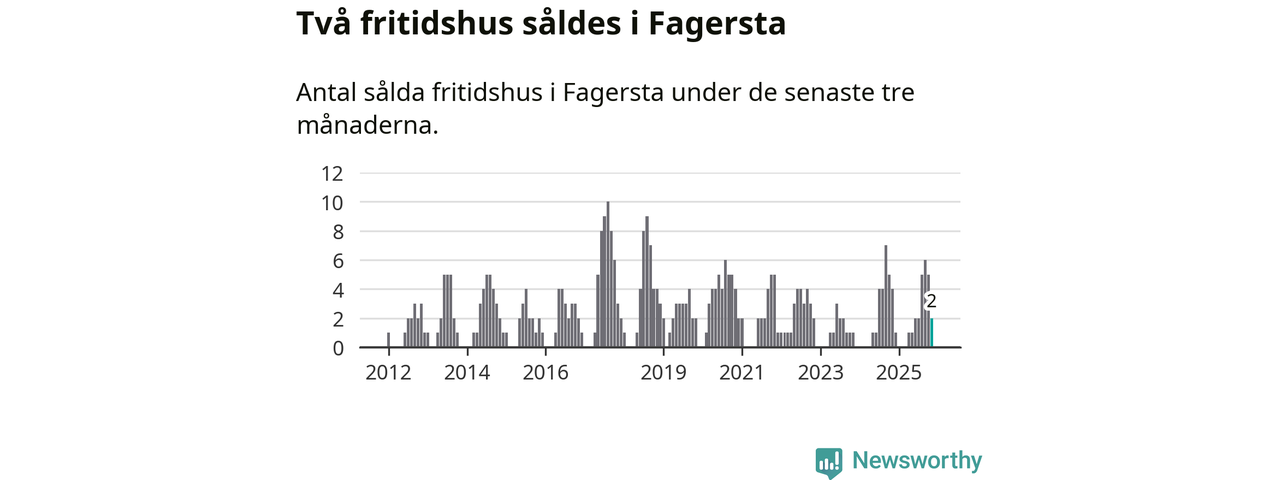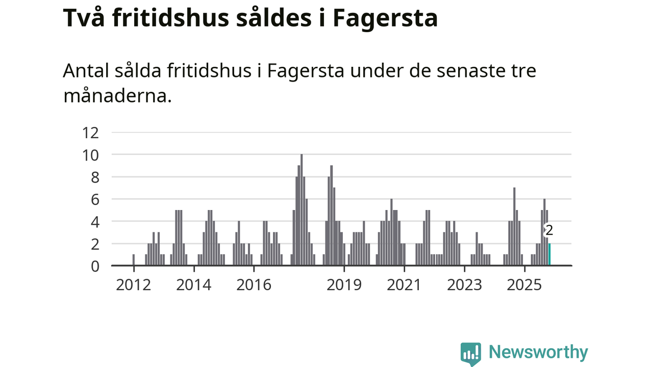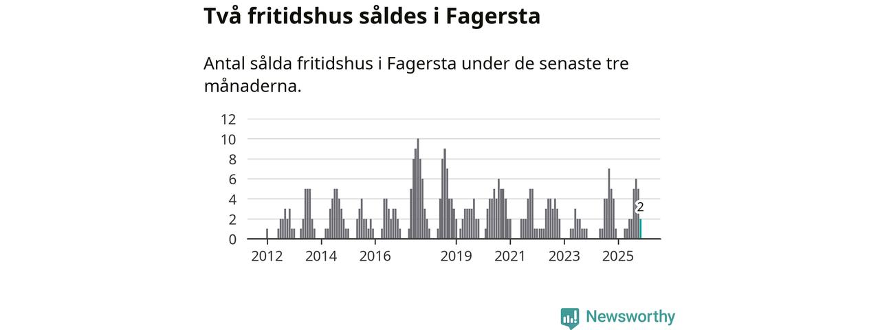 Mellan september och november gjordes sammanlagt två affärer med fritidshus i Fagersta kommun. Det kan jämföras med fyra vid motsvarande tid i fjol.