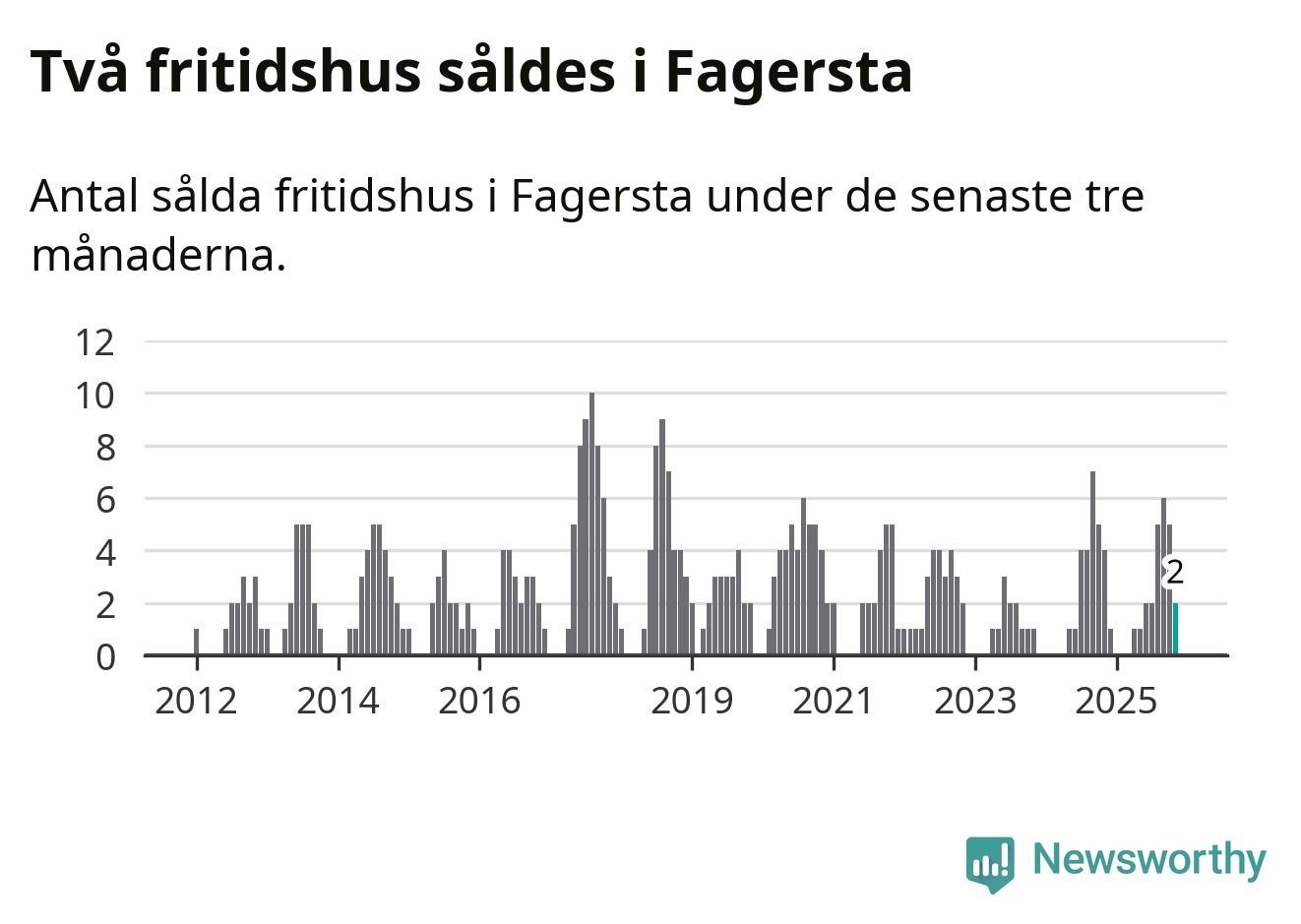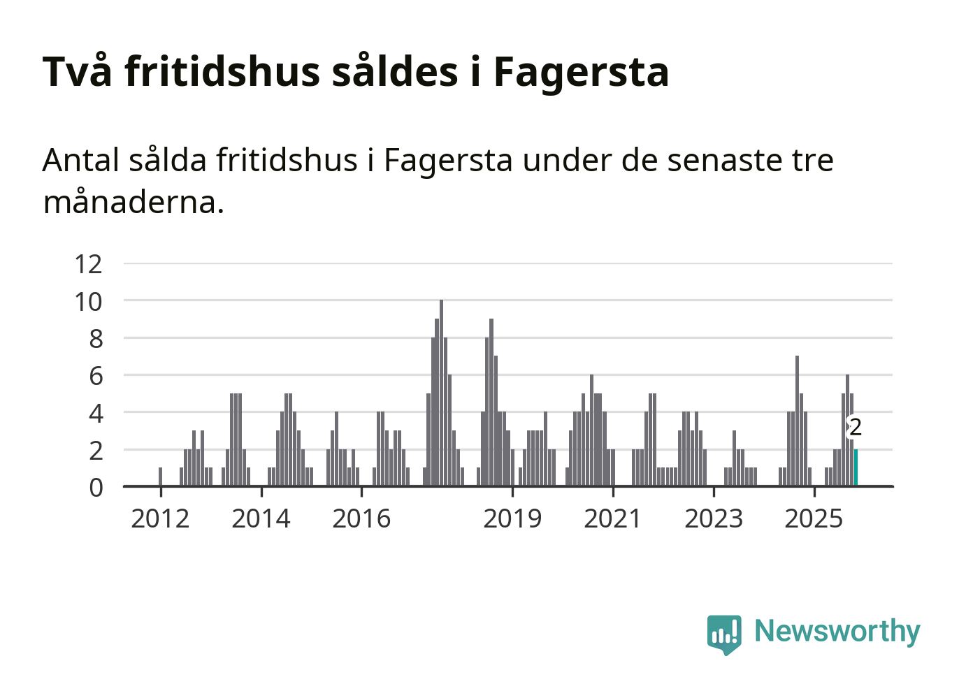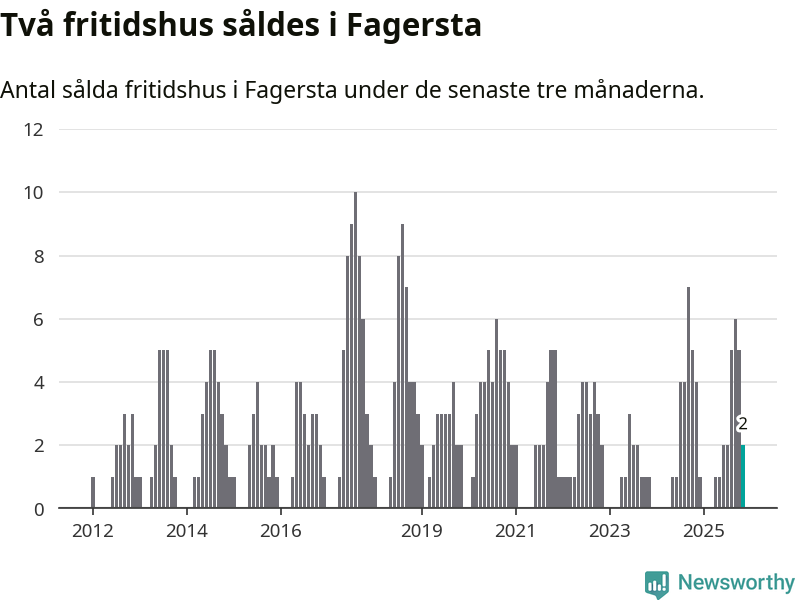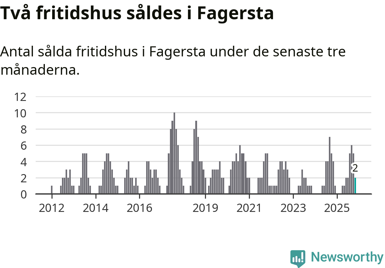 Mellan september och november gjordes sammanlagt två affärer med fritidshus i Fagersta kommun. Det kan jämföras med fyra vid motsvarande tid i fjol.