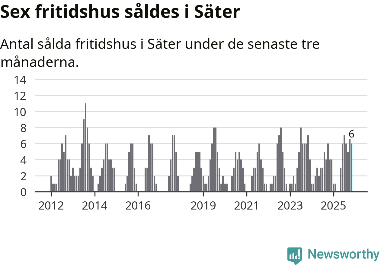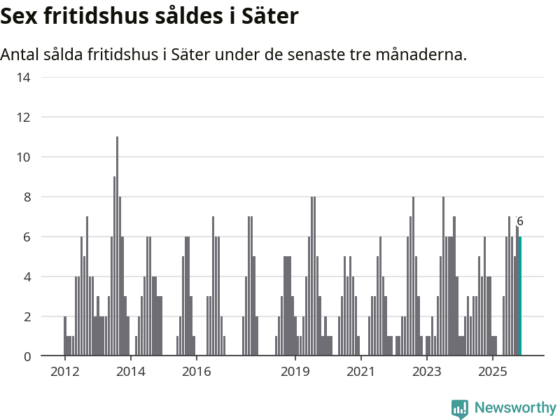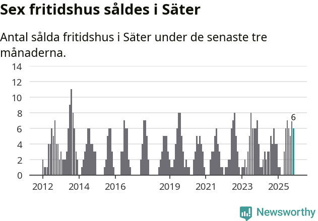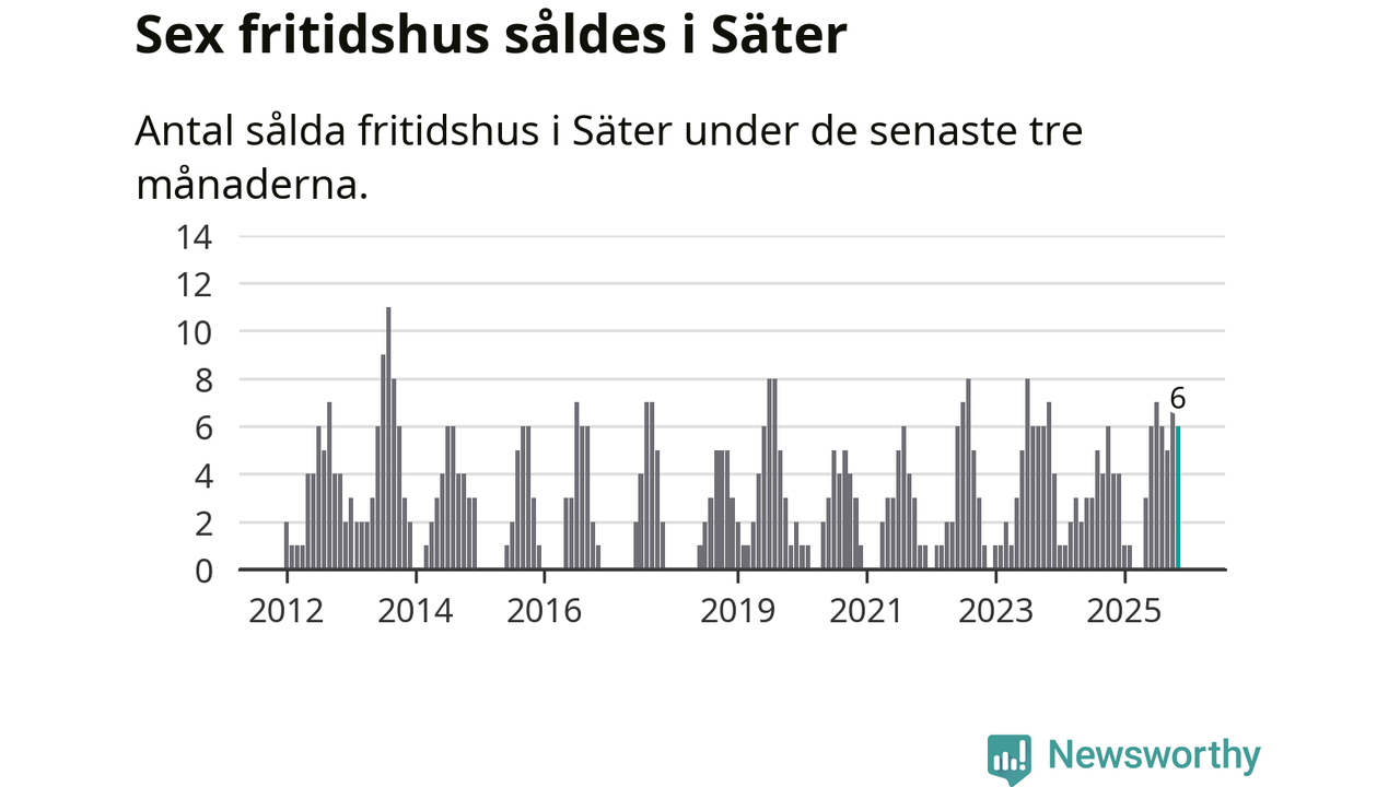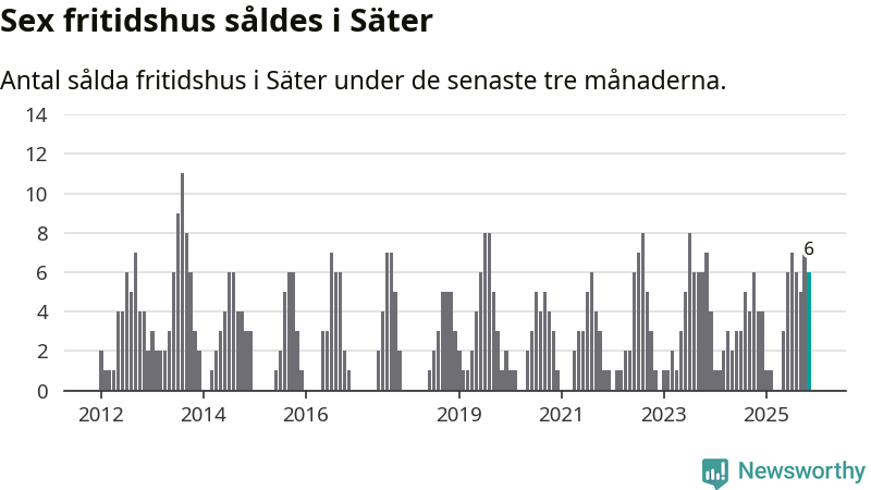 Mellan september och november gjordes sammanlagt sex affärer med fritidshus i Säters kommun. Det kan jämföras med fyra vid motsvarande tid i fjol.