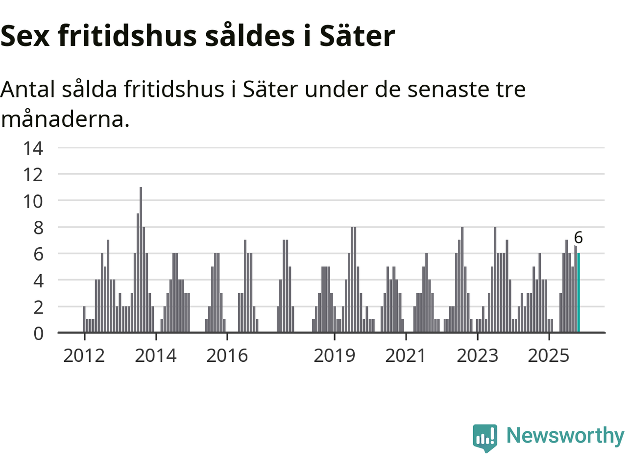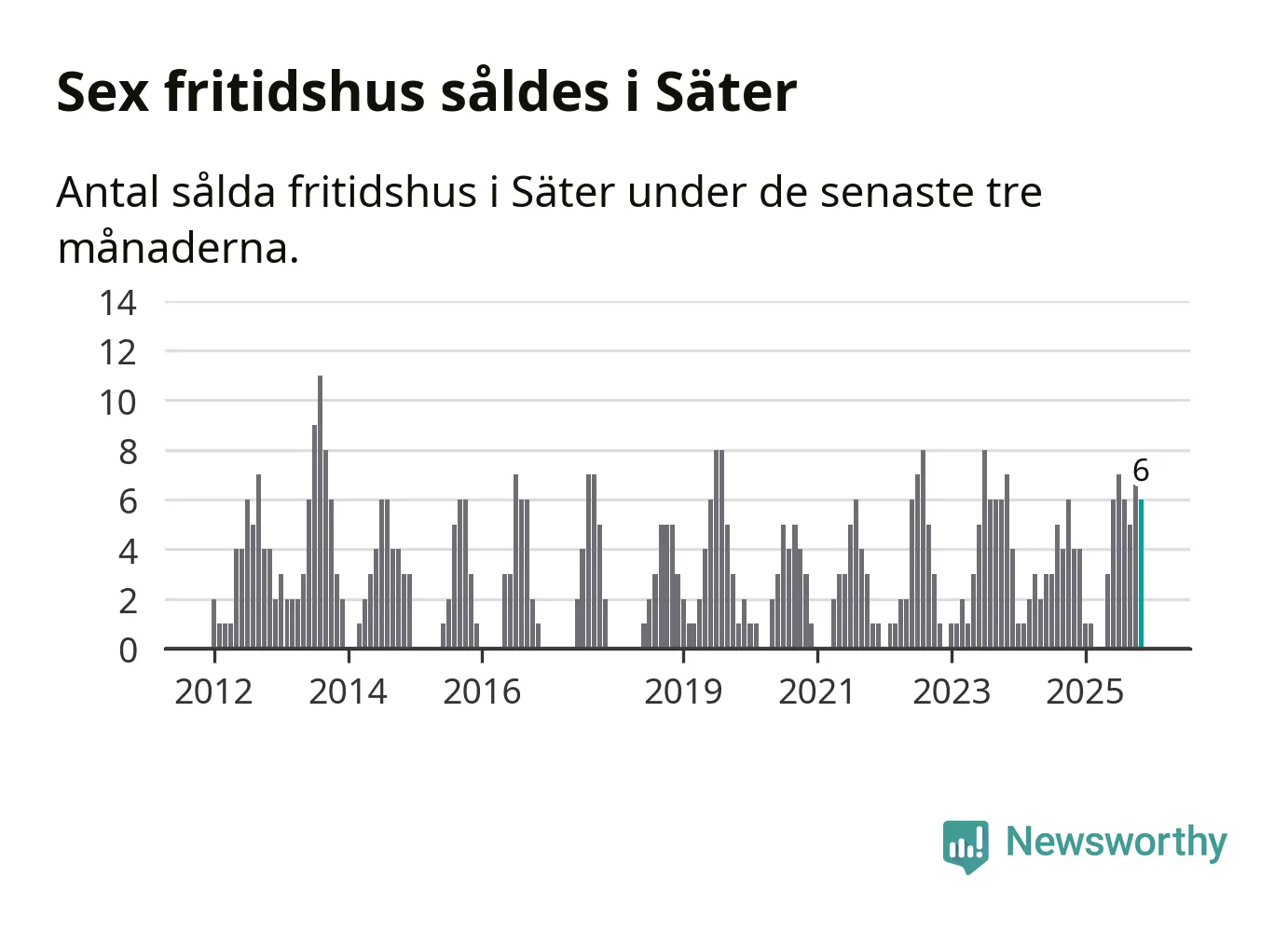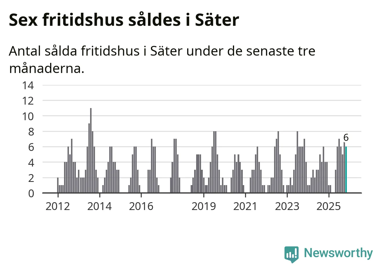 Mellan september och november gjordes sammanlagt sex affärer med fritidshus i Säters kommun. Det kan jämföras med fyra vid motsvarande tid i fjol.