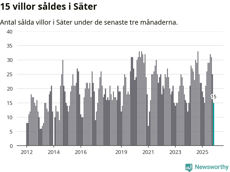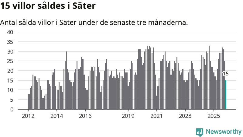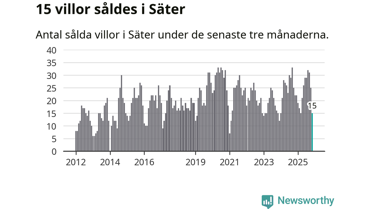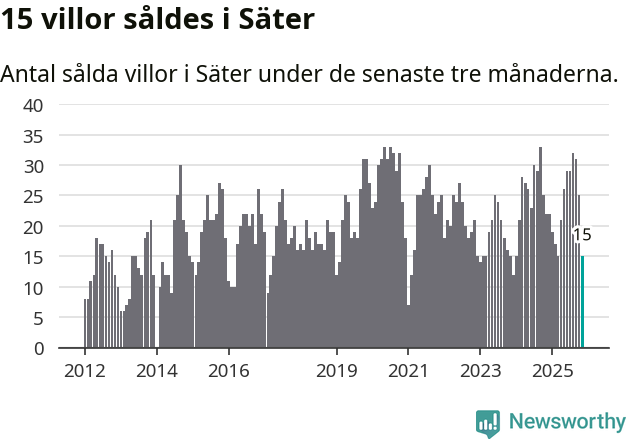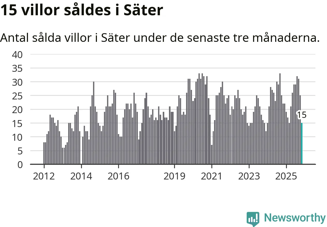 Mellan september och november gjordes sammanlagt 15 affärer med villor i Säters kommun. Det kan jämföras med 22 vid motsvarande tid i fjol.
