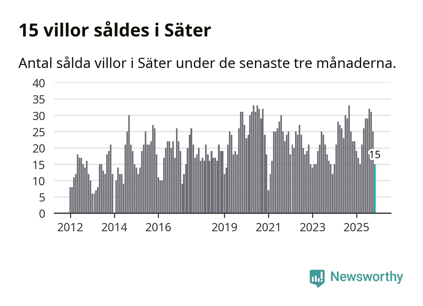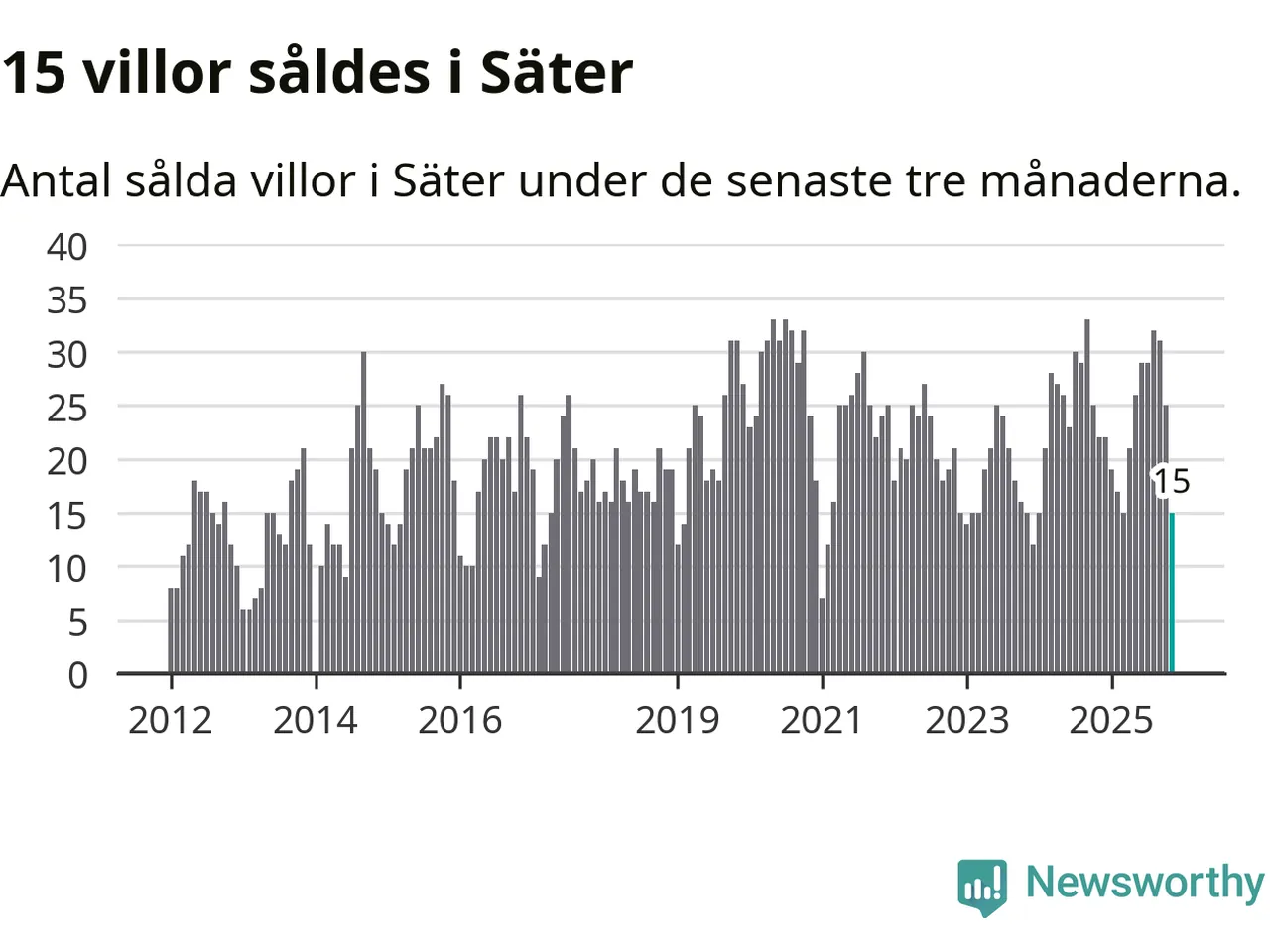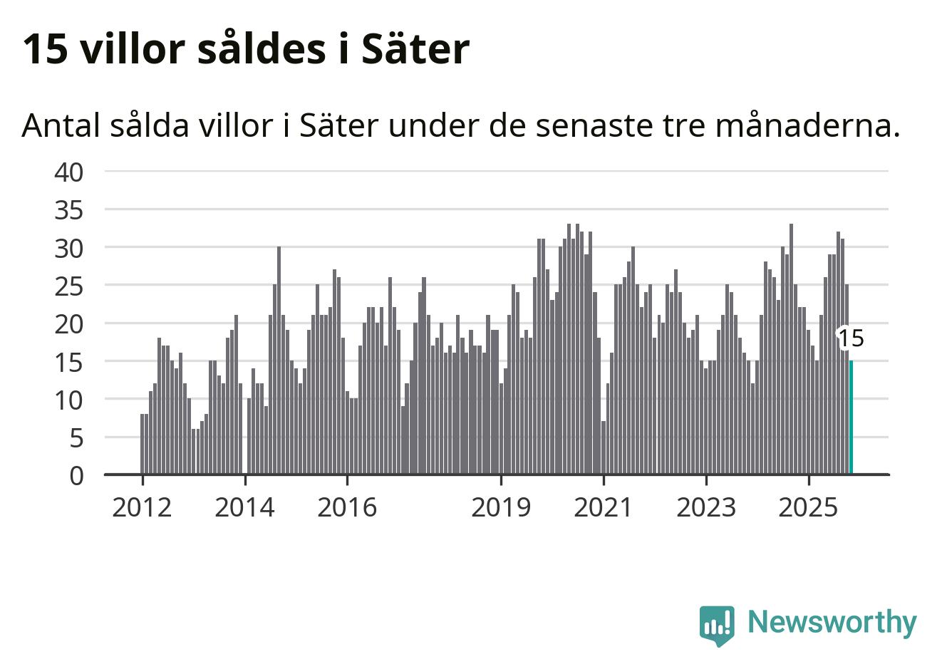 Mellan september och november gjordes sammanlagt 15 affärer med villor i Säters kommun. Det kan jämföras med 22 vid motsvarande tid i fjol.