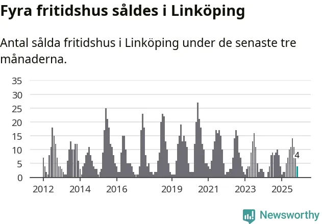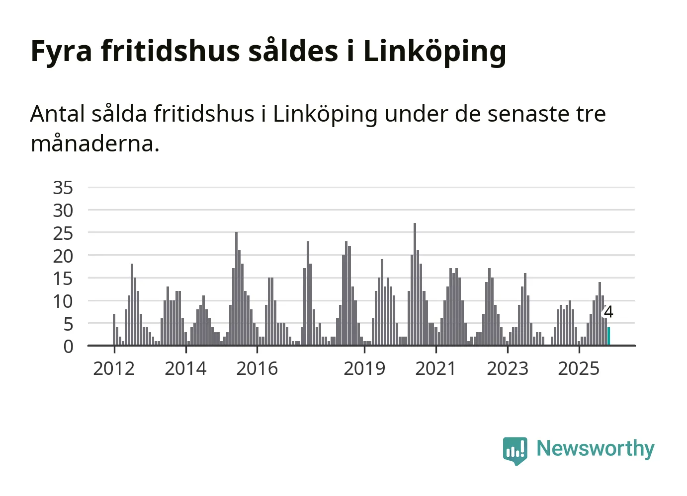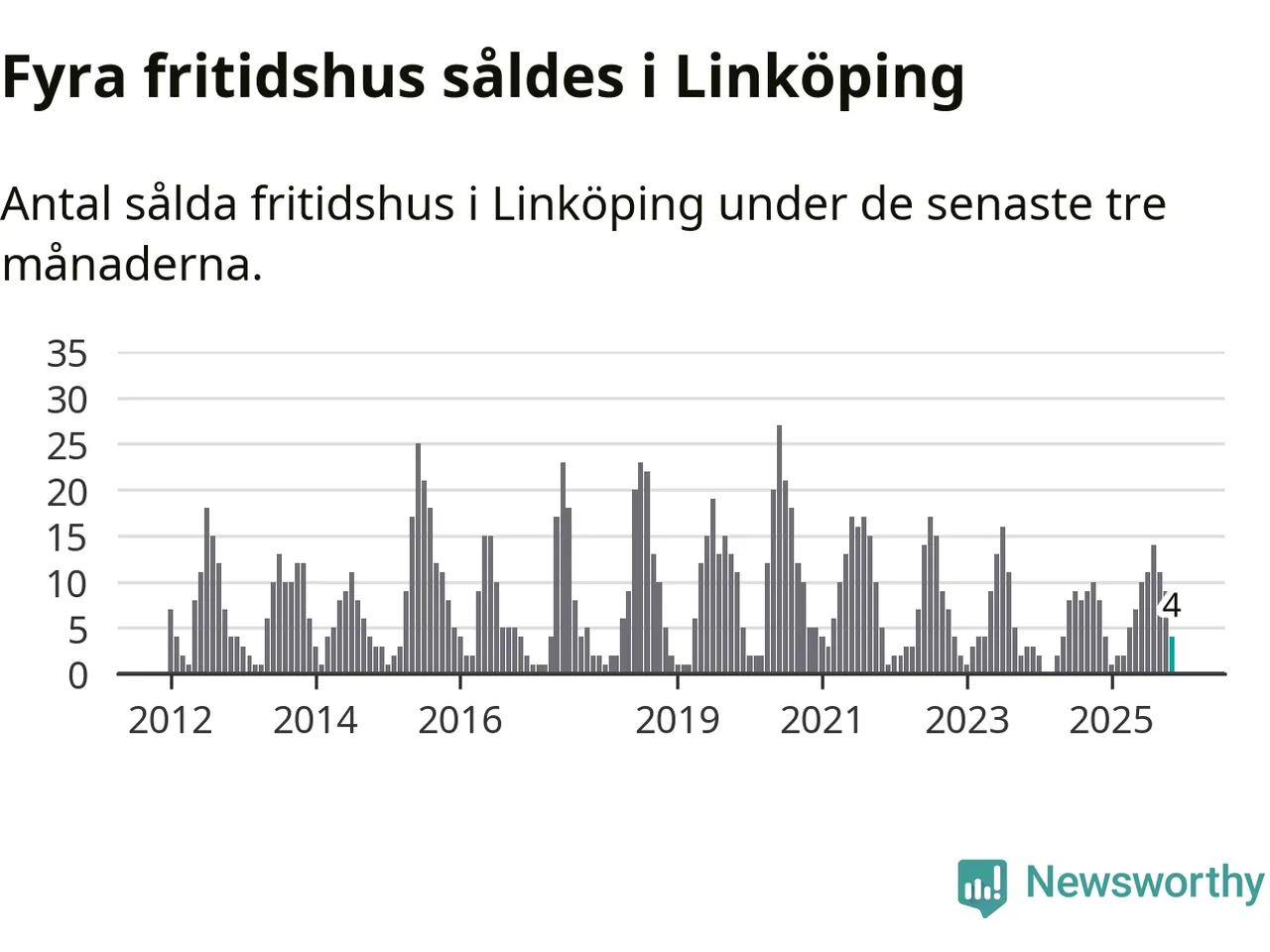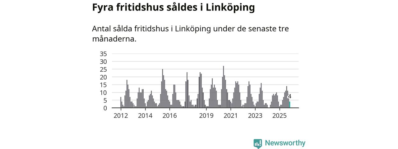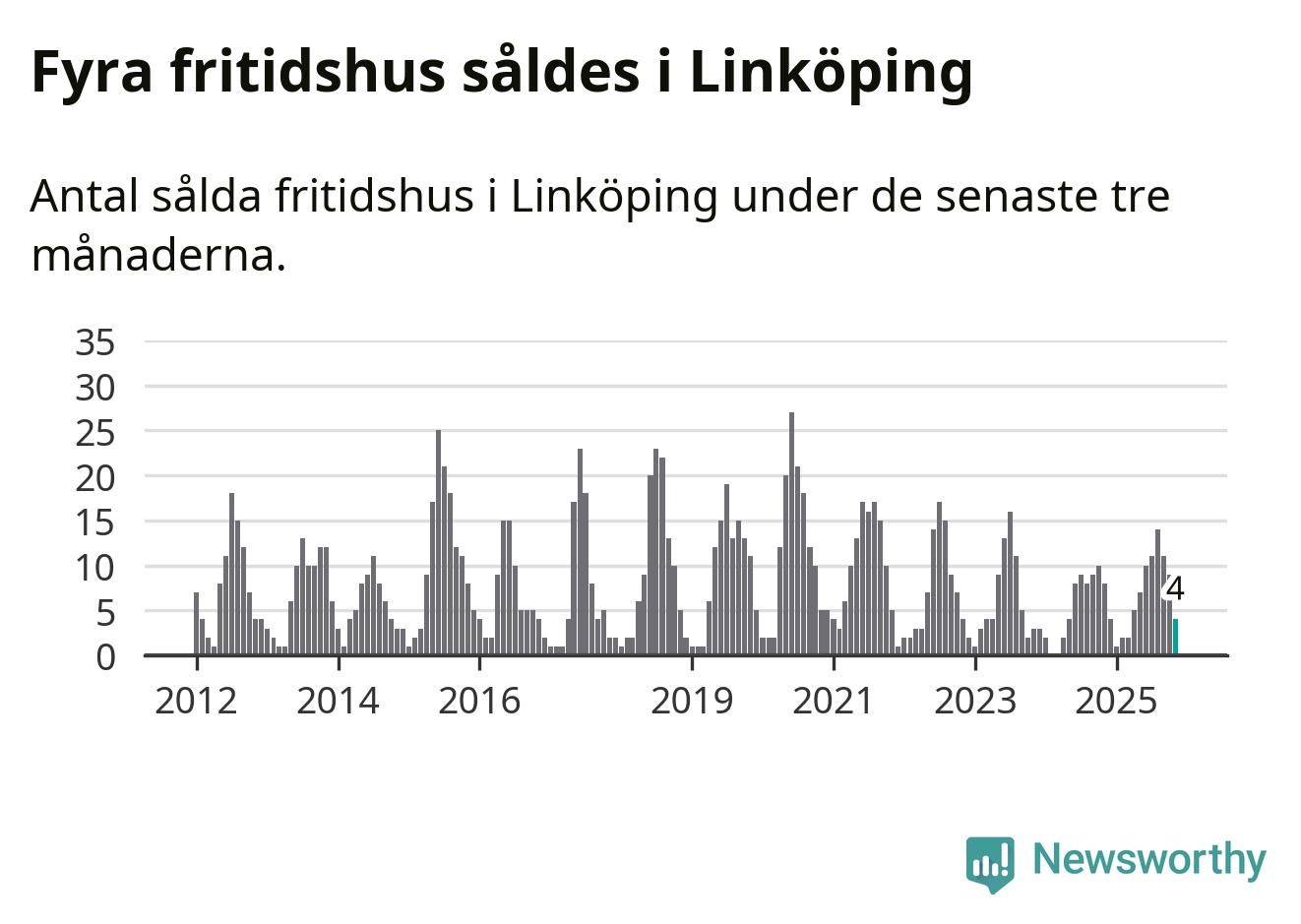 Mellan september och november gjordes sammanlagt fyra affärer med fritidshus i Linköpings kommun. Det kan jämföras med åtta vid motsvarande tid i fjol.