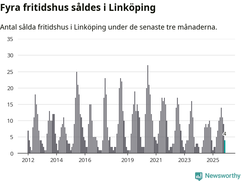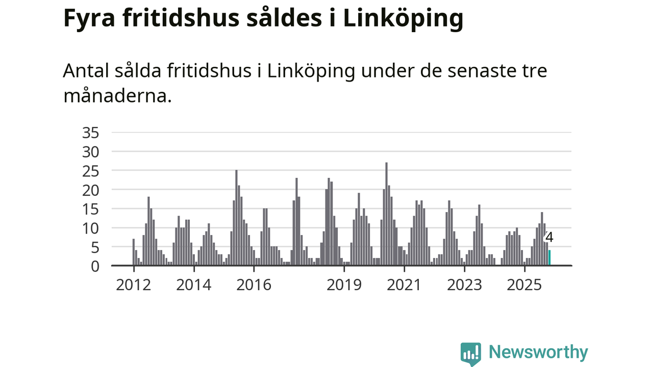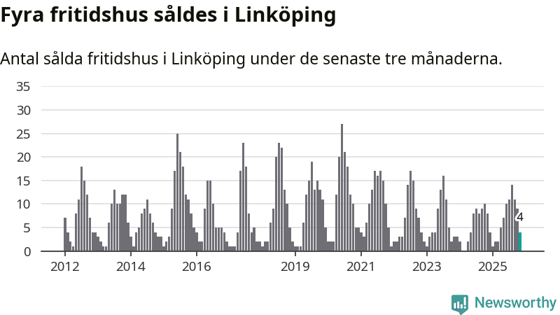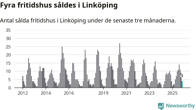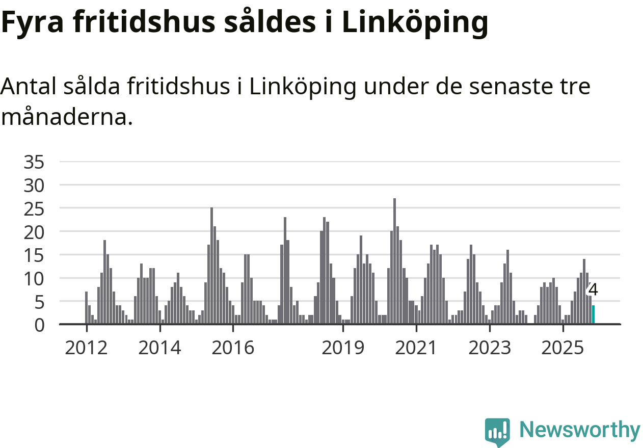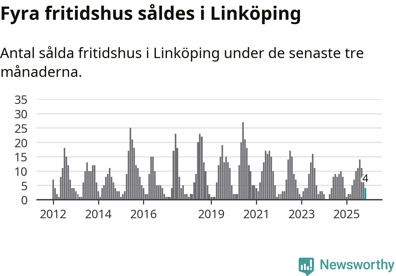 Mellan september och november gjordes sammanlagt fyra affärer med fritidshus i Linköpings kommun. Det kan jämföras med åtta vid motsvarande tid i fjol.