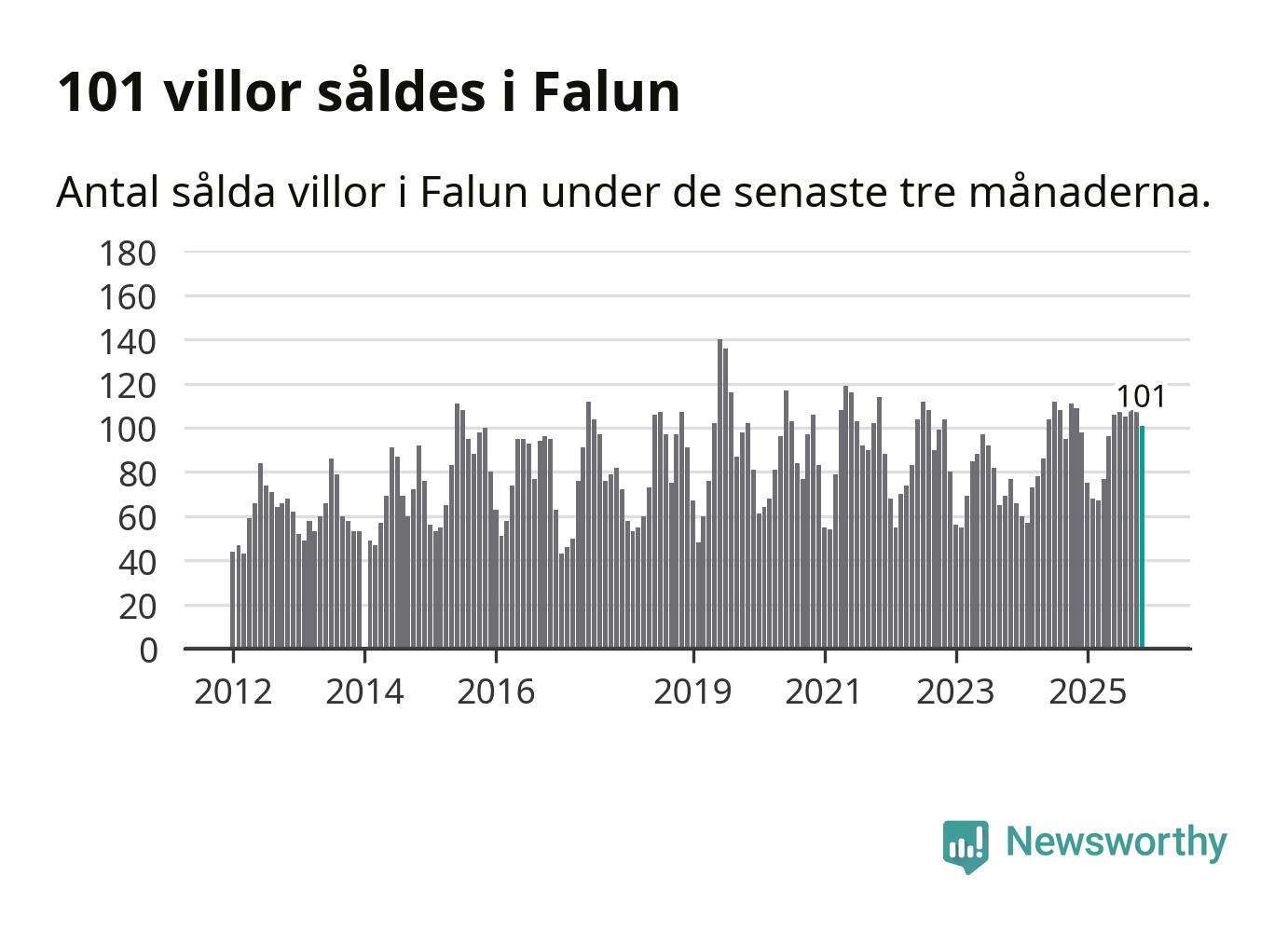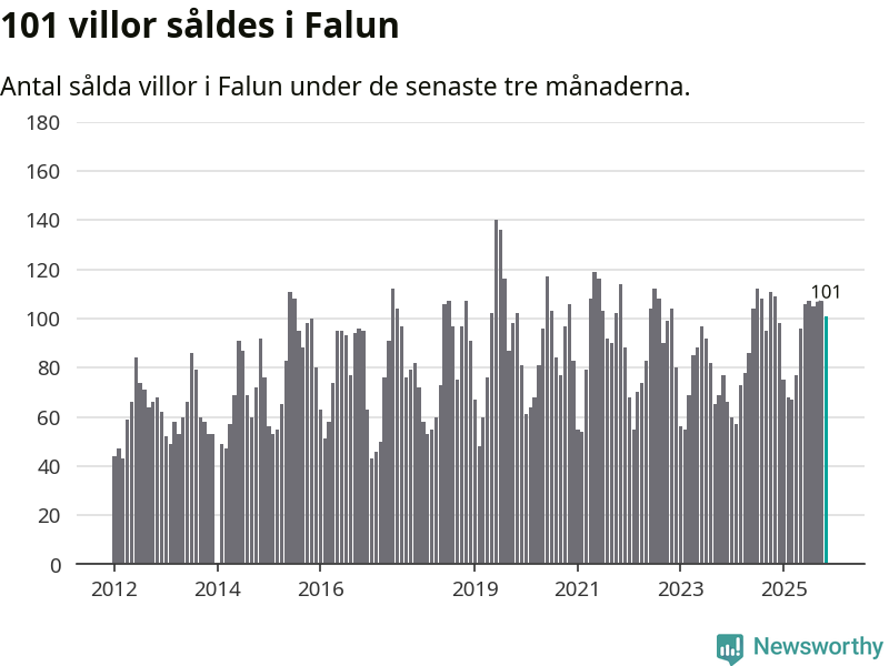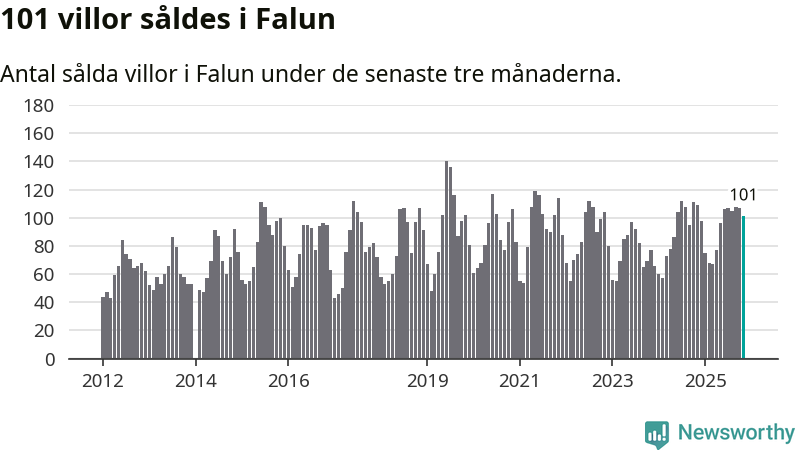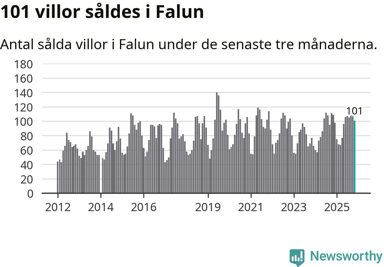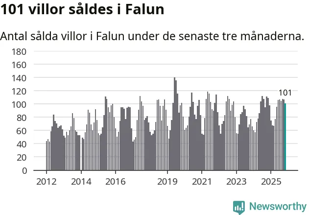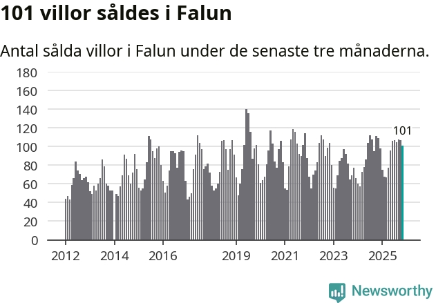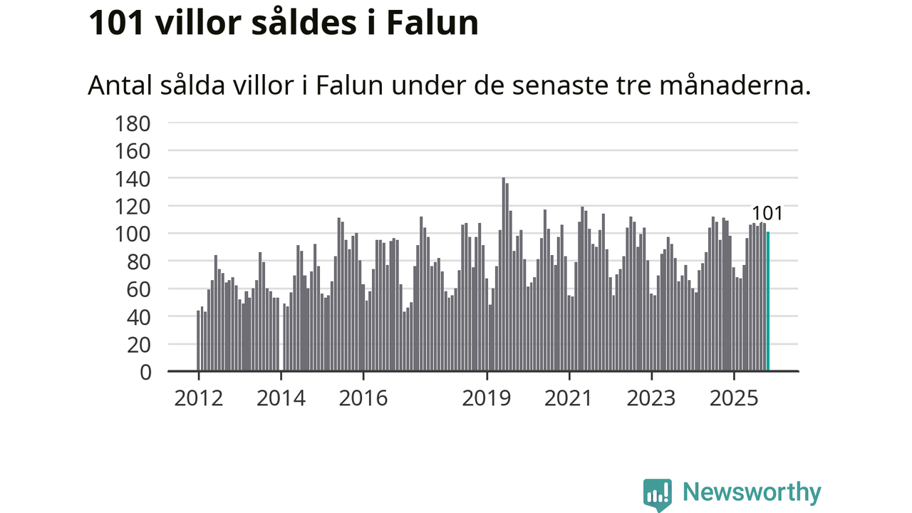 Sammanlagt såldes 101 villor i Falu kommun mellan september och november till ett genomsnittligt pris på 3,4 miljoner kronor. I fjol gjordes 109 affärer vid den här tiden på året.
