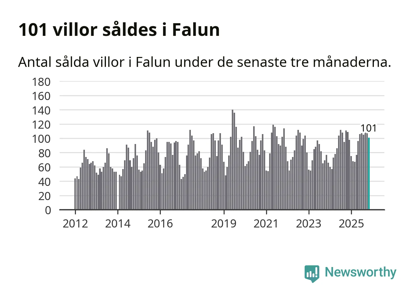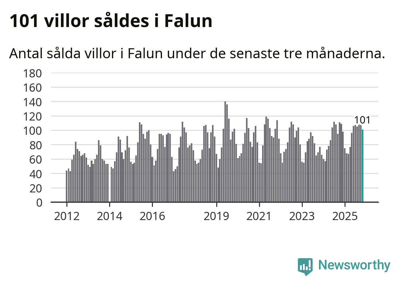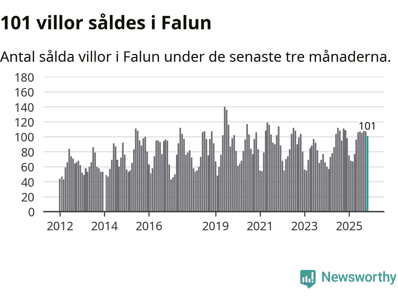 Sammanlagt såldes 101 villor i Falu kommun mellan september och november till ett genomsnittligt pris på 3,4 miljoner kronor. I fjol gjordes 109 affärer vid den här tiden på året.
