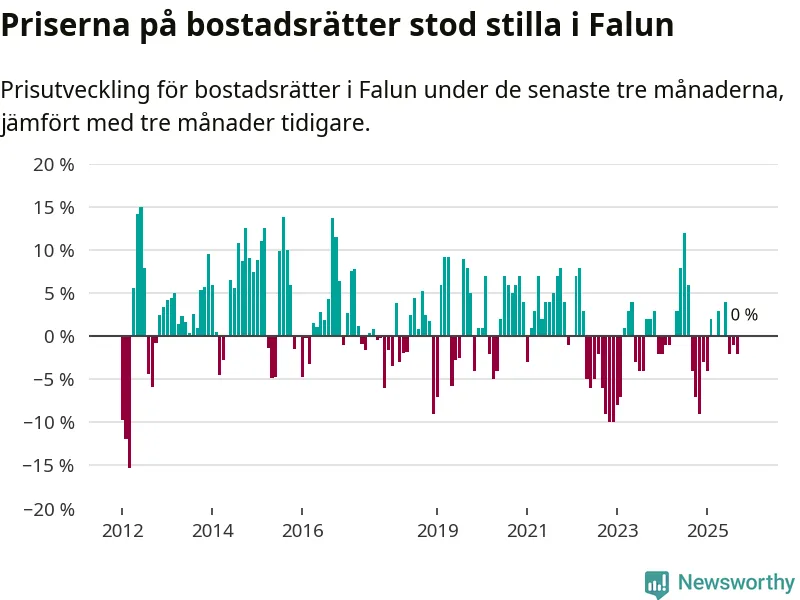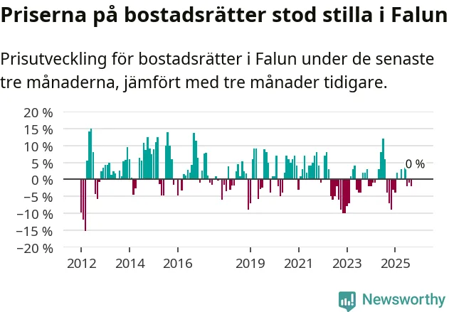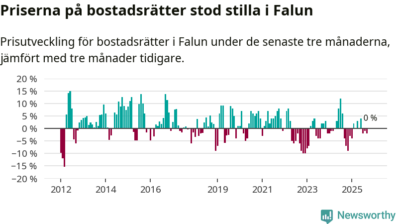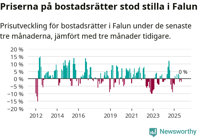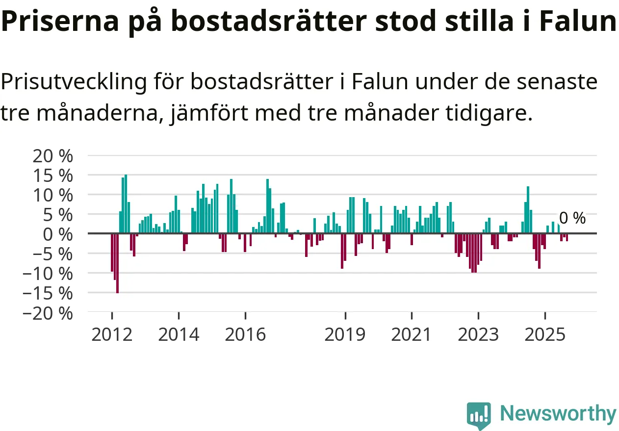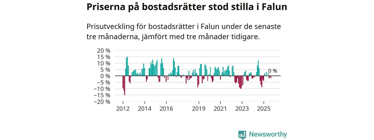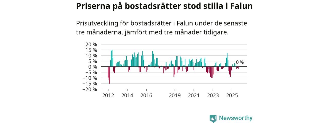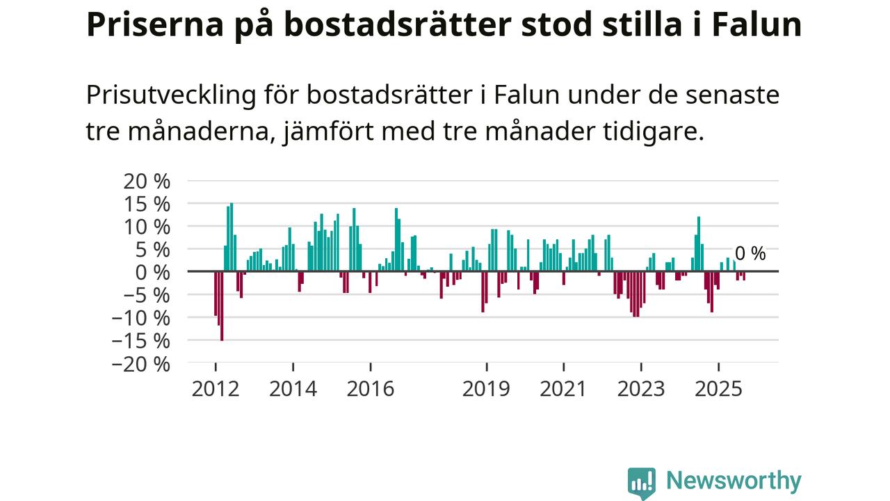 Priserna på bostadsrätter står i stort sett stilla i Falu kommun. Medelpriset på de på försäljningarna under de senaste tre månaderna låg på samma nivå som för tre månader sedan.