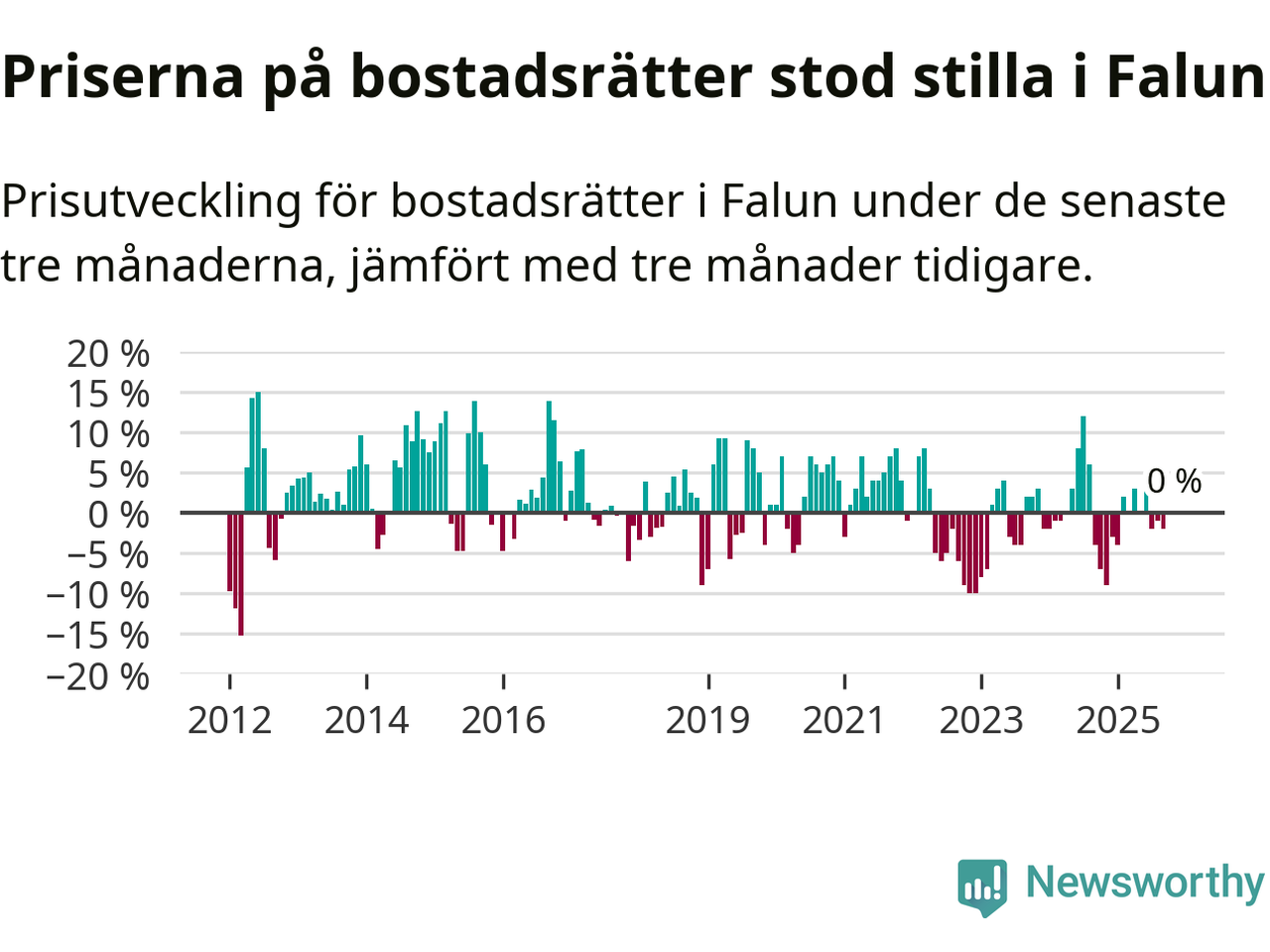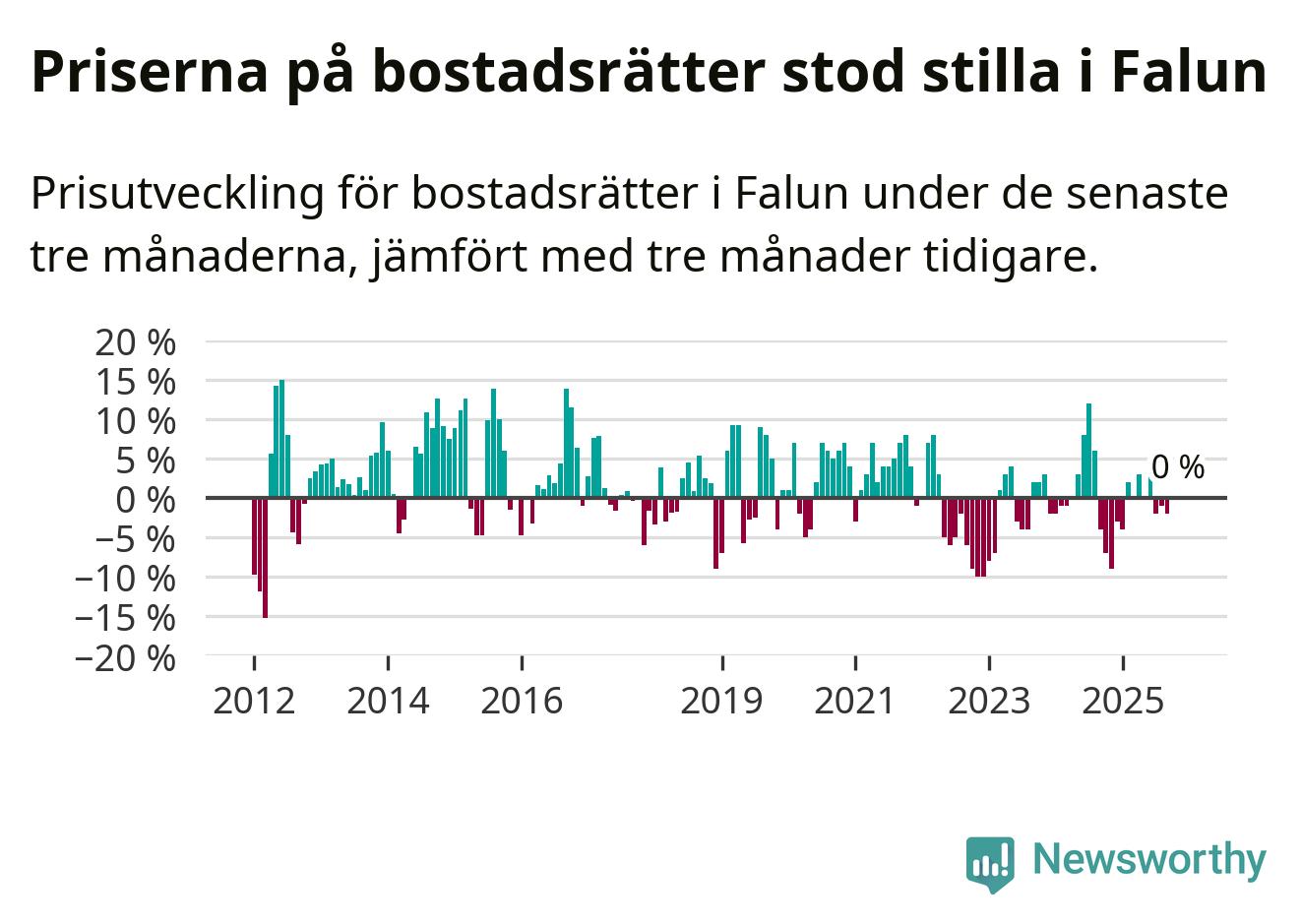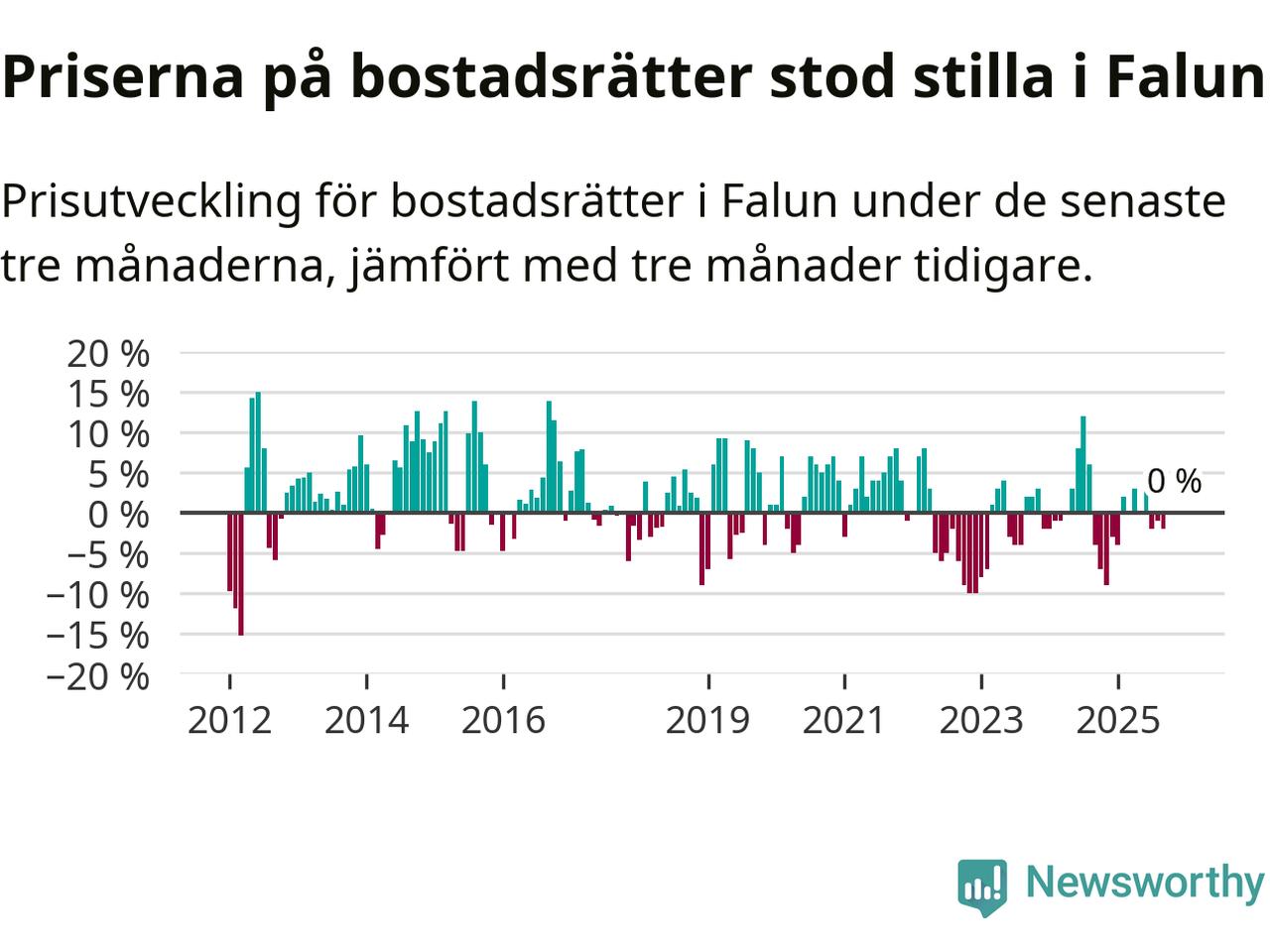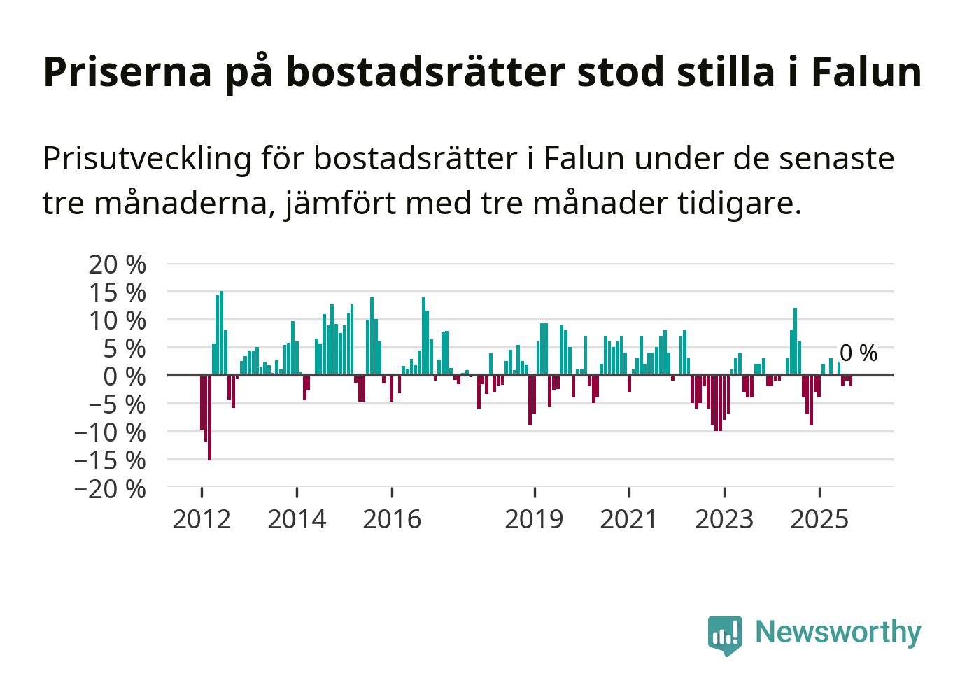 Priserna på bostadsrätter står i stort sett stilla i Falu kommun. Medelpriset på de på försäljningarna under de senaste tre månaderna låg på samma nivå som för tre månader sedan.