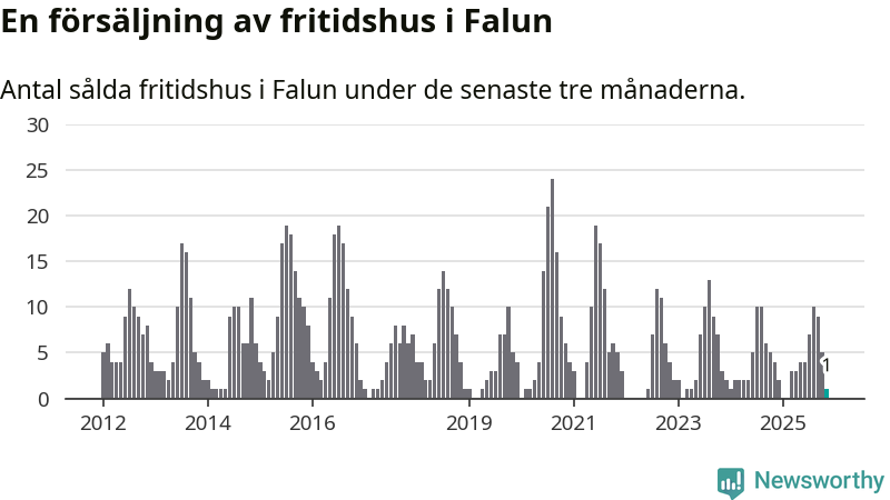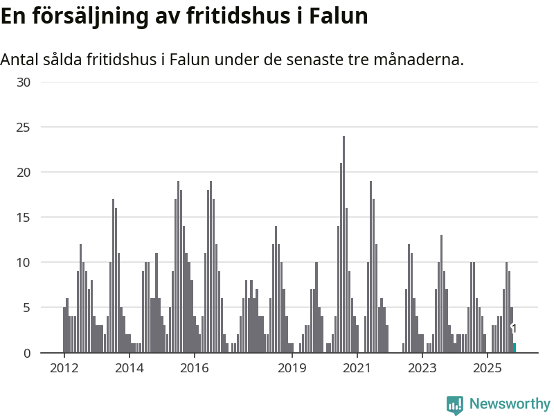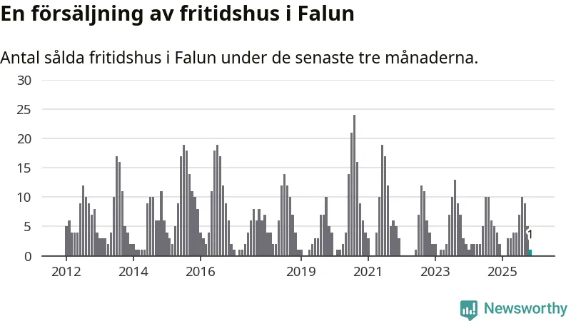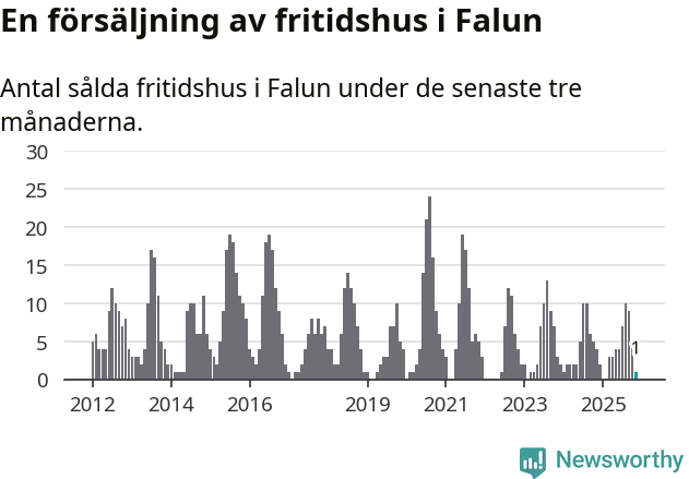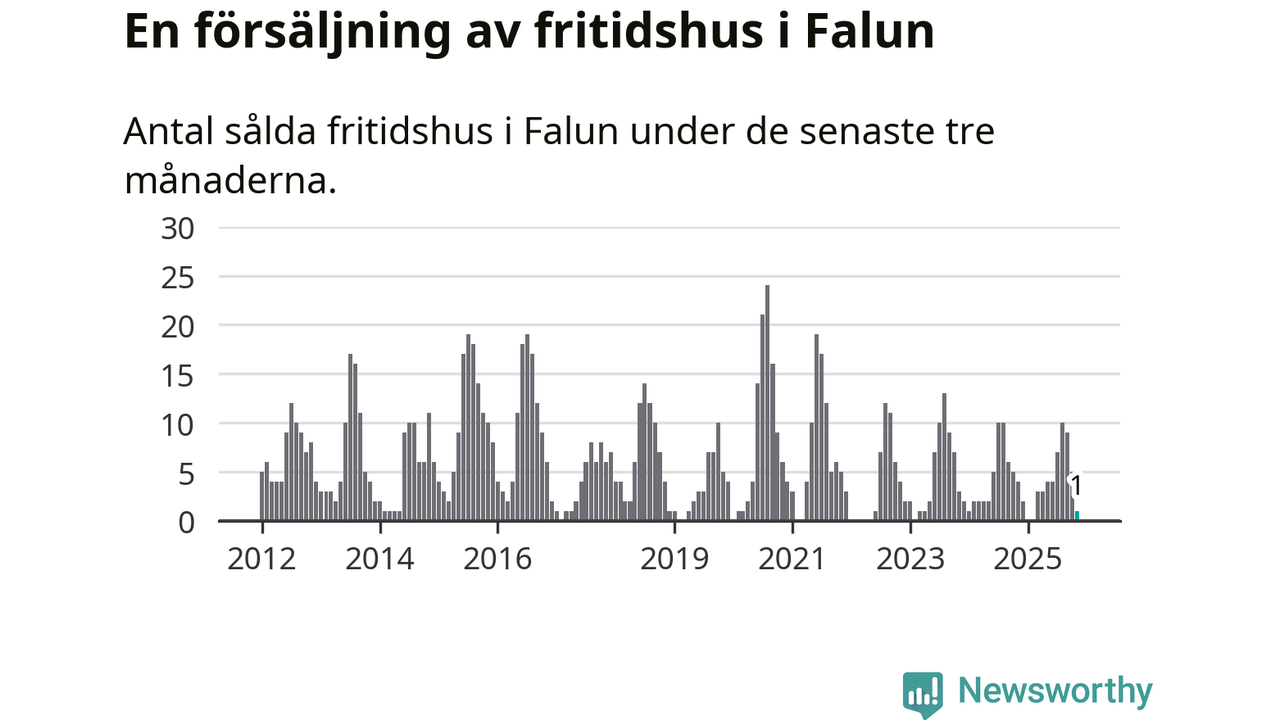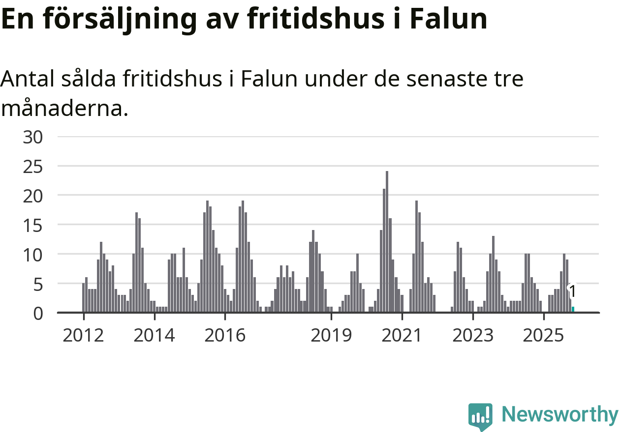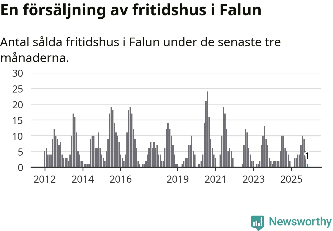 Mellan september och november gjordes sammanlagt en affär med fritidshus i Falu kommun. Det kan jämföras med fyra vid motsvarande tid i fjol.